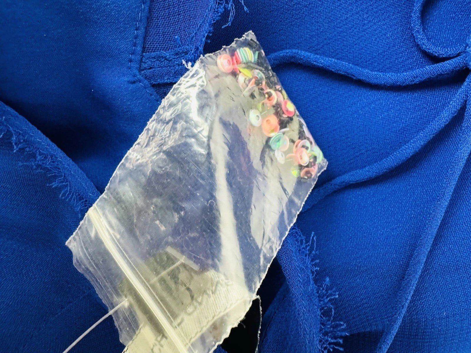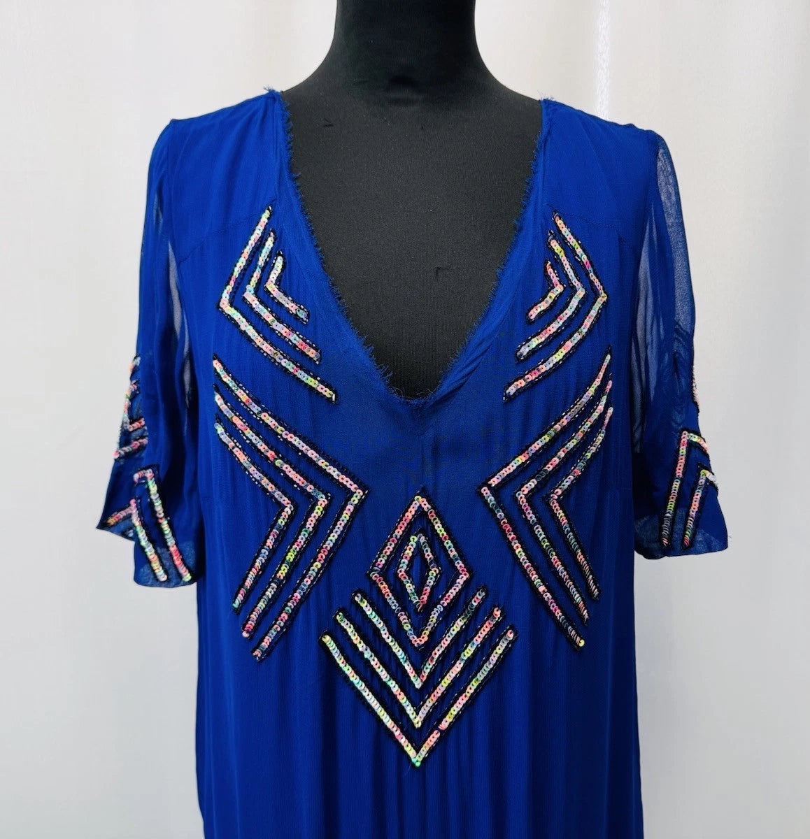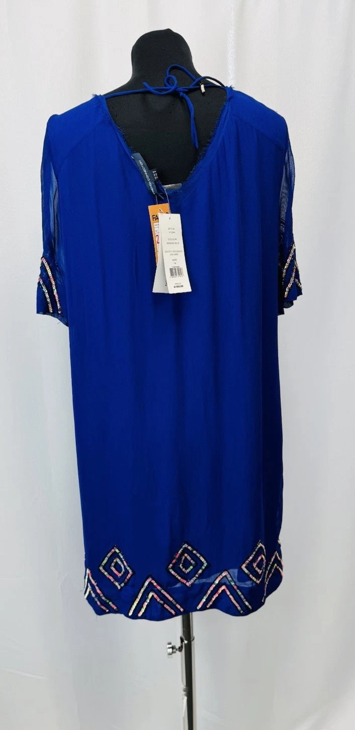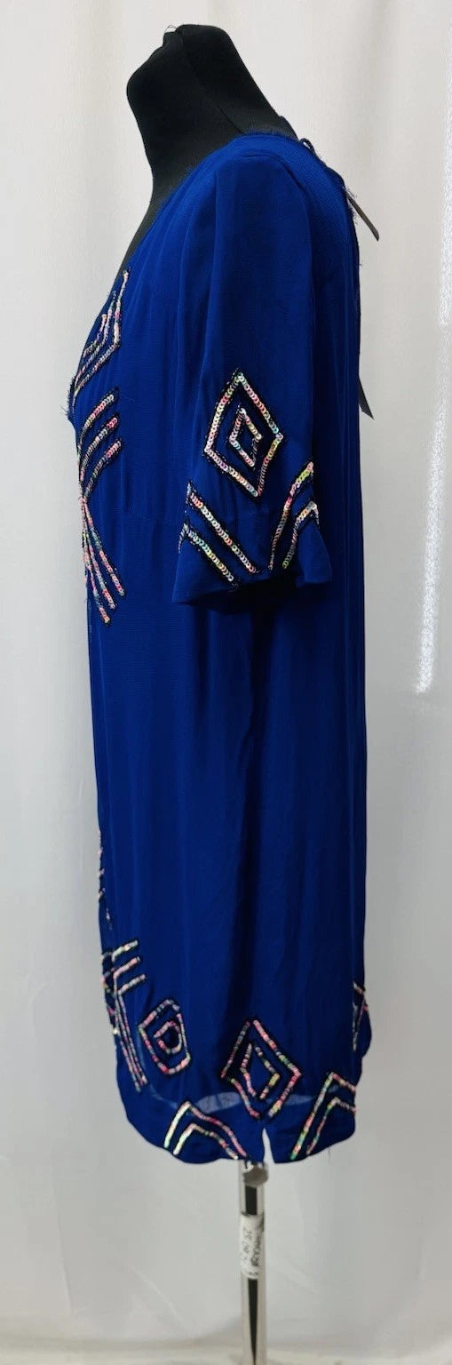 French Connection Royal Blue Confetti Grid Sequin V Neck Dress Size UK 12, NEW