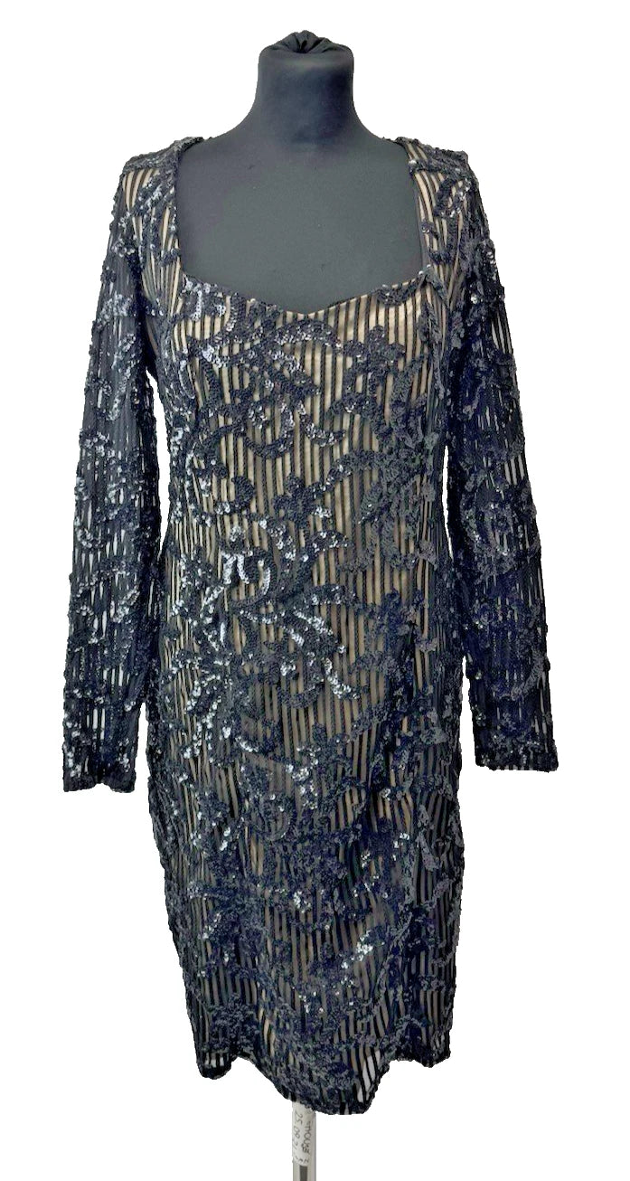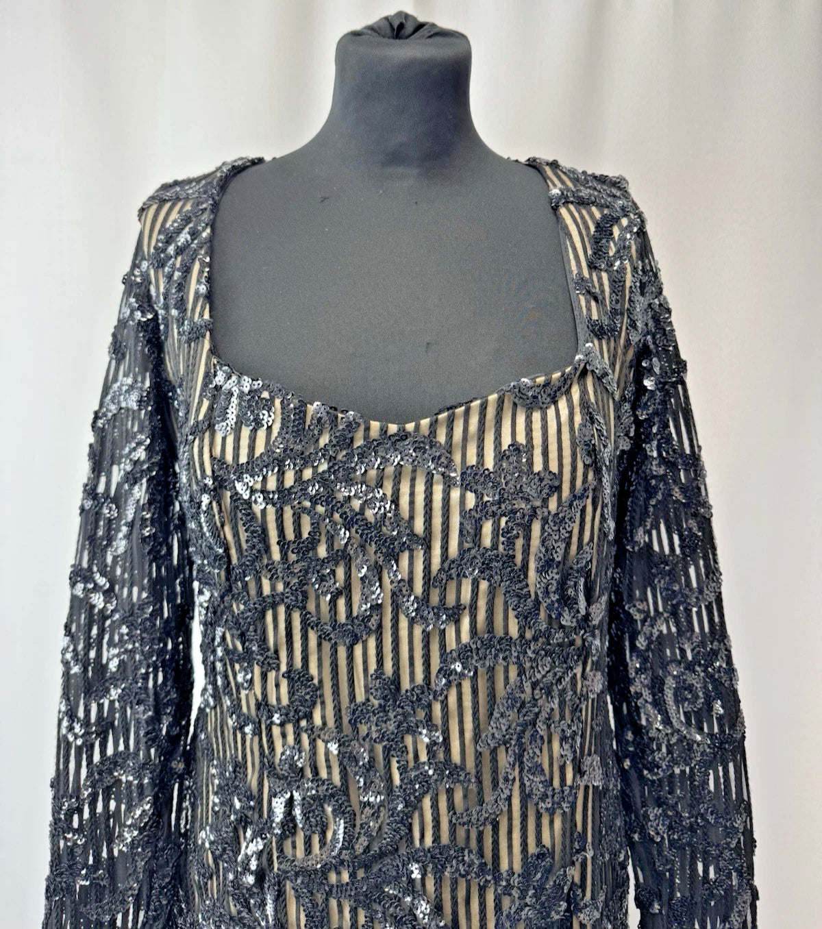 Galisa Grace Women’s Long Sleeve Sequin Square Neck Dress Black Size 16 - NEW