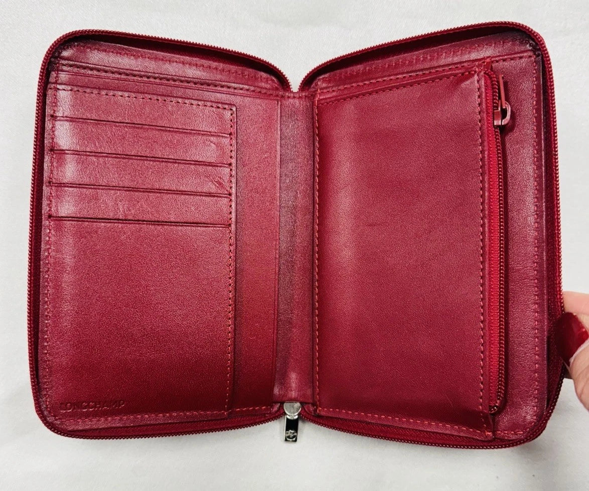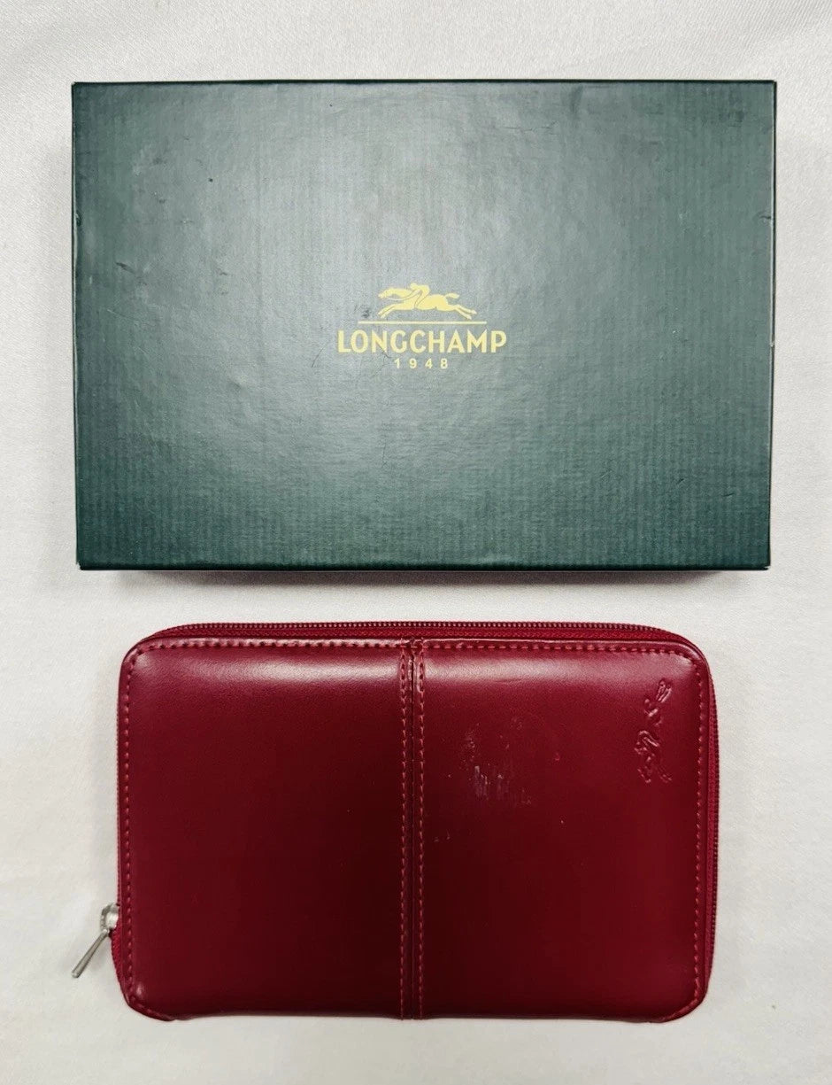 Longchamp Red Leather Women’s Zip Around Wallet, Boxed