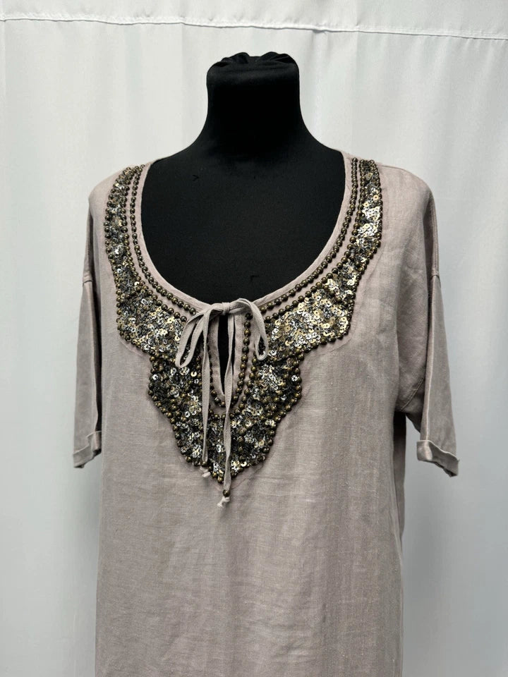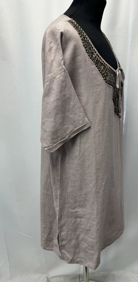 Poetry 100% Linen Beaded Light Mauve Women’s Dress Size UK 14