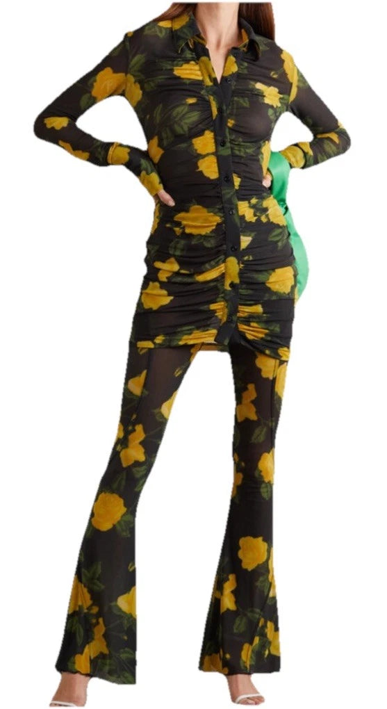 Richard Quinn Brown & Yellow Floral Mesh Women’s Set Size UK 8-10