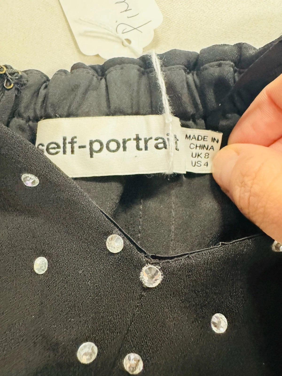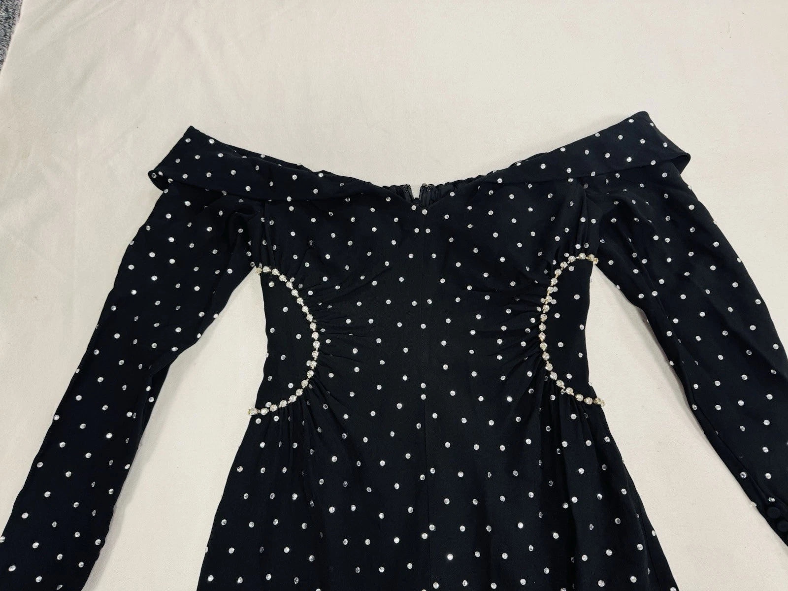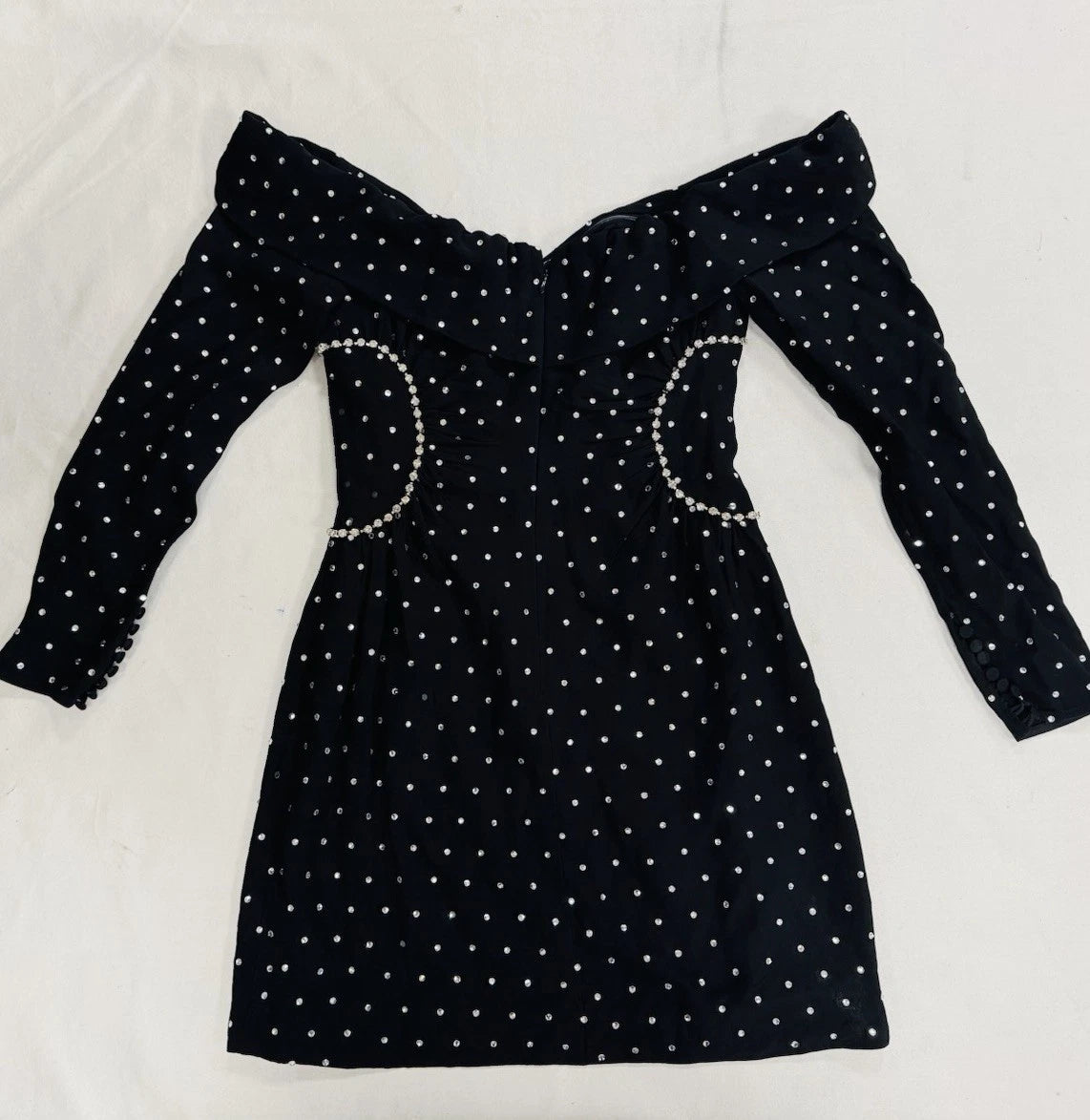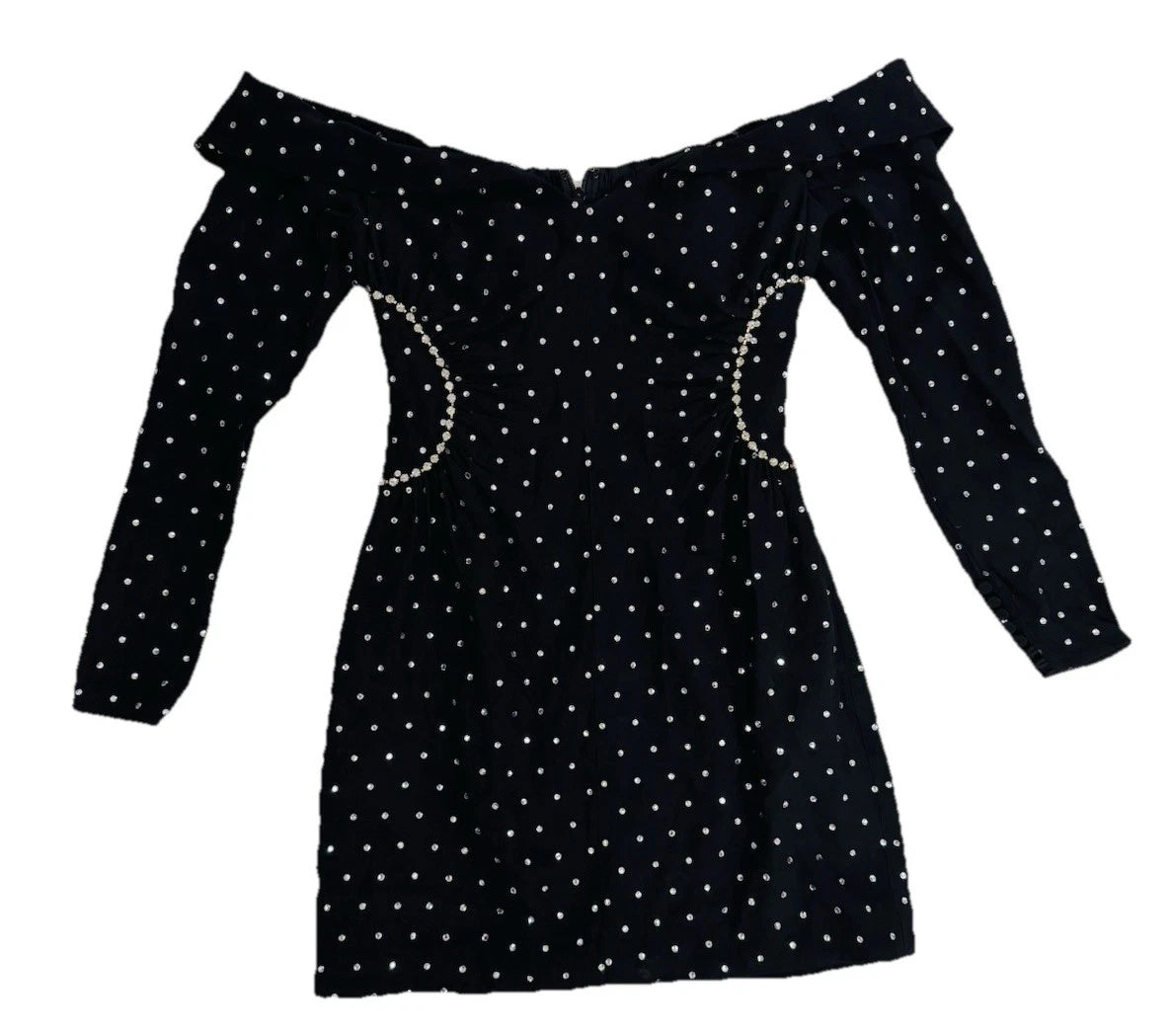 Self Portrait Black Beads Embellished Off Shoulder Mini Dress Size UK 8