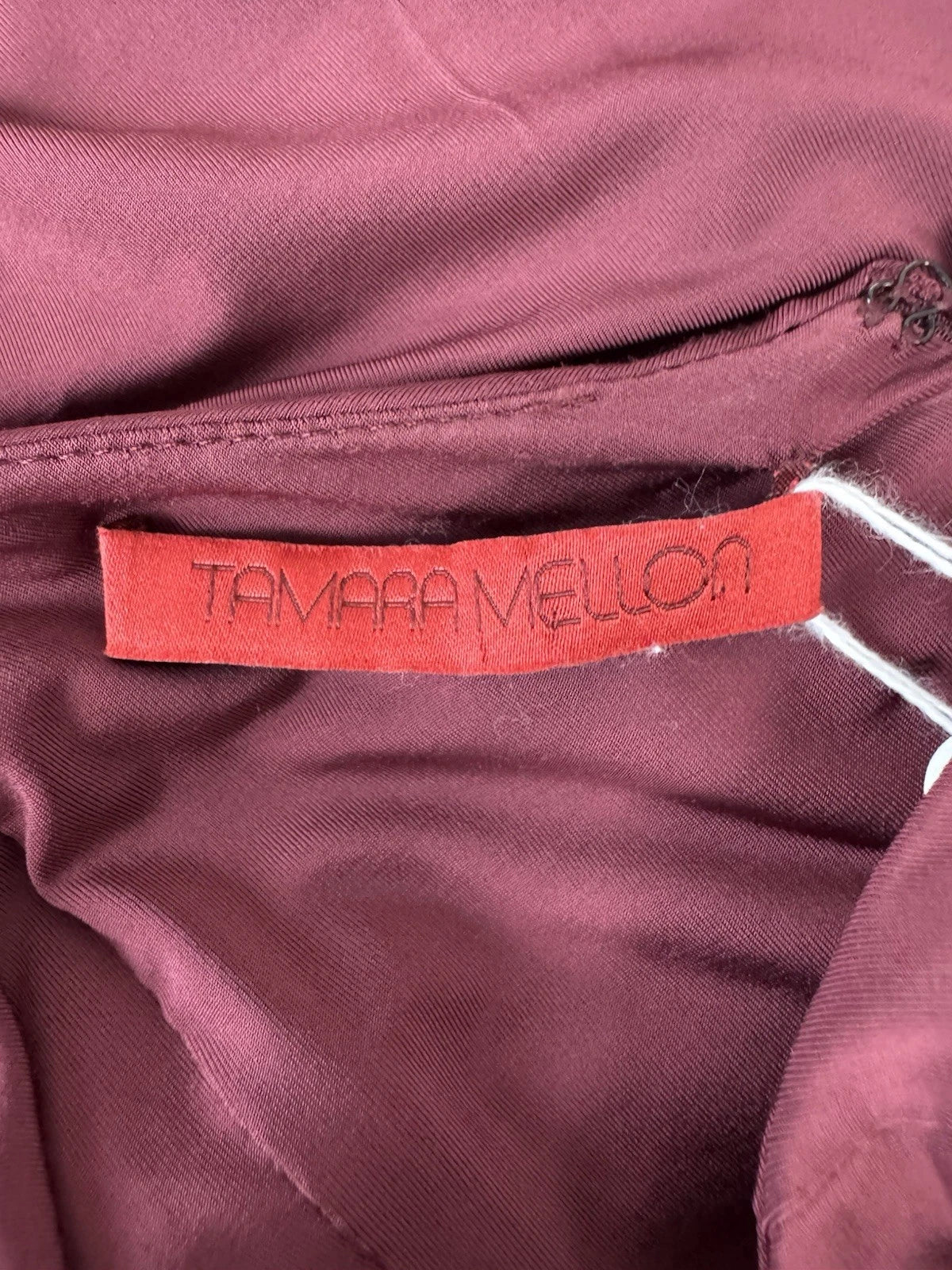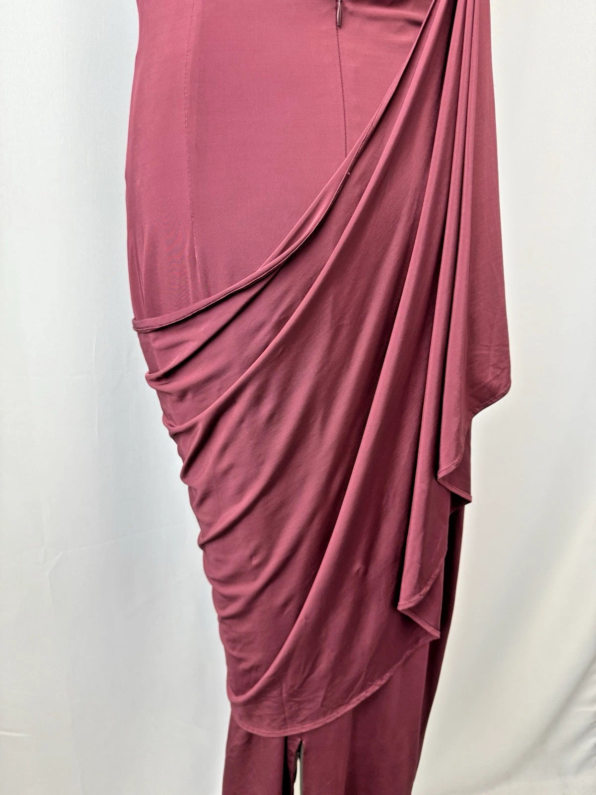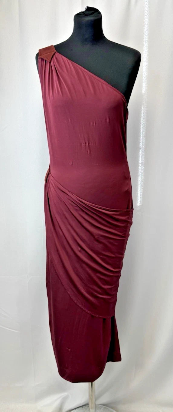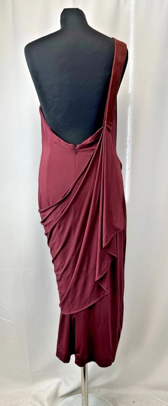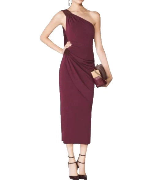 Tamara Mellon Women's One-Shoulder Asymmetrical Draped Midi Dress Burgundy Sz 12