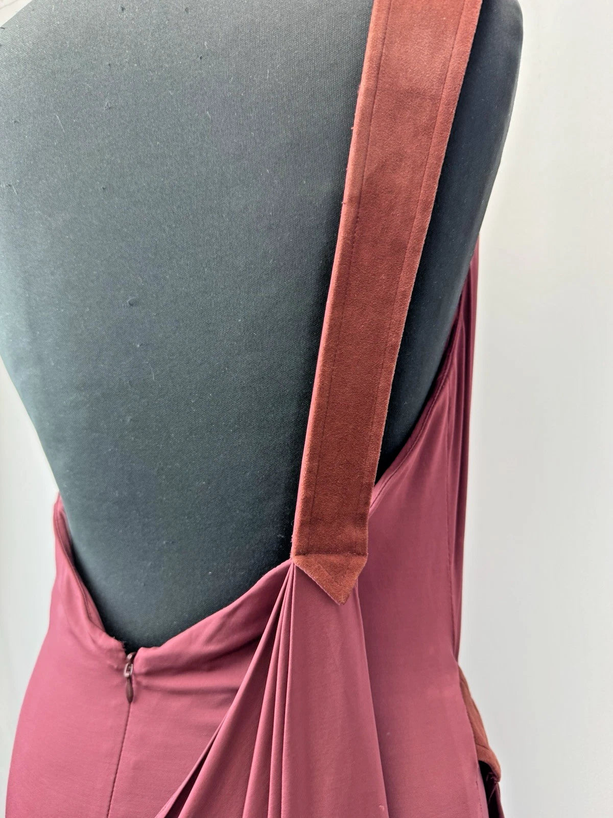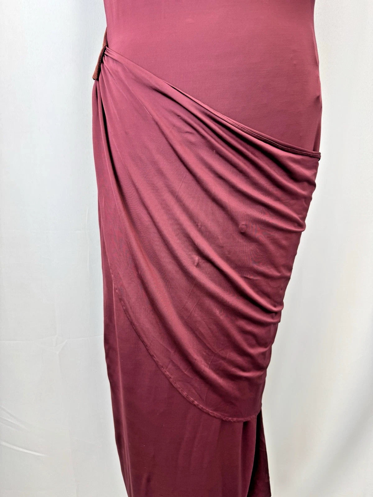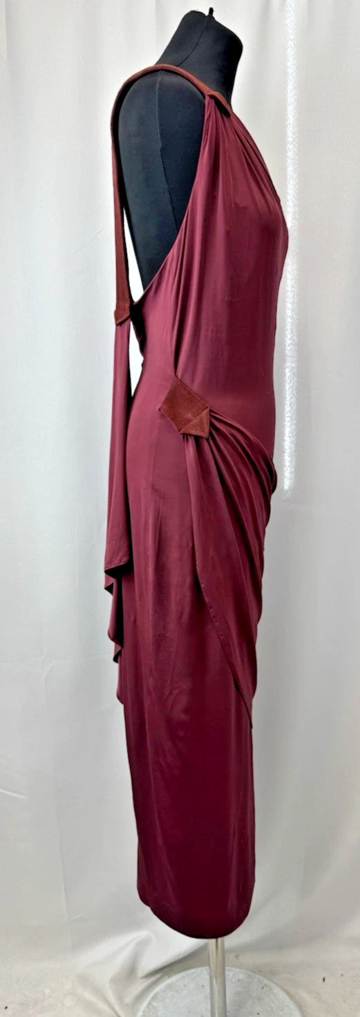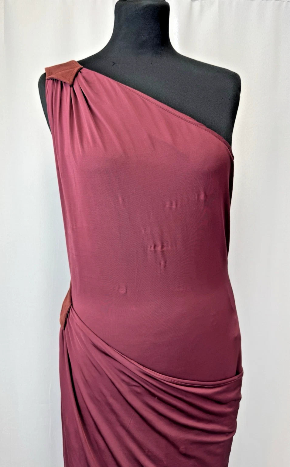 Tamara Mellon Women's One-Shoulder Asymmetrical Draped Midi Dress Burgundy Sz 12