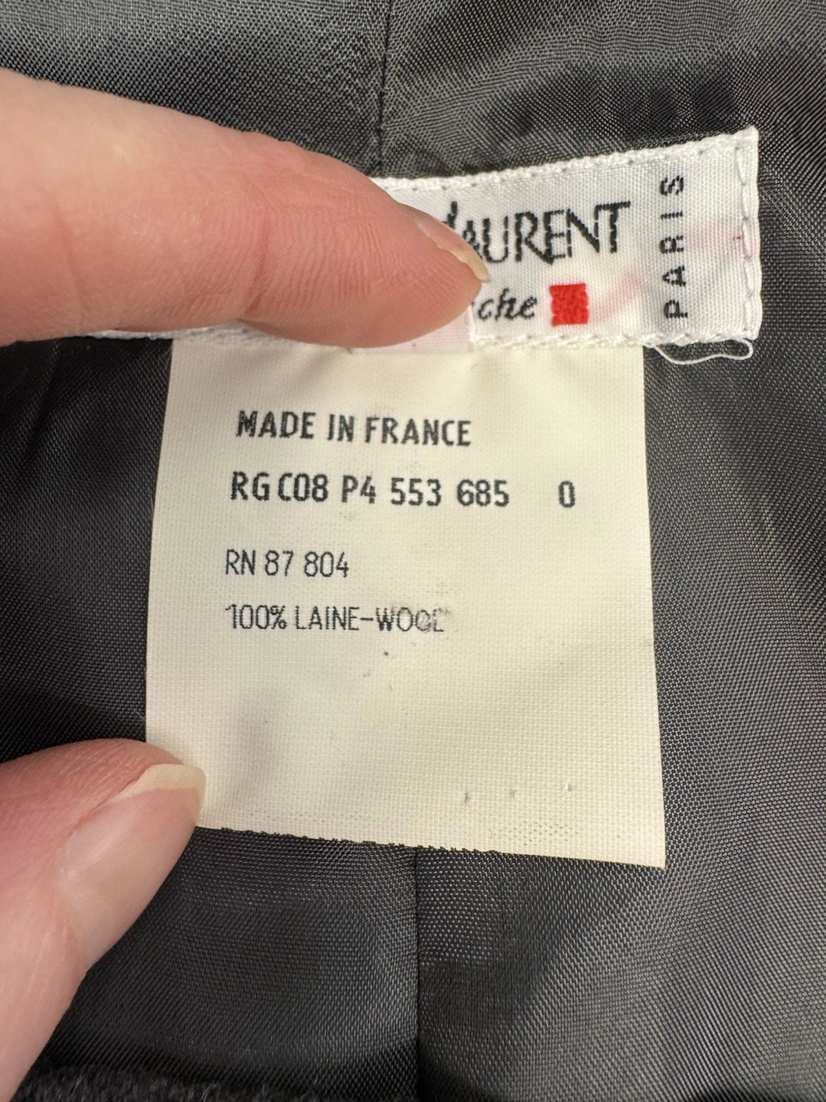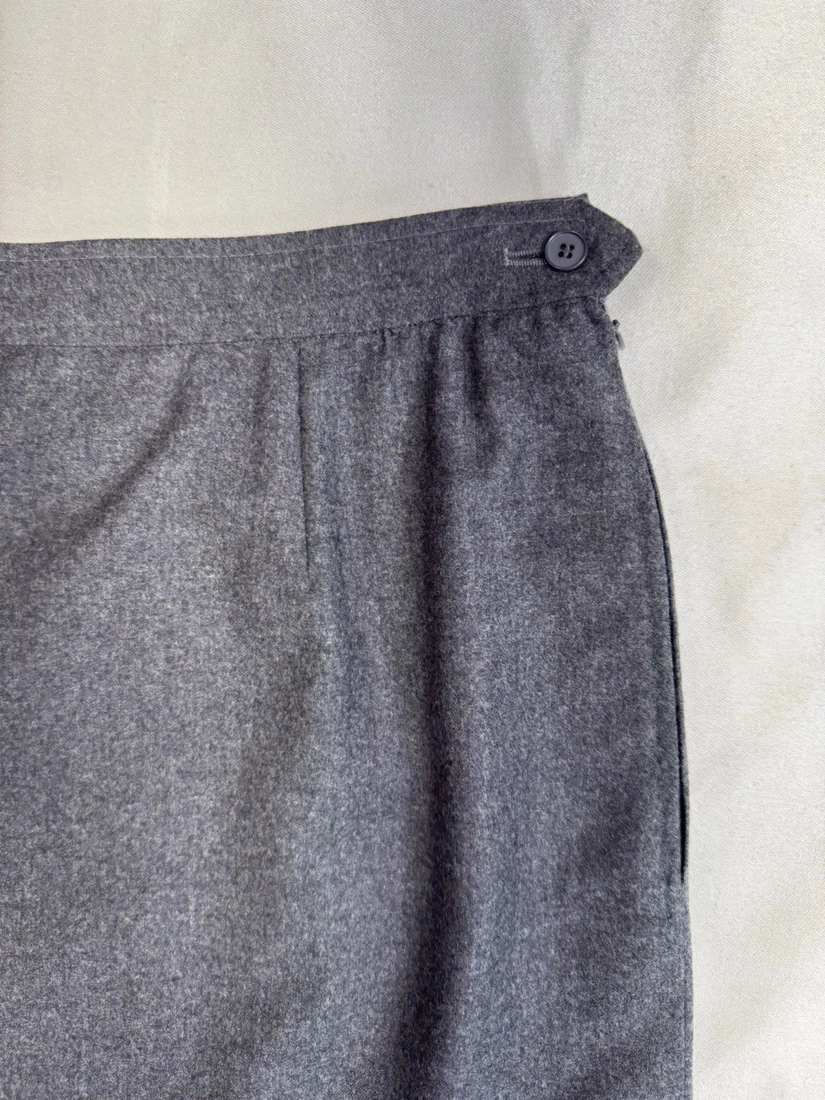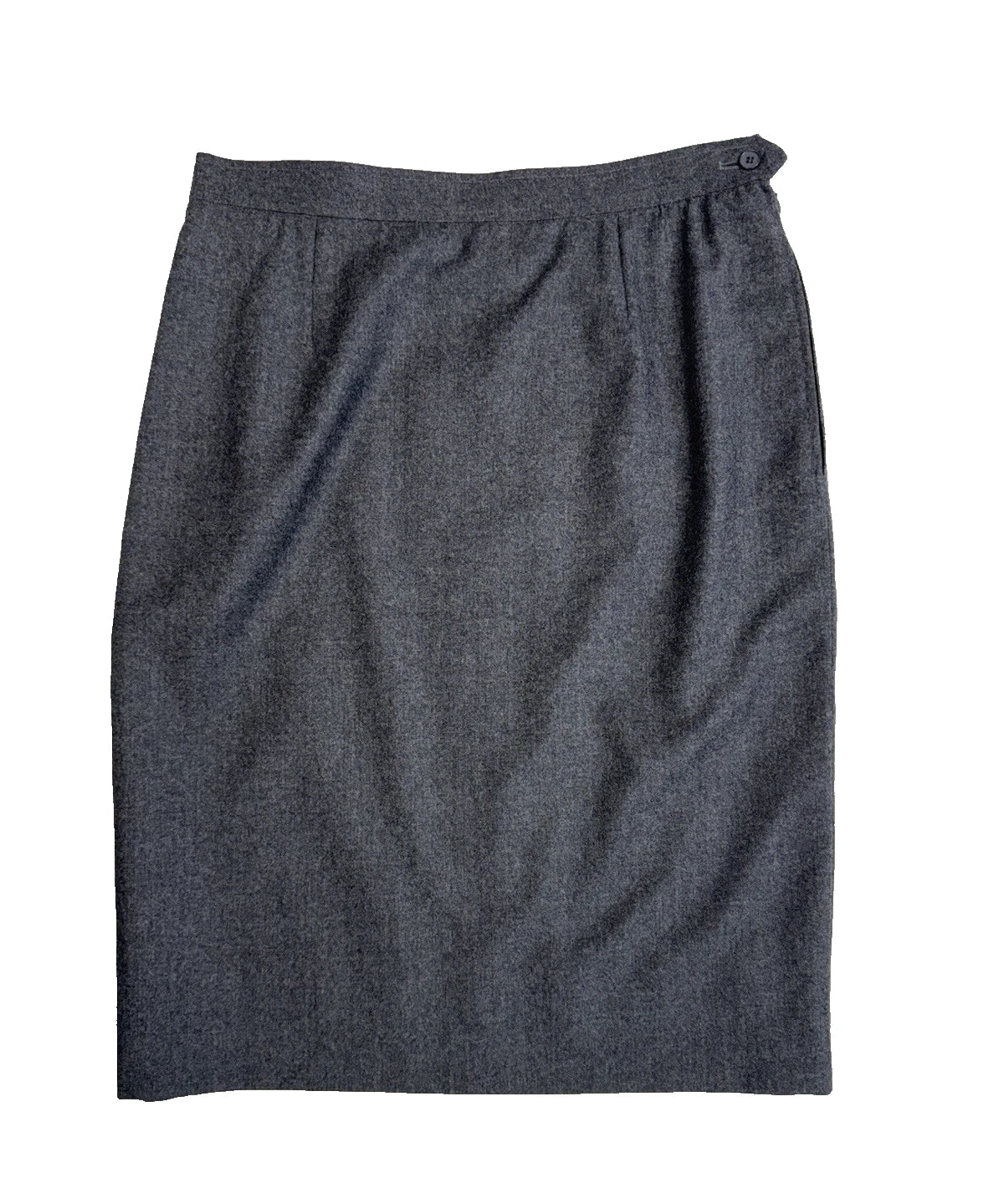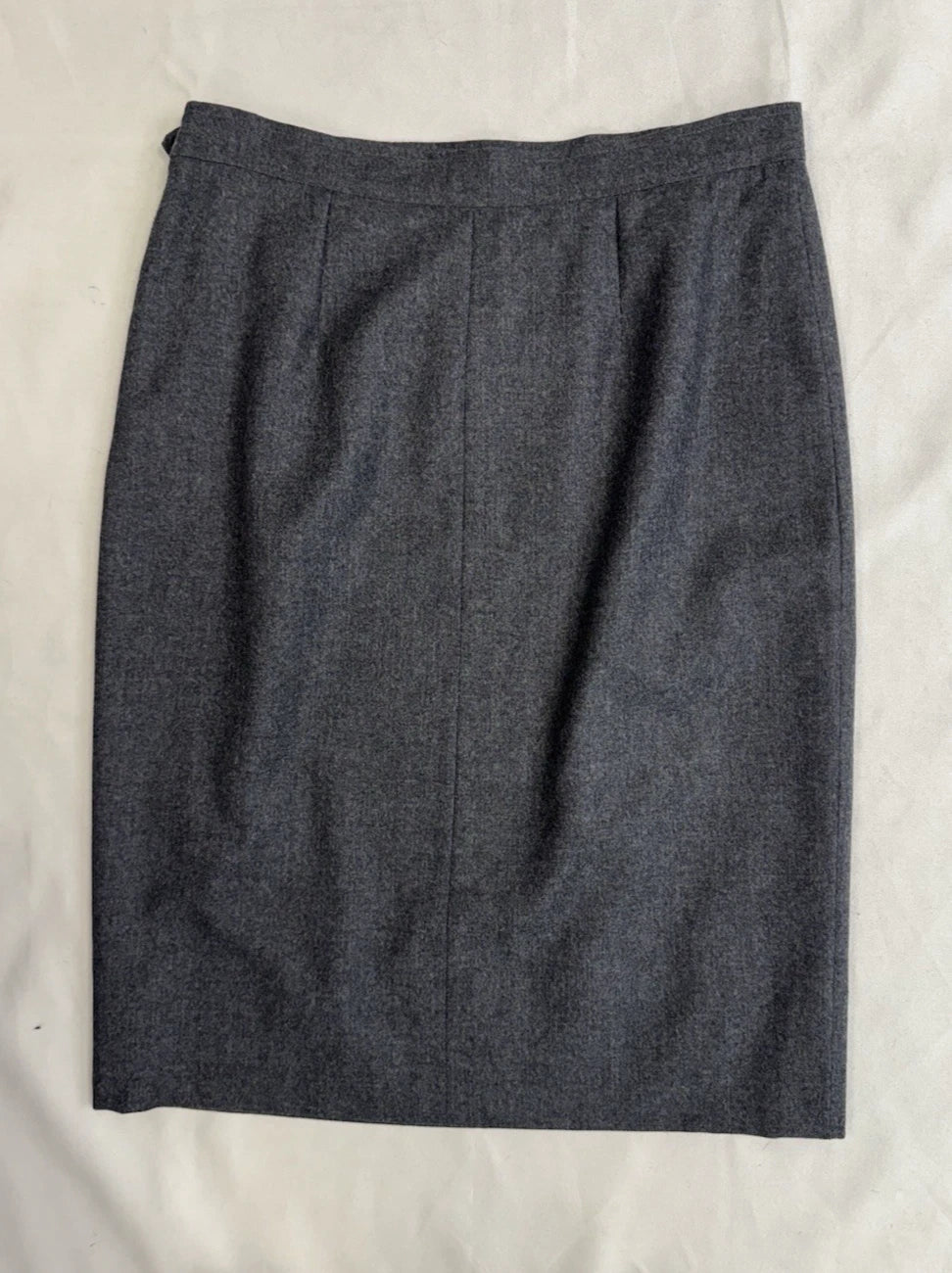 Vintage Yves Saint Laurent Grey 100% Wool Pencil Skirt Knee Length Side Zip Size 14