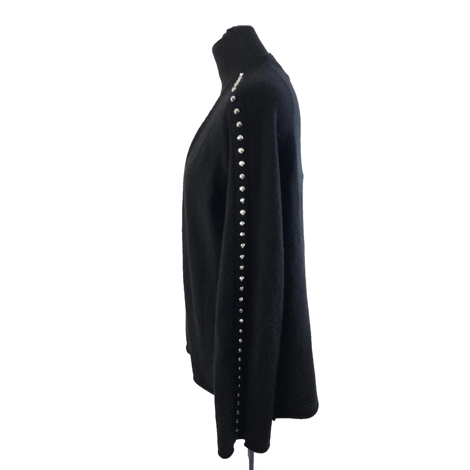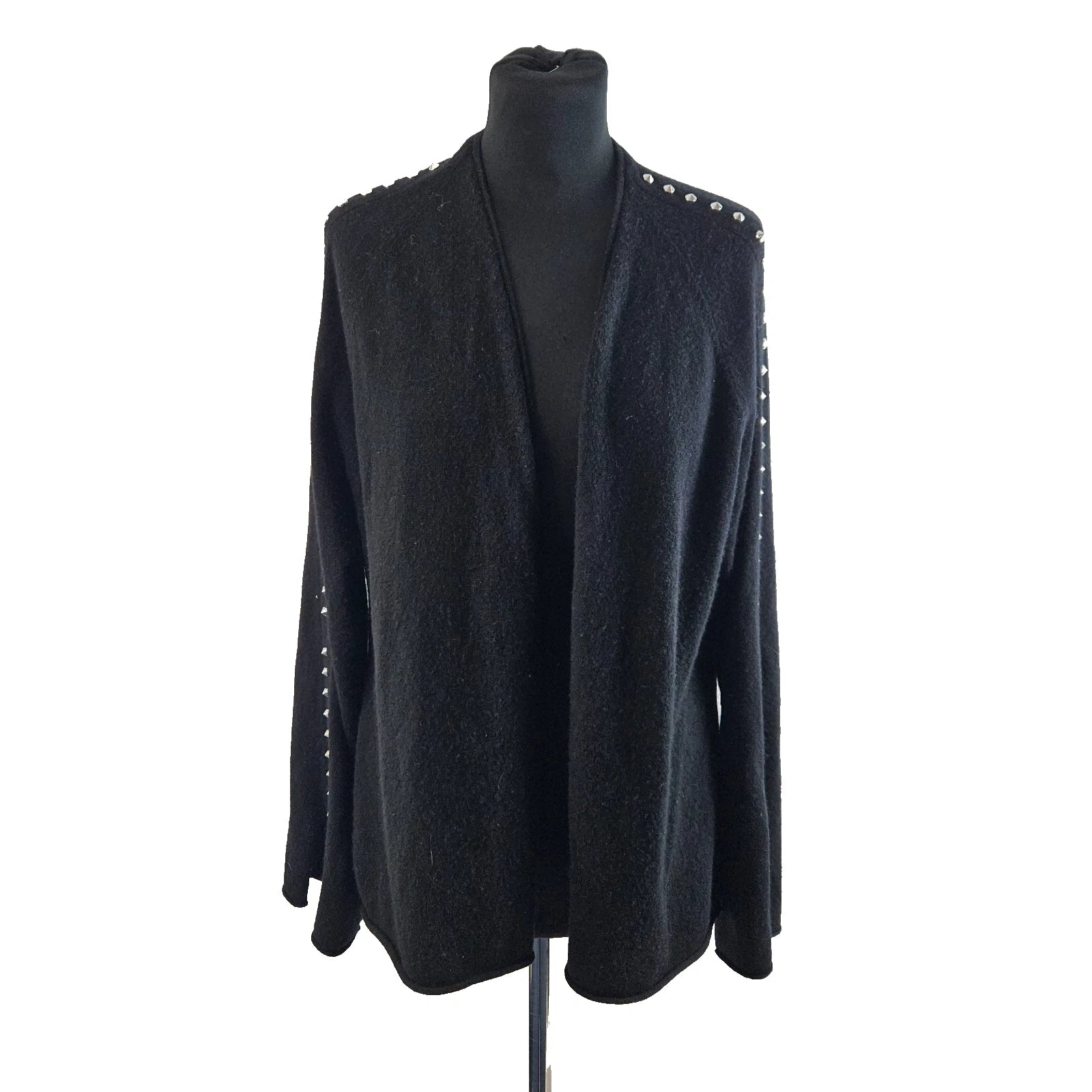 Zadig and Voltaire Women's Black Knit Open Cardigan Studded Sleeves Size M/L