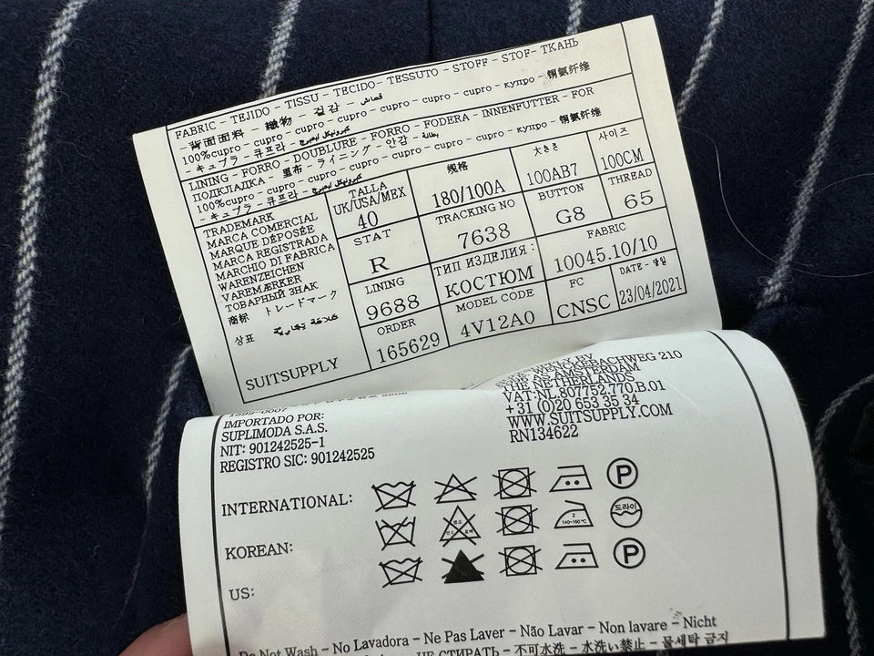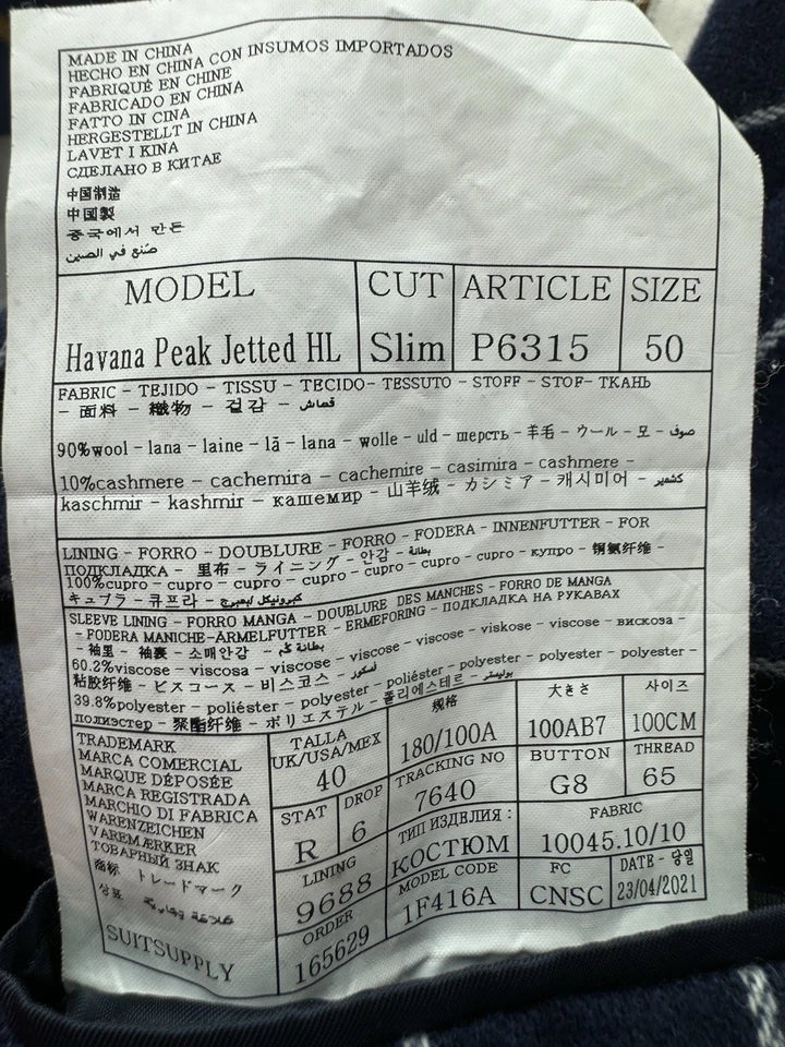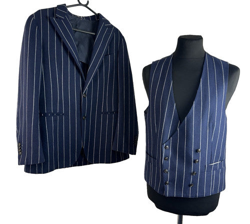 Suitsupply Wool Cashmere Blue Pinstriped Men’s 2pc Jacket Waistcoat Set Size 50