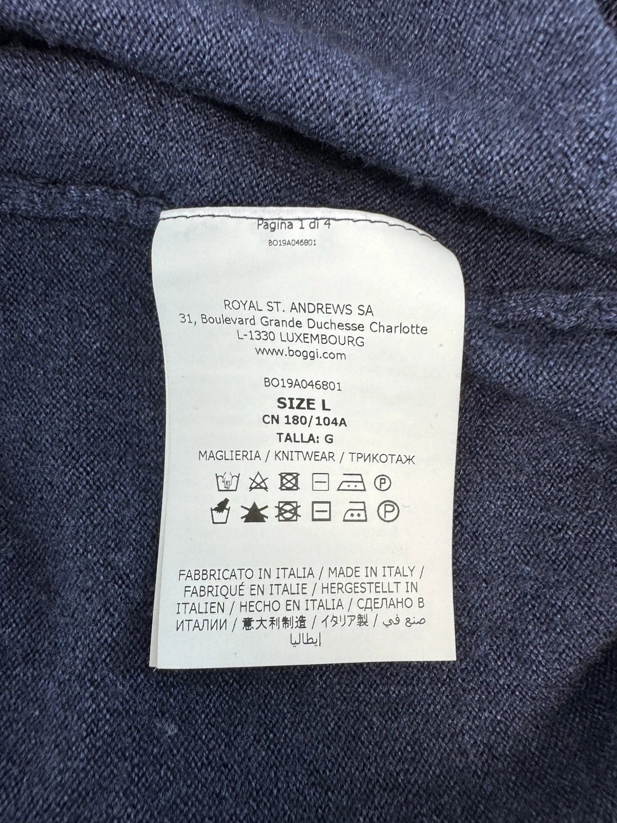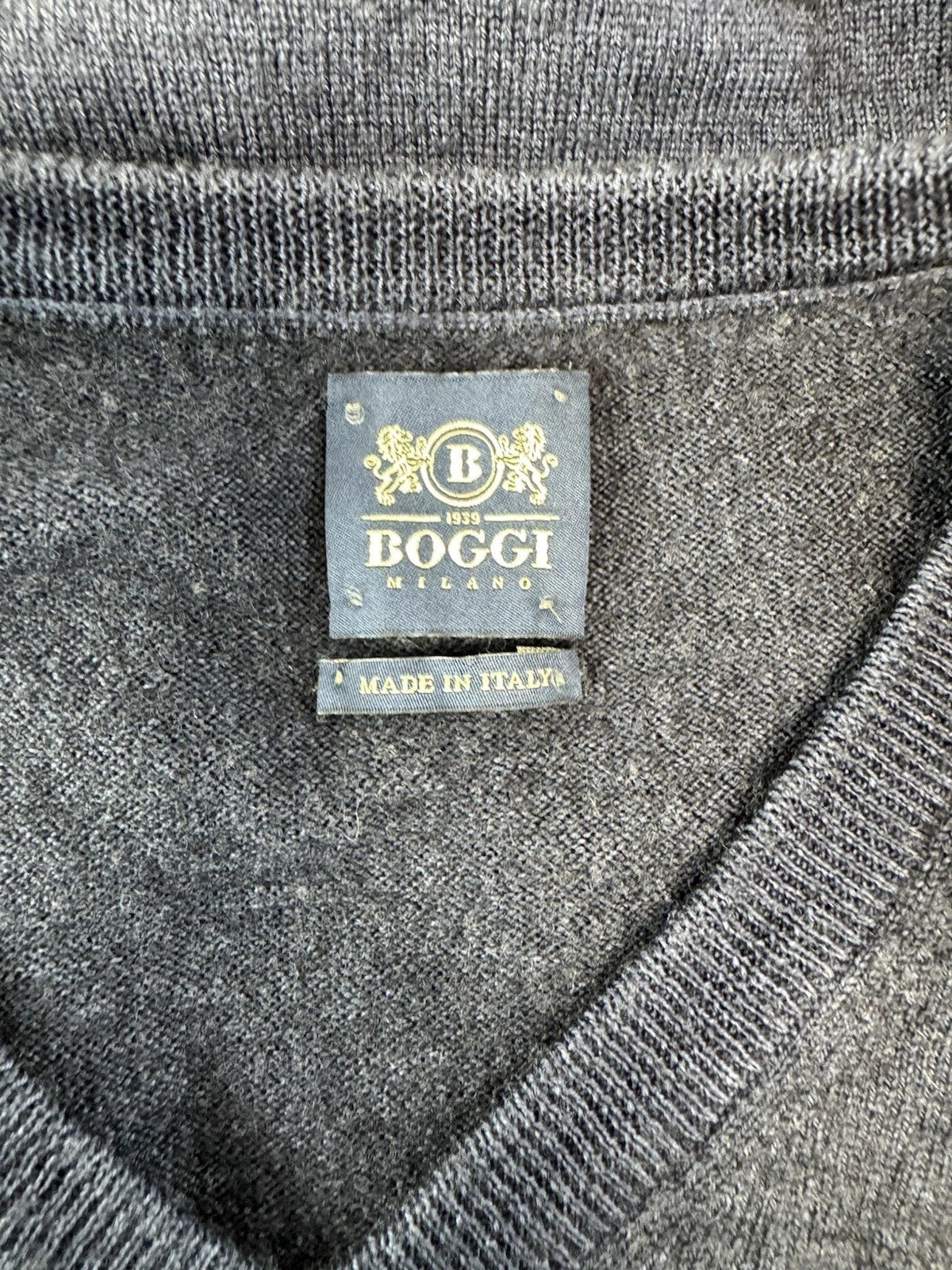 Boggi Milano Men’s 100% Wool Sweater Long Sleeve V-Neck Navy Size L