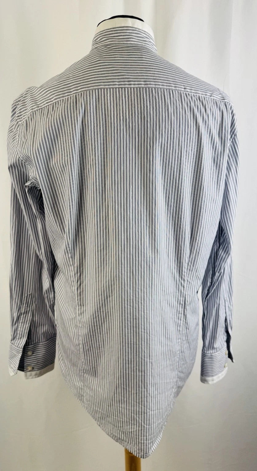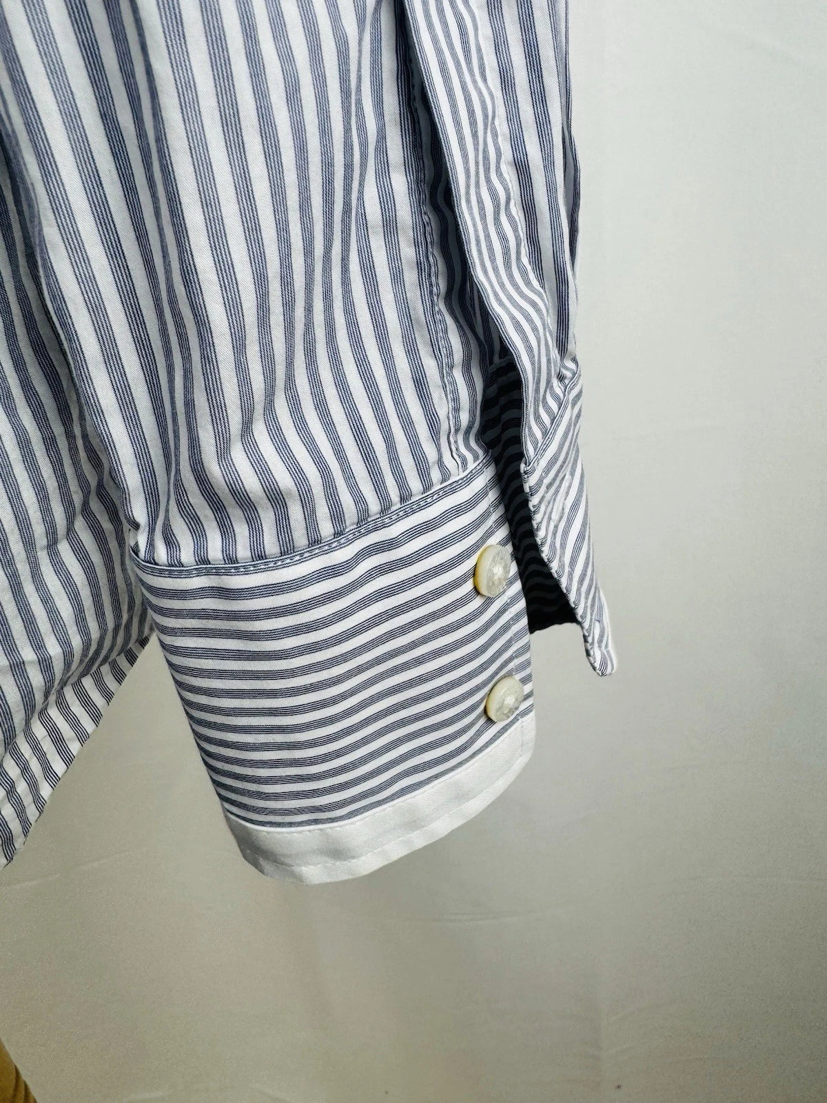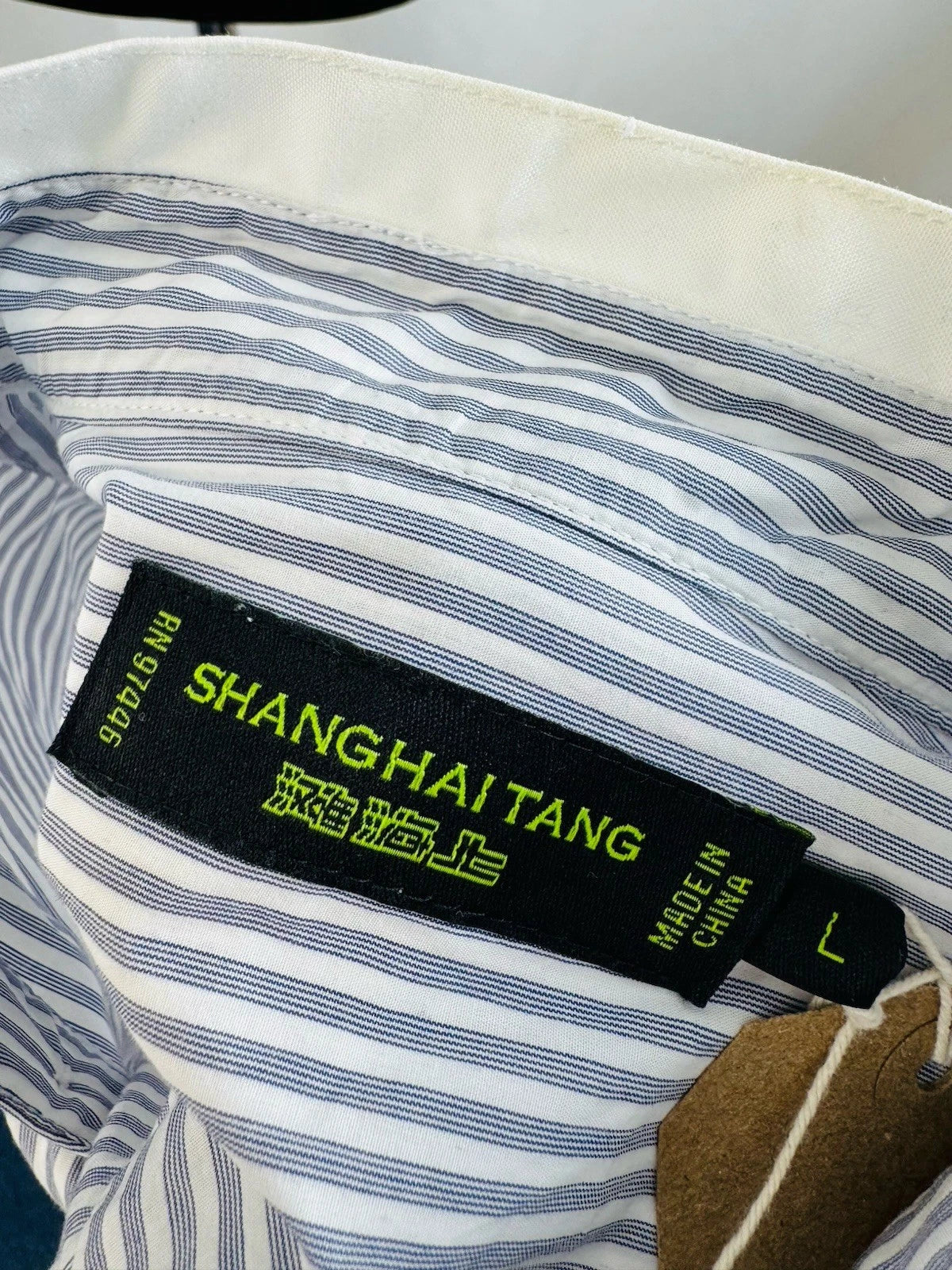 Shanghai Tang Blue White Striped 100% Cotton Men’ Shirt Size L