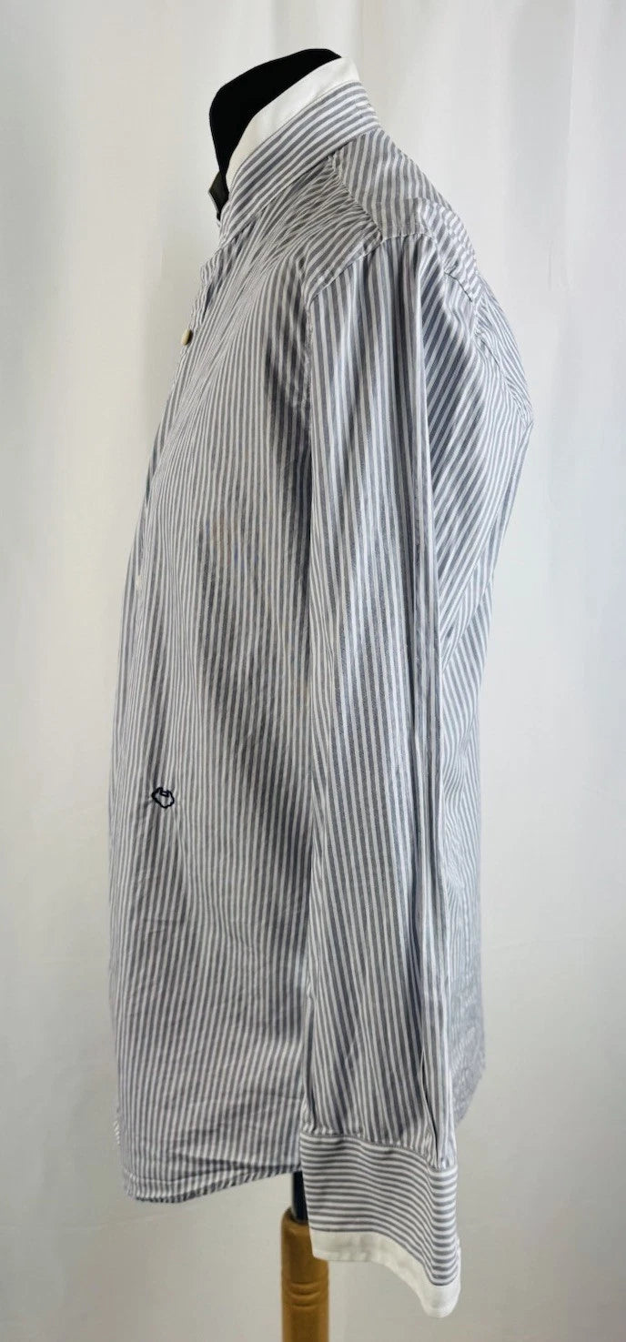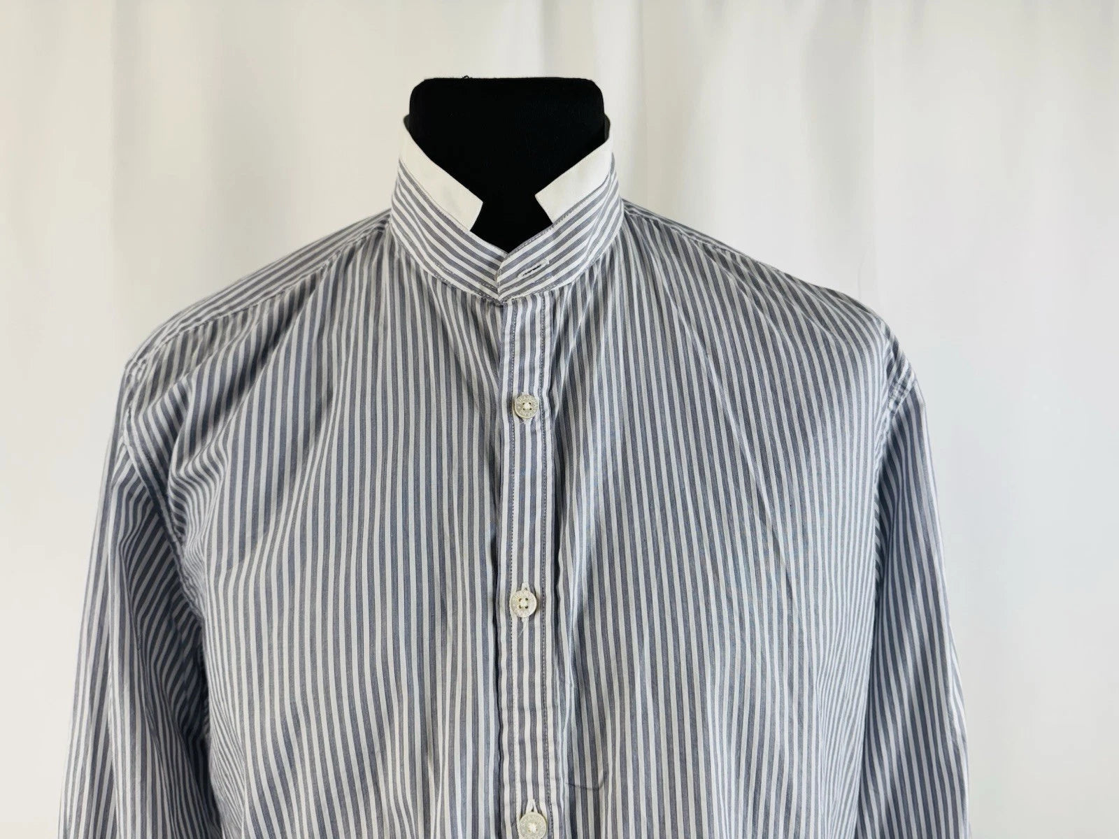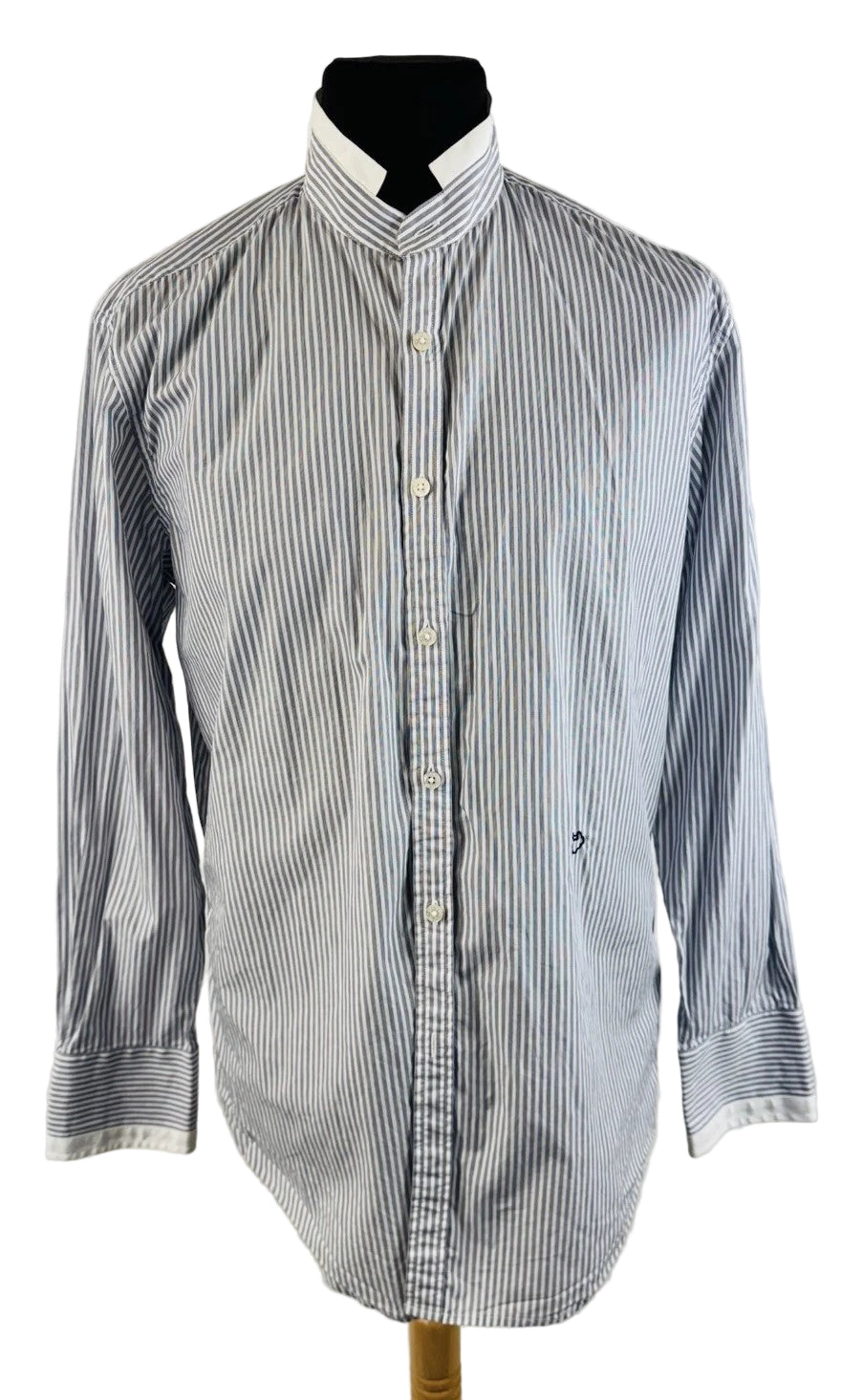 Shanghai Tang Blue White Striped 100% Cotton Men’ Shirt Size L