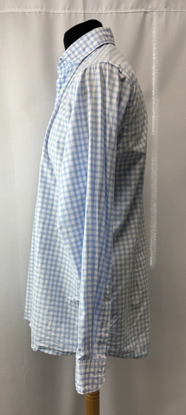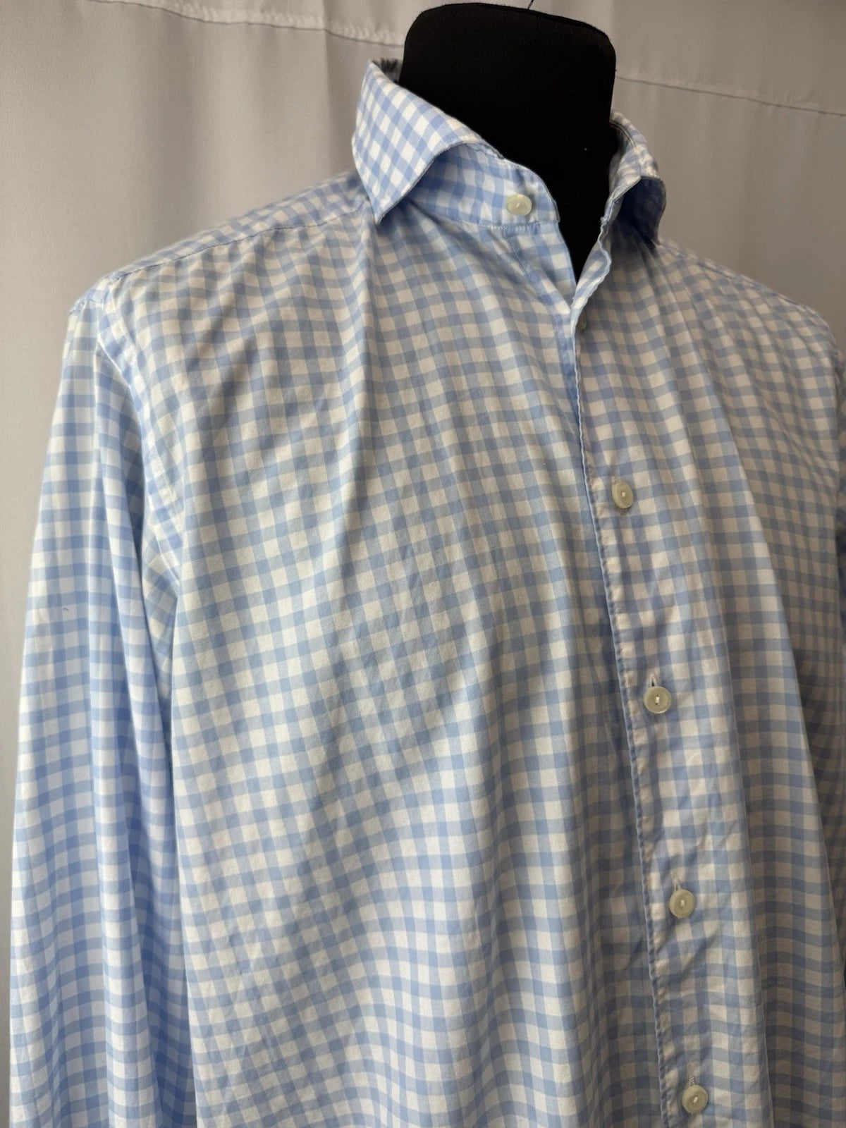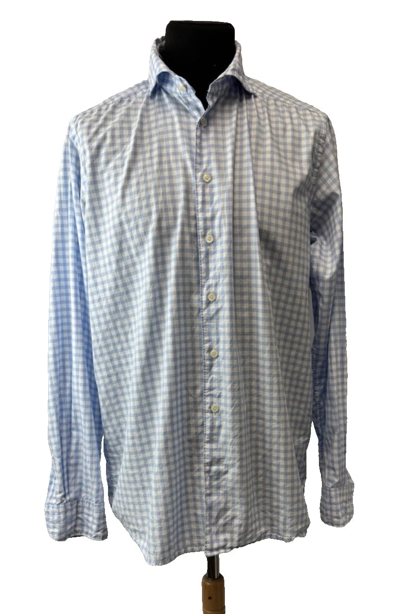 Etro Men’s Checked Long Sleeve Collared Shirt White & Blue Size L
