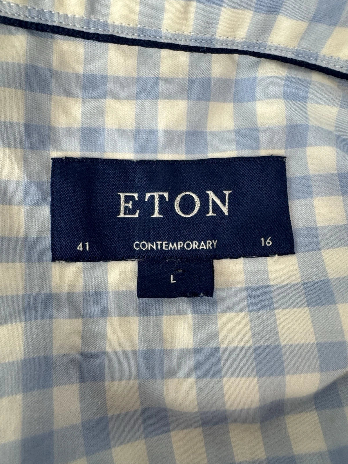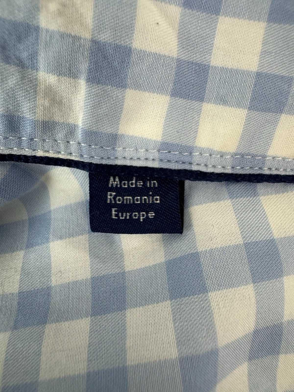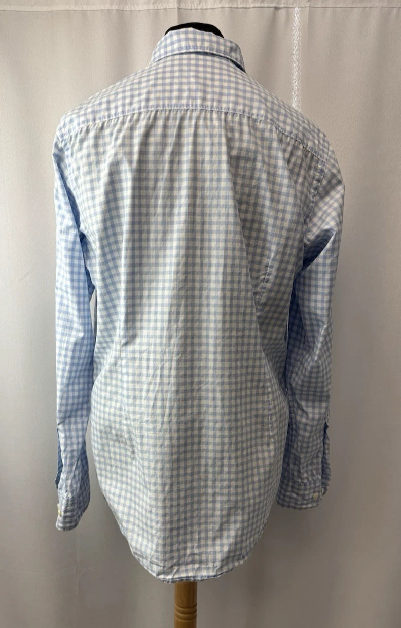 Etro Men’s Checked Long Sleeve Collared Shirt White & Blue Size L
