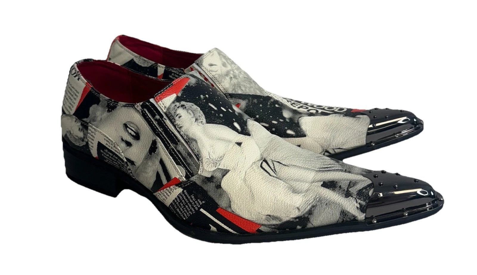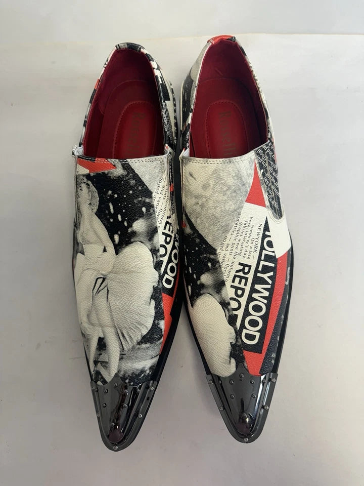 Rossellini Black & White Newspaper Graphic Print Men’s Dress Shoes Size UK10