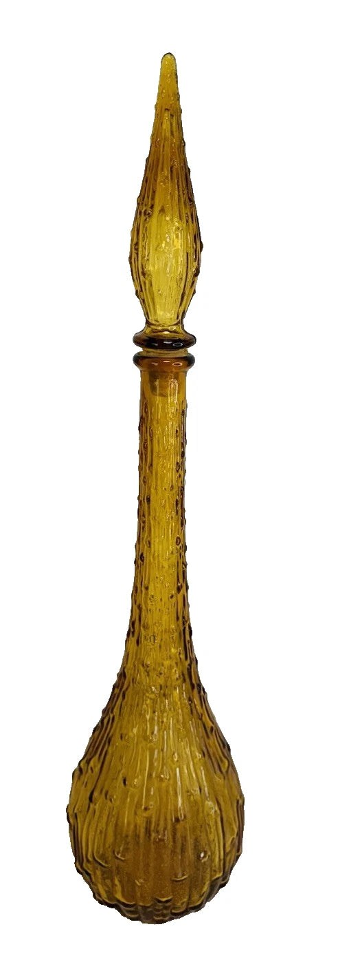 Vintage Empoli Amber Colour Textured Bark Pattern Glass Genie Bottle, 22”