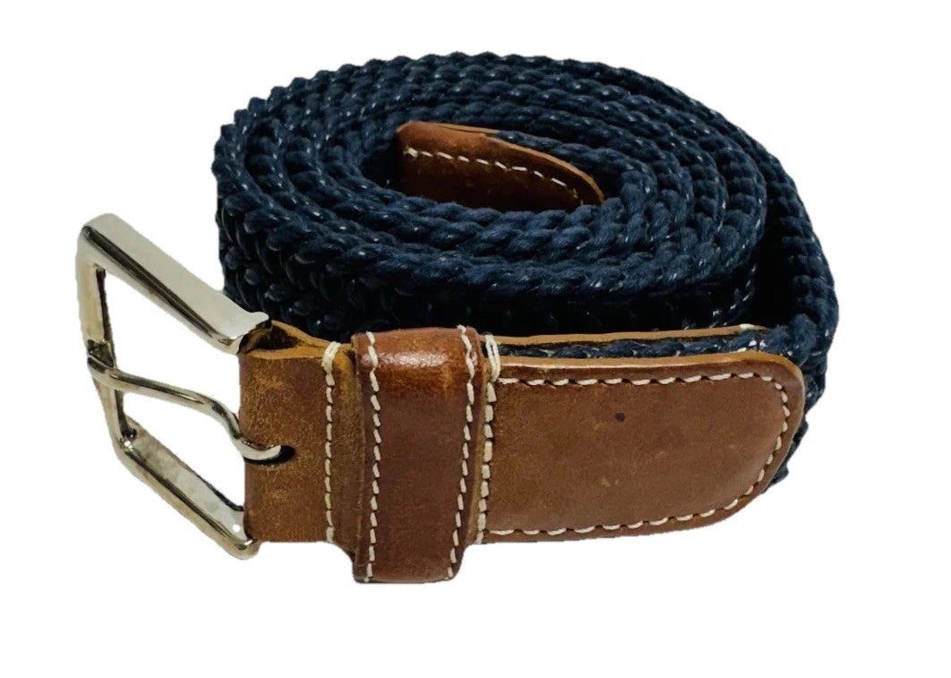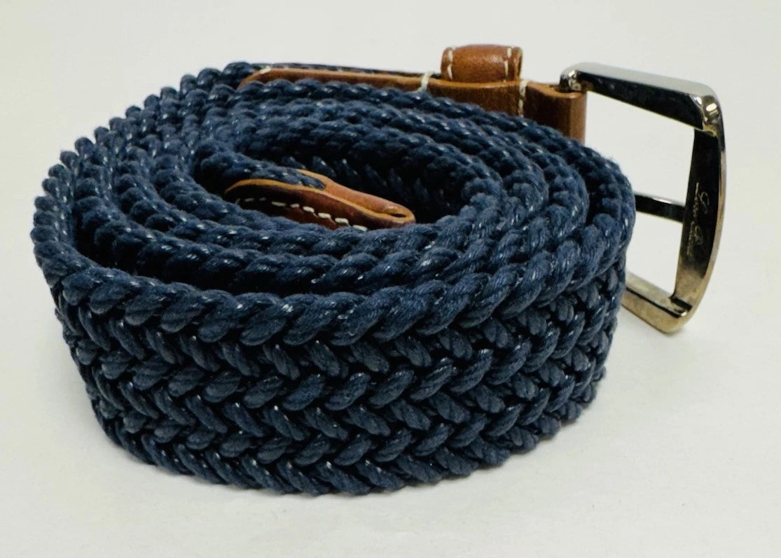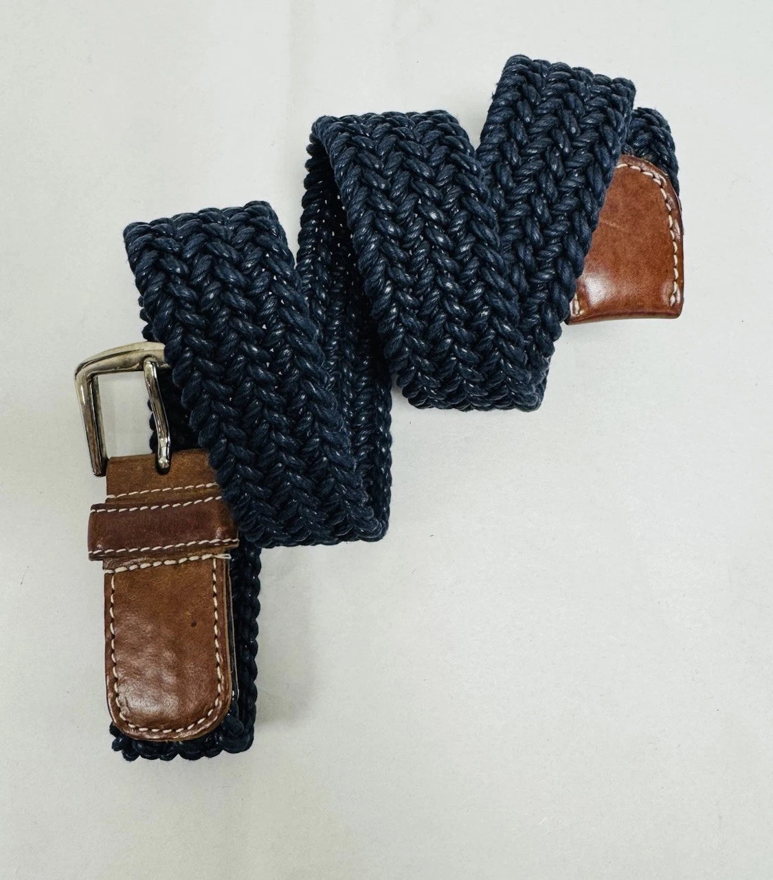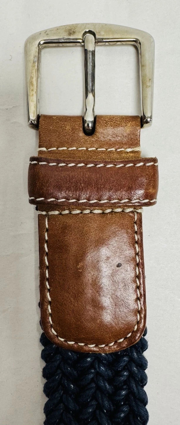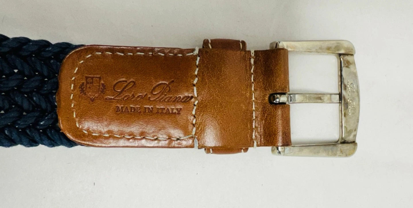 Loro Piana Leather Trimmed Navy Woven Belt, Size 90/36, Made in Italy