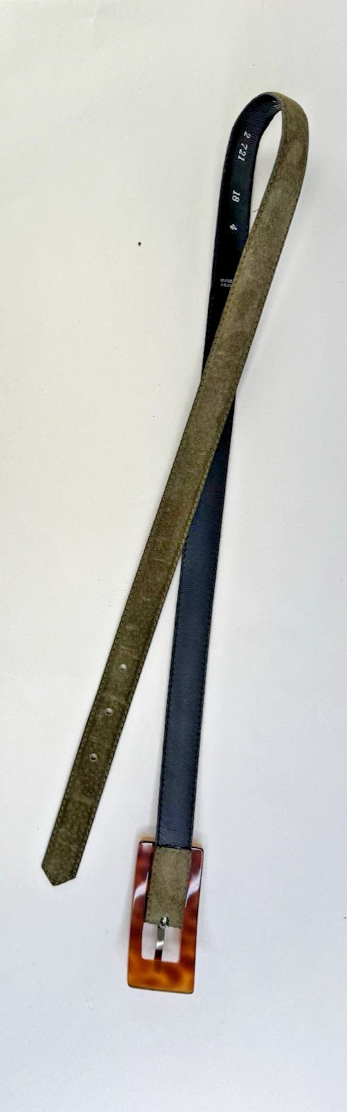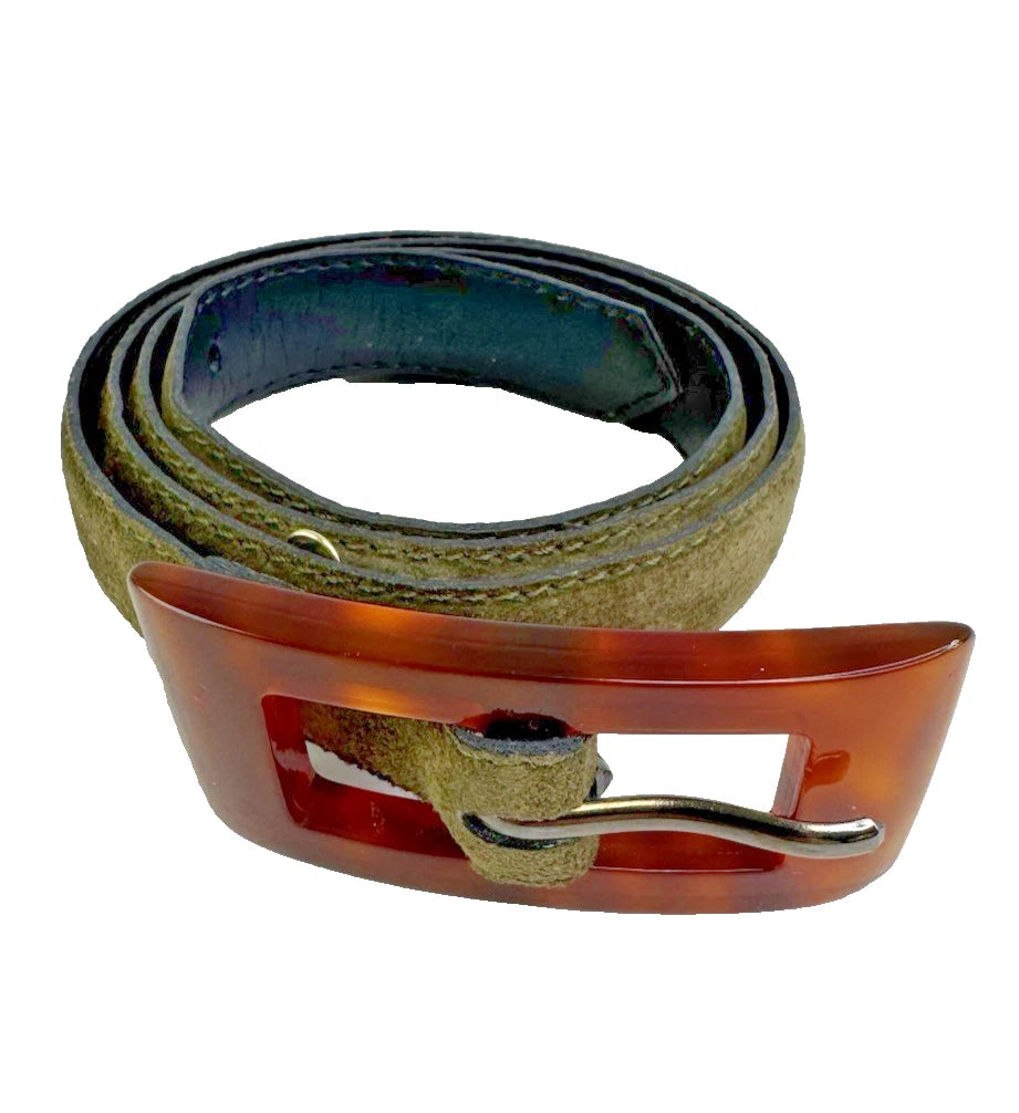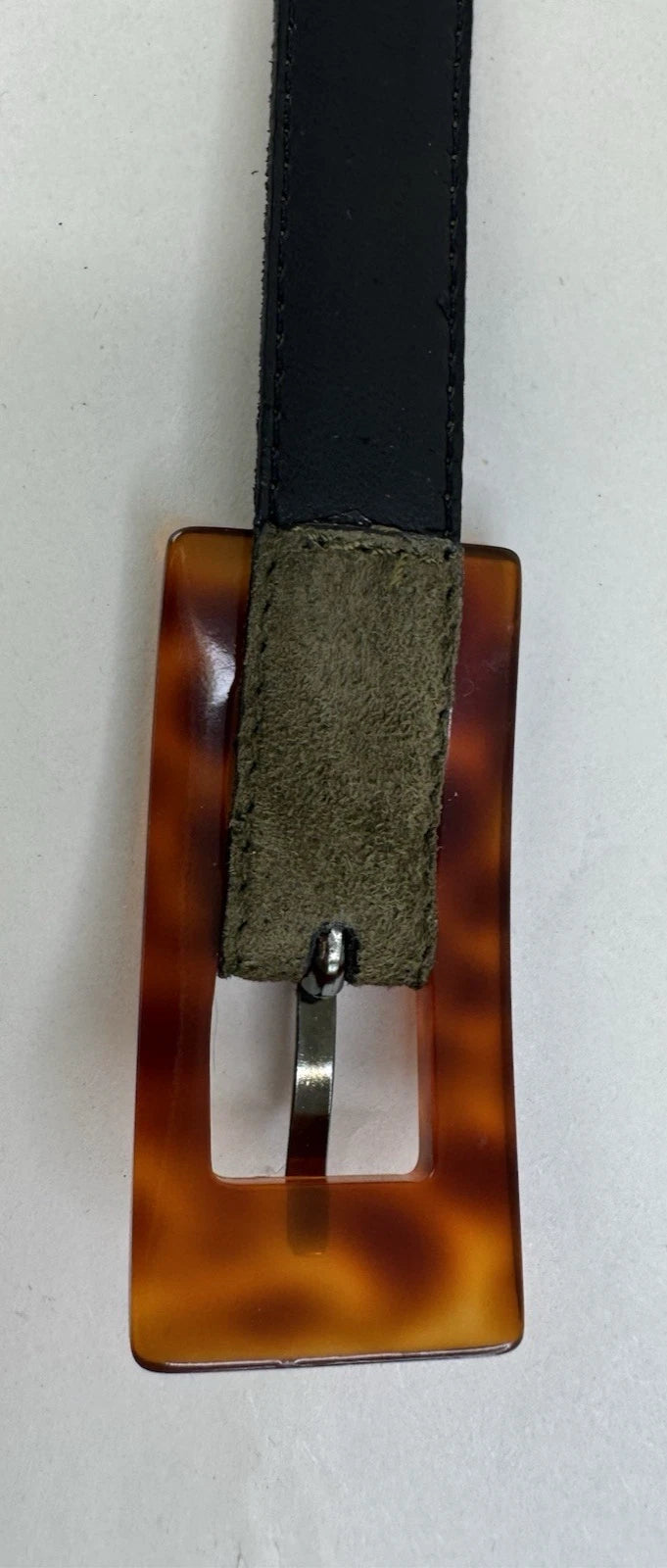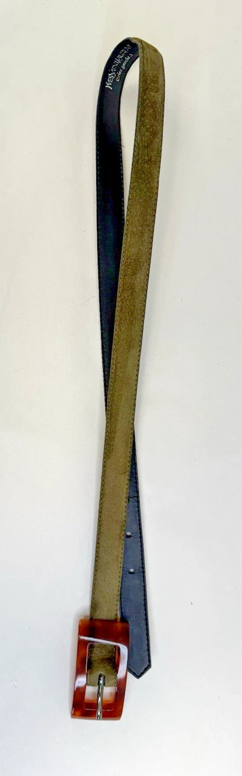 Vtg Yves Saint Laurent Women’s Velvet Pork Leather w/ Tortoise Shell Wide Buckle