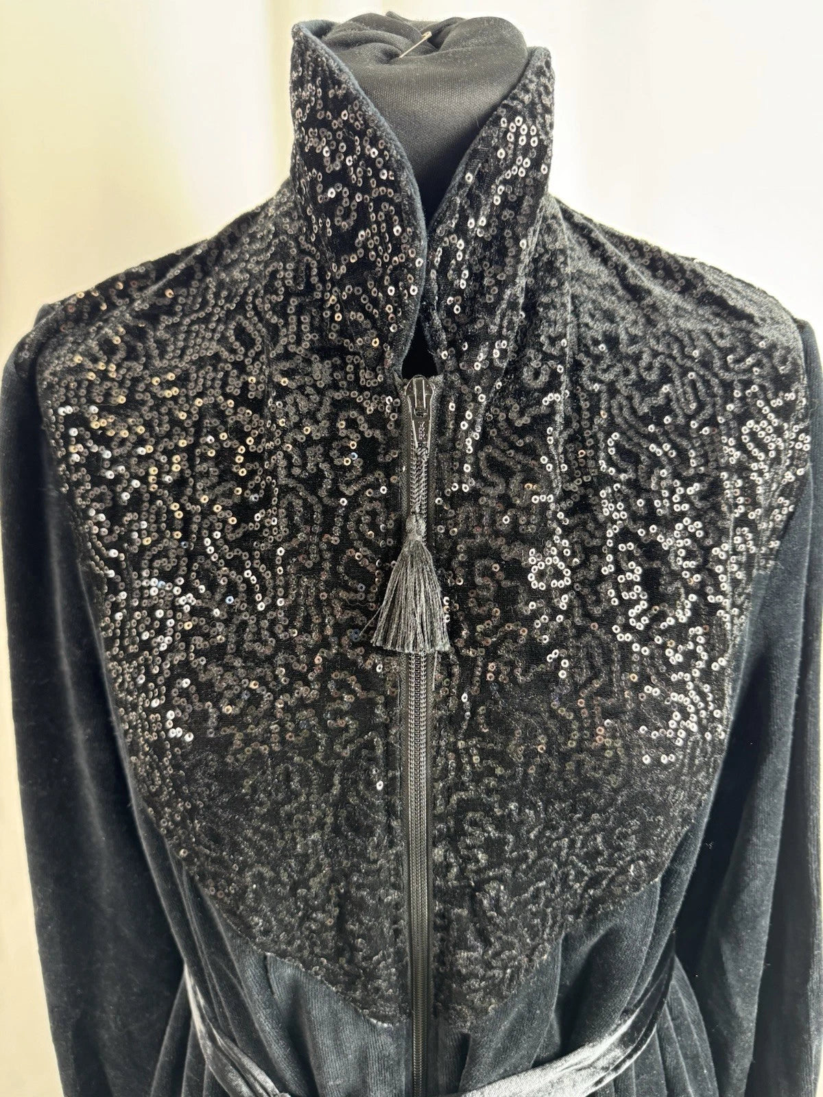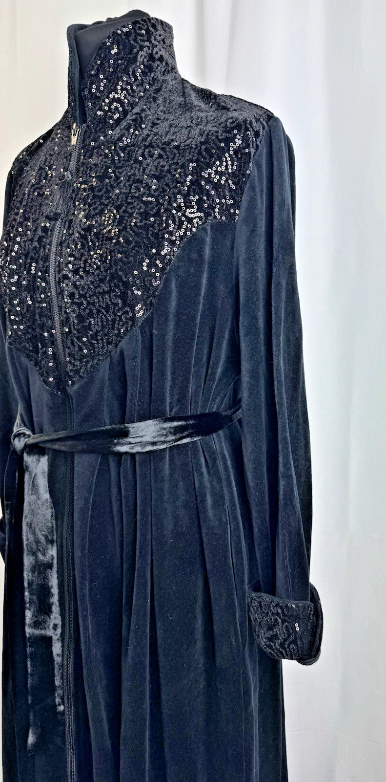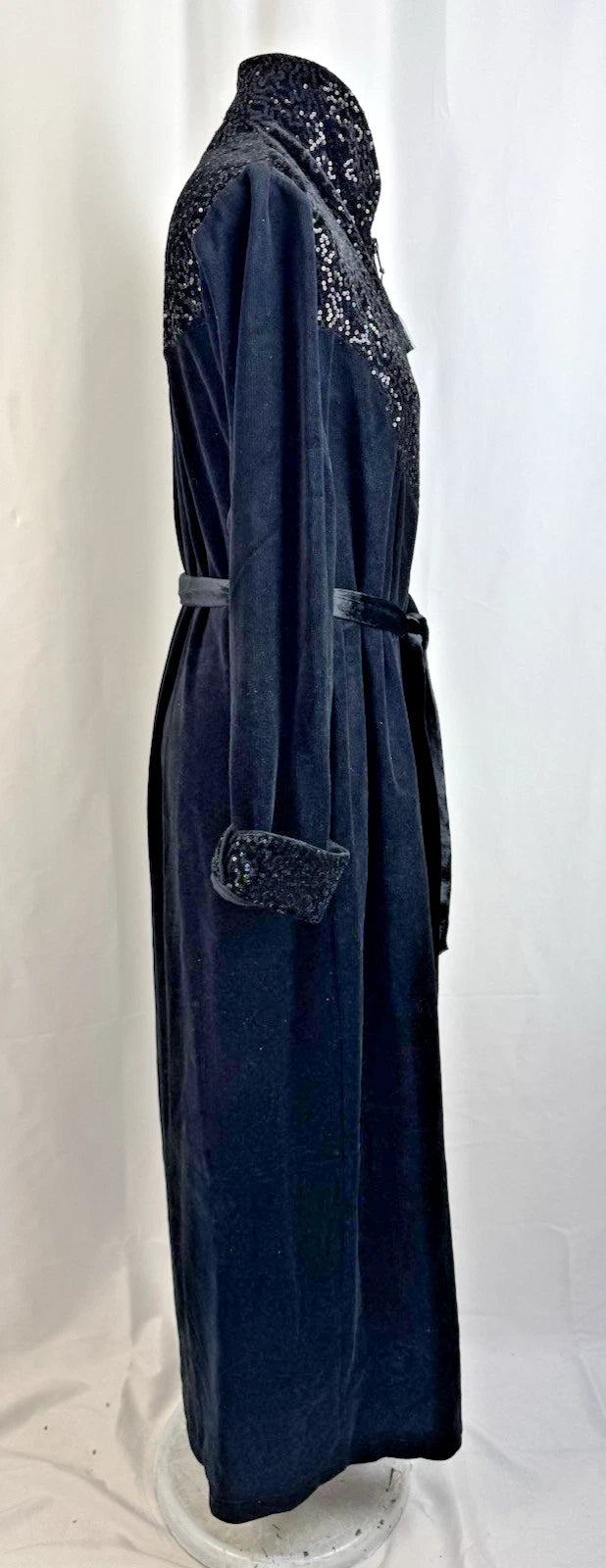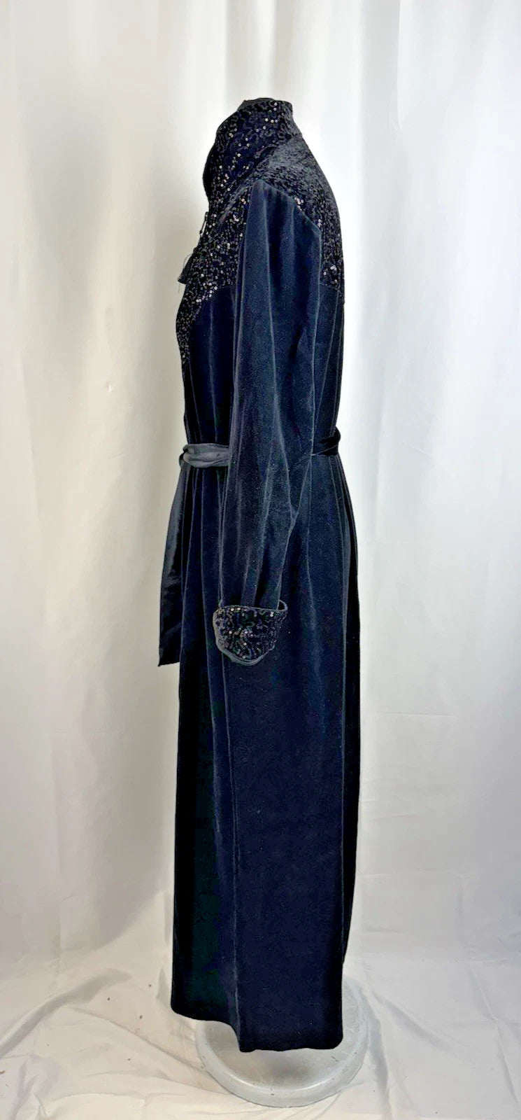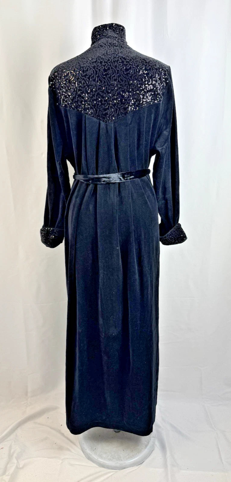 Vtg David Nieper Women’s Black Velvet Sequin Embroidered Long Dressing Gown Robe Size M