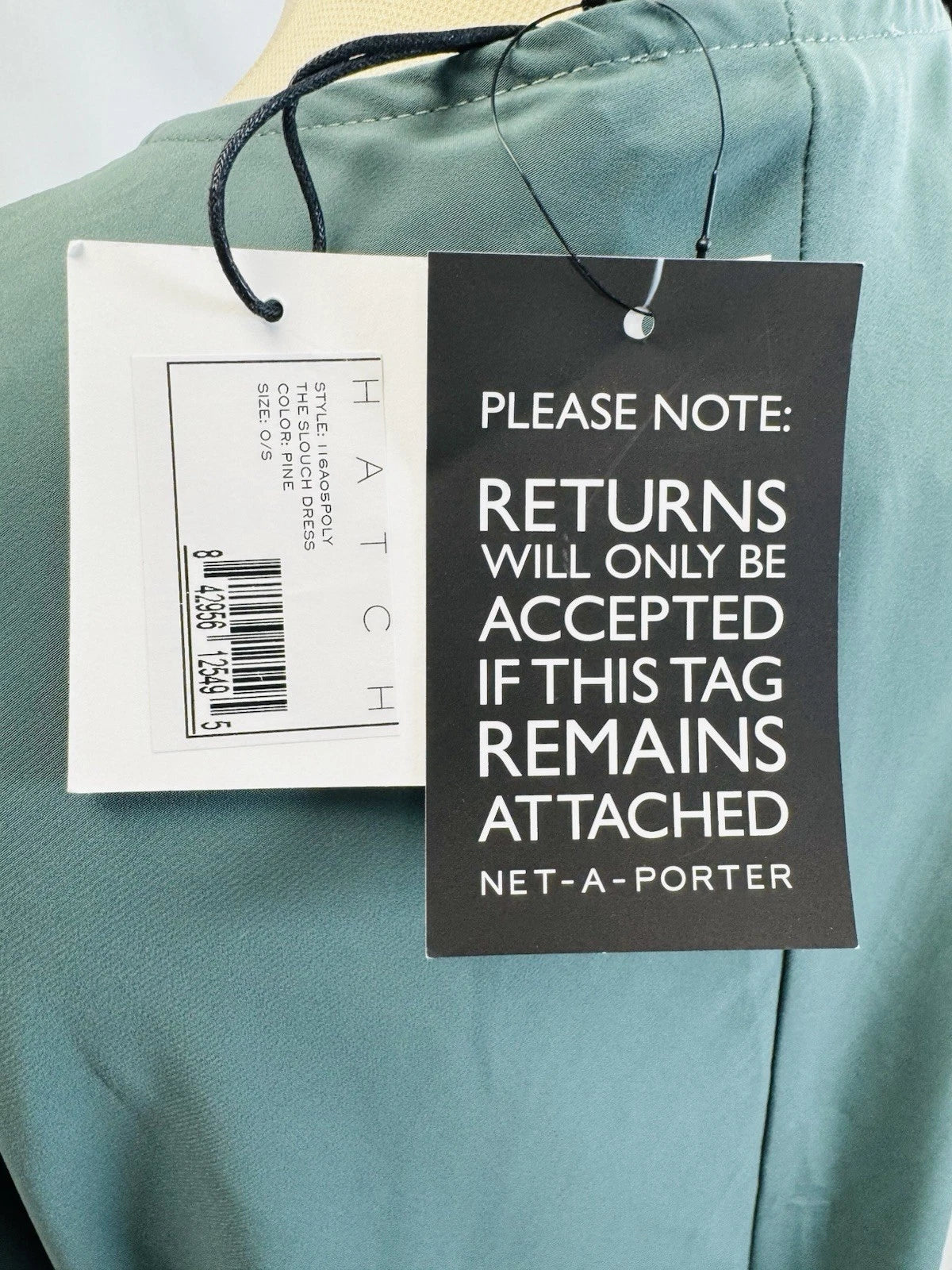 Hatch Slouch Pine Green V Neck Dress, One Size, New
