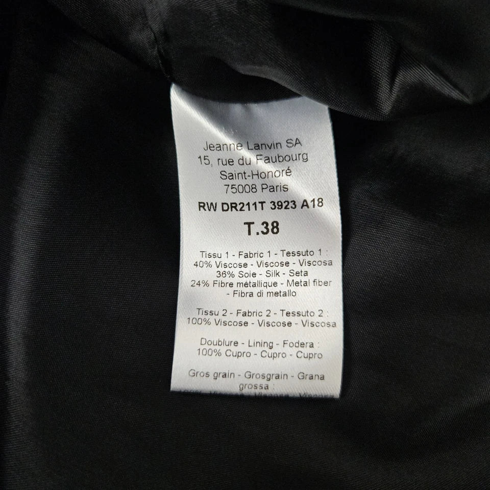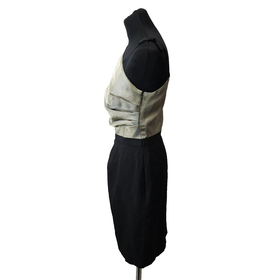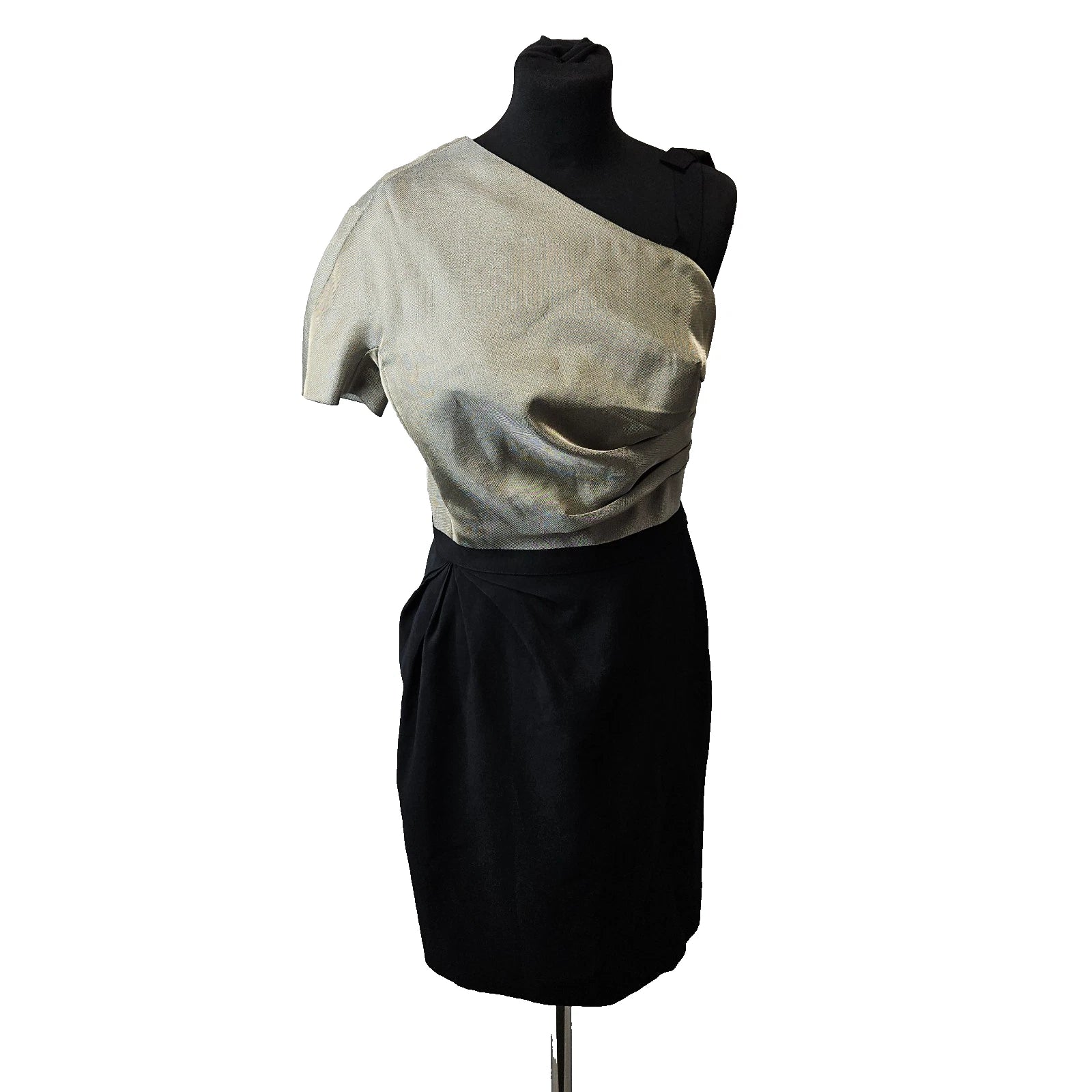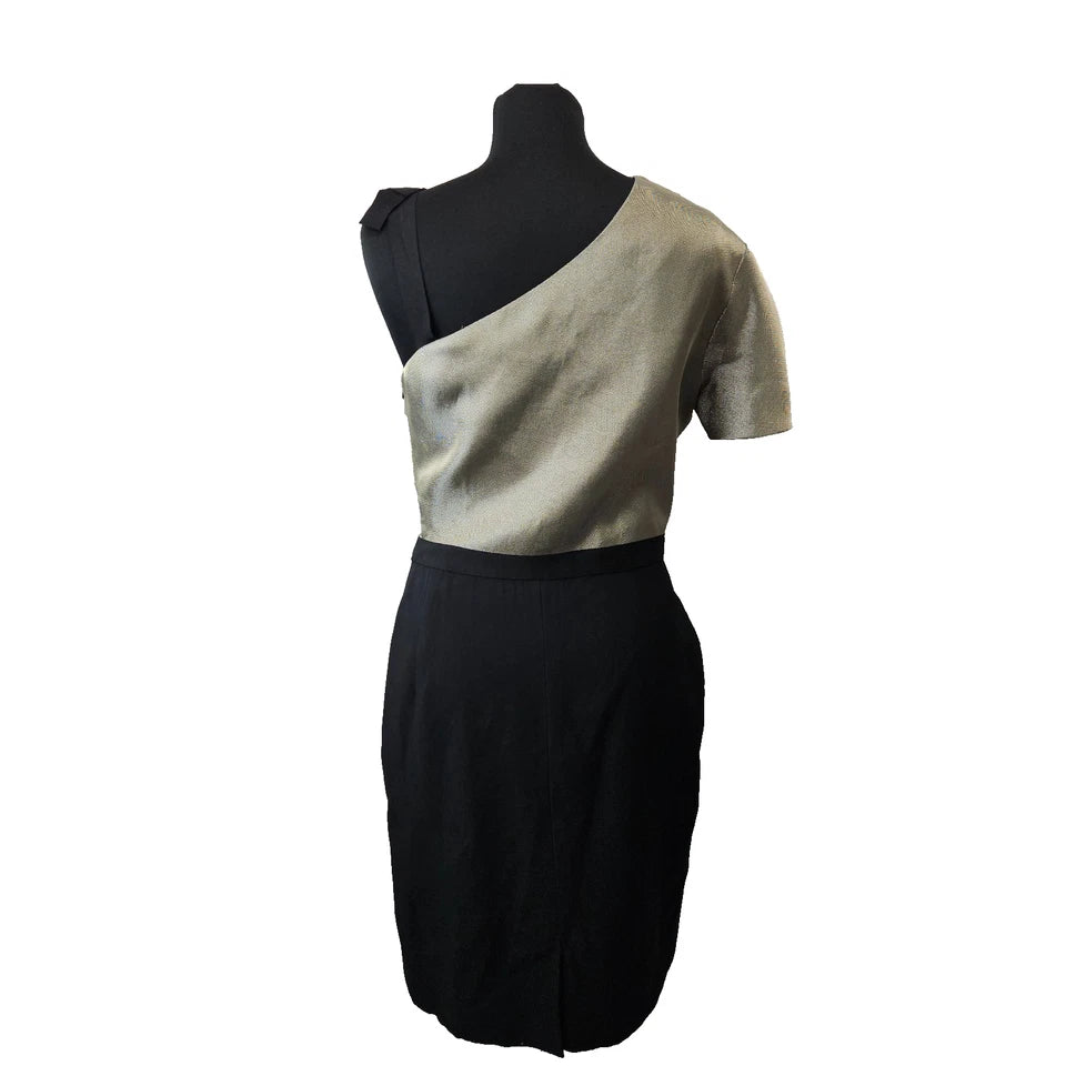 Lanvin Women's Black Gold Asymmetrical Midi Dress Metallic One Shoulder Size 38