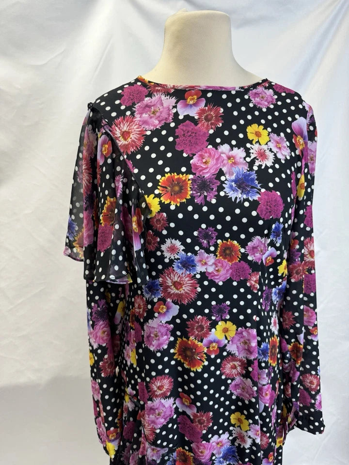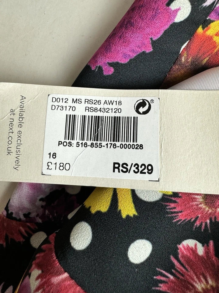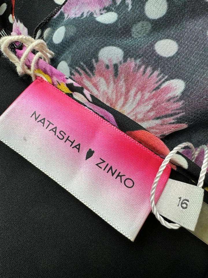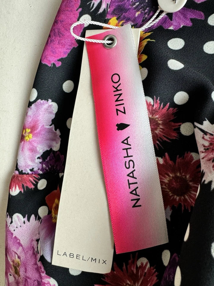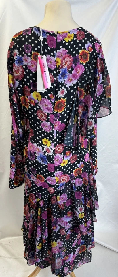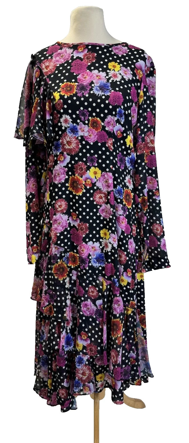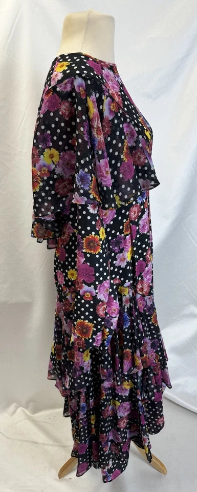 Natasha Zinko Polka Dot Floral Long Sleeve Ruffle Maxi Dress Size UK 16- NEW
