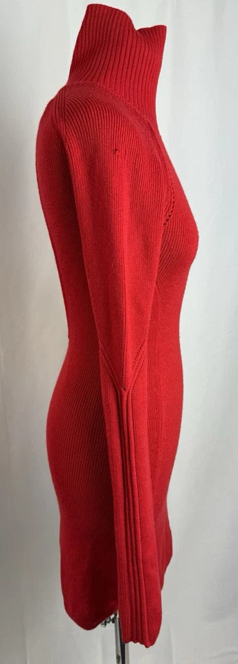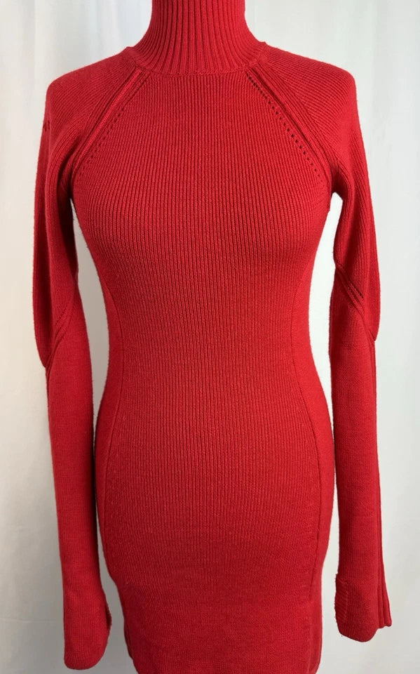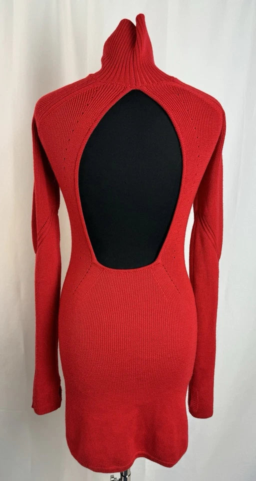 Zadig & Voltaire 100% Merino Wool Red Backless Turtle Neck Sweater Dress Size S