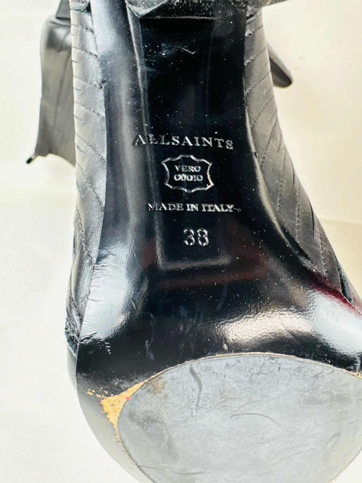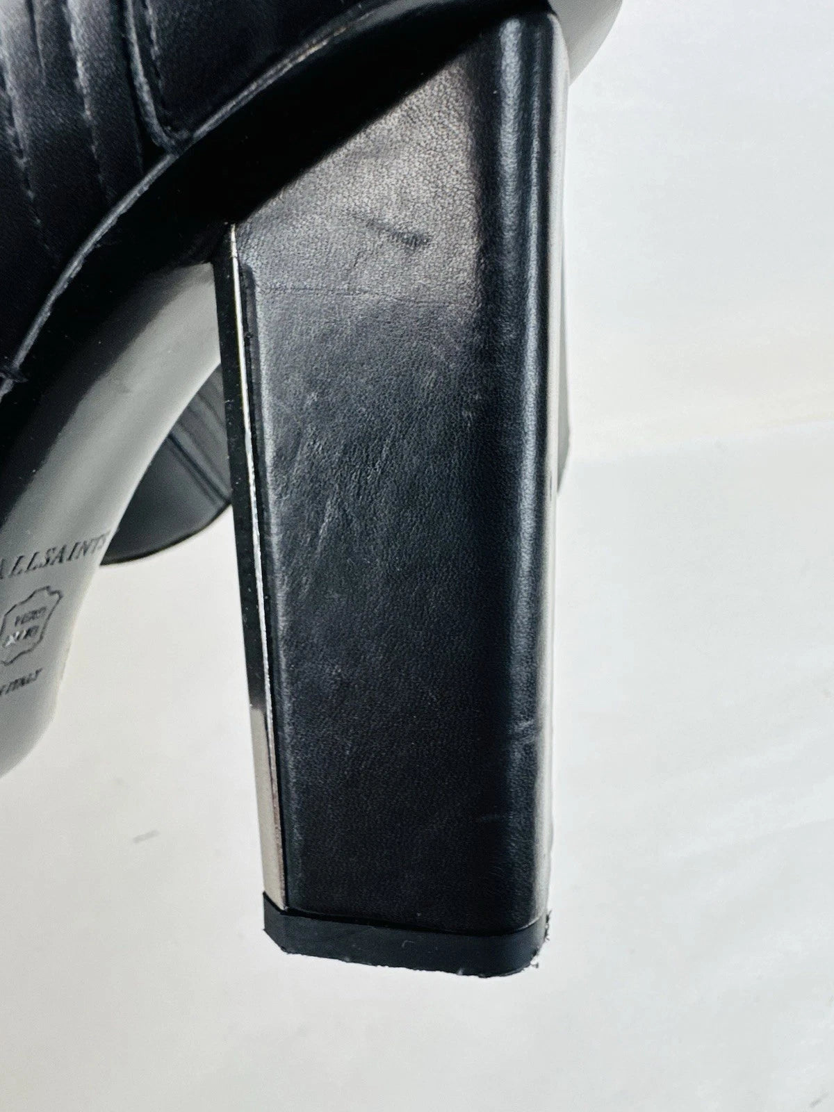 All Saints Black Leather Cubista Heel Boots Size UK 5