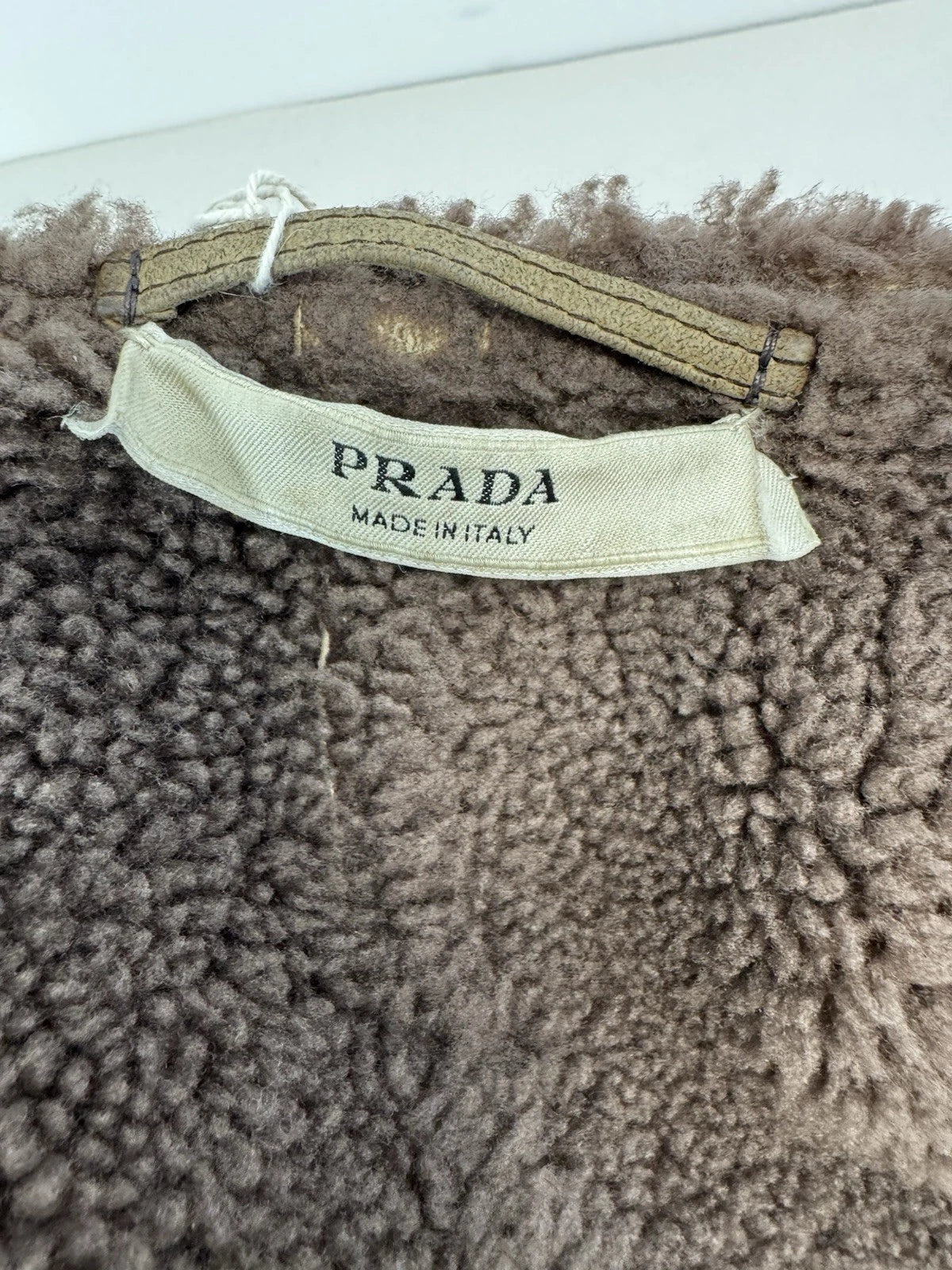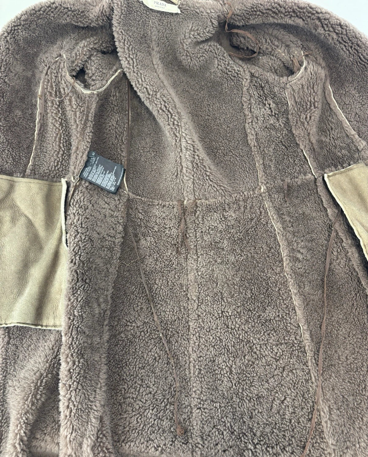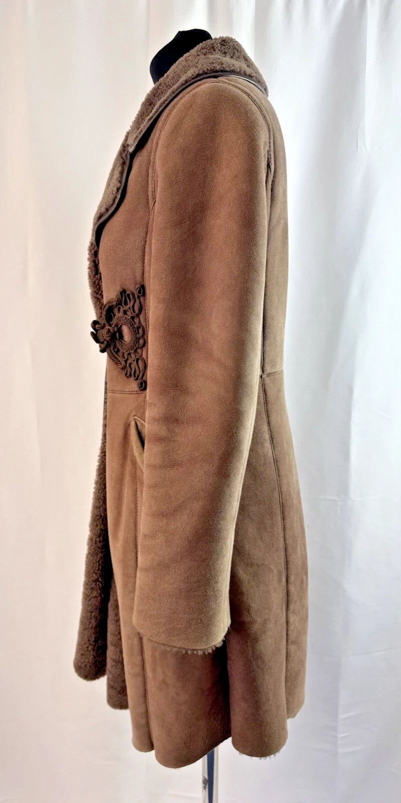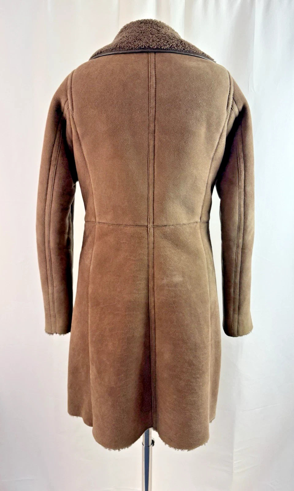 Prada Women's Leather Sheepskin Knee Length Trench Coat Brown Size 14