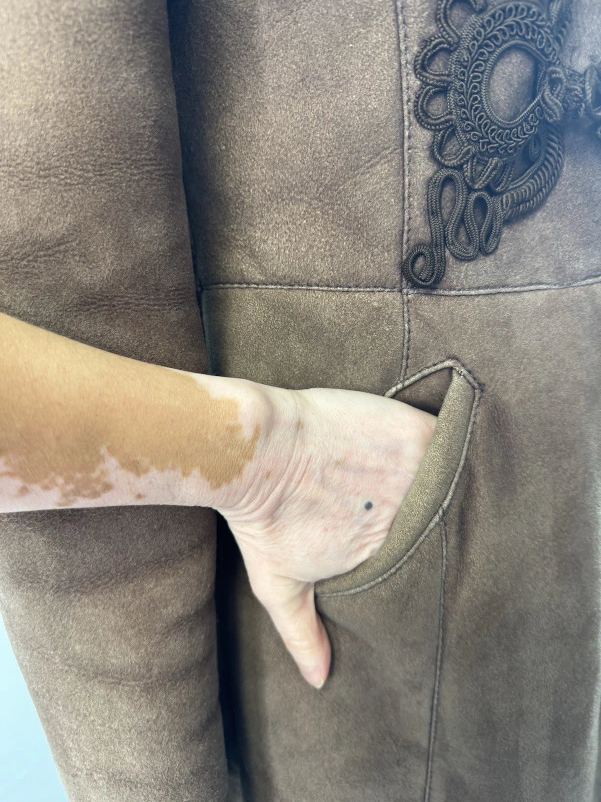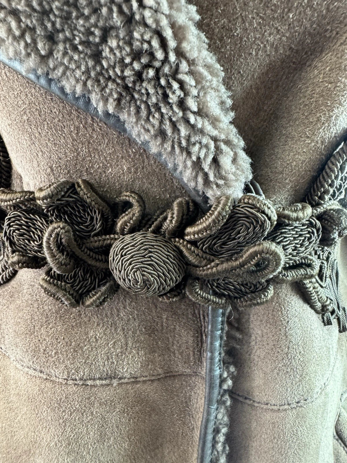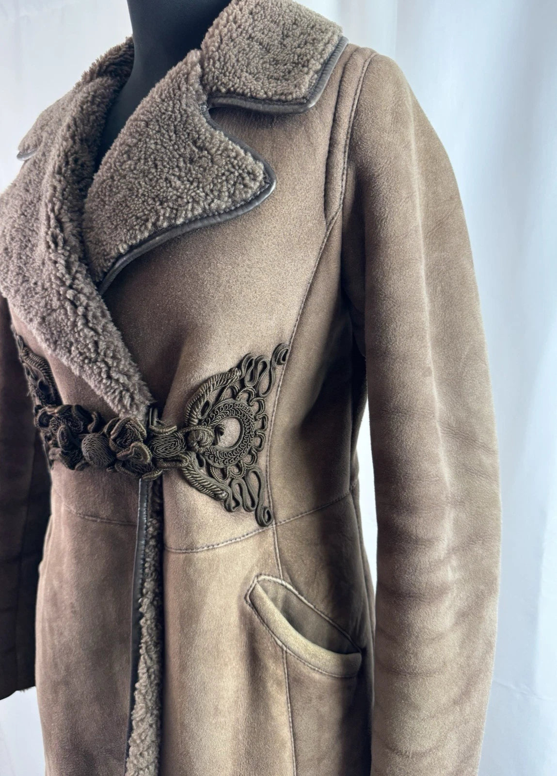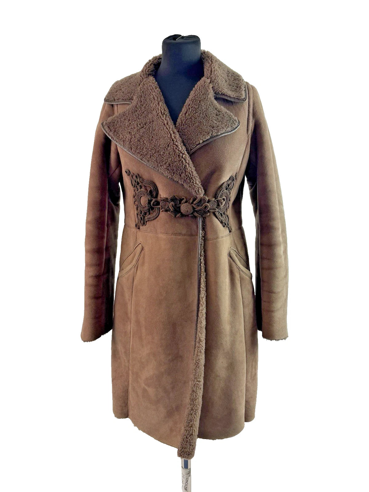 Prada Women's Leather Sheepskin Knee Length Trench Coat Brown Size 14