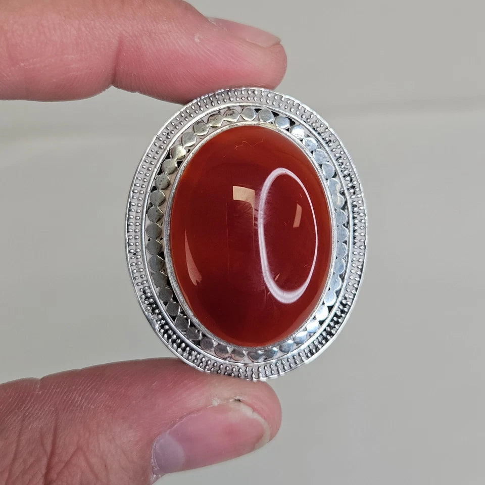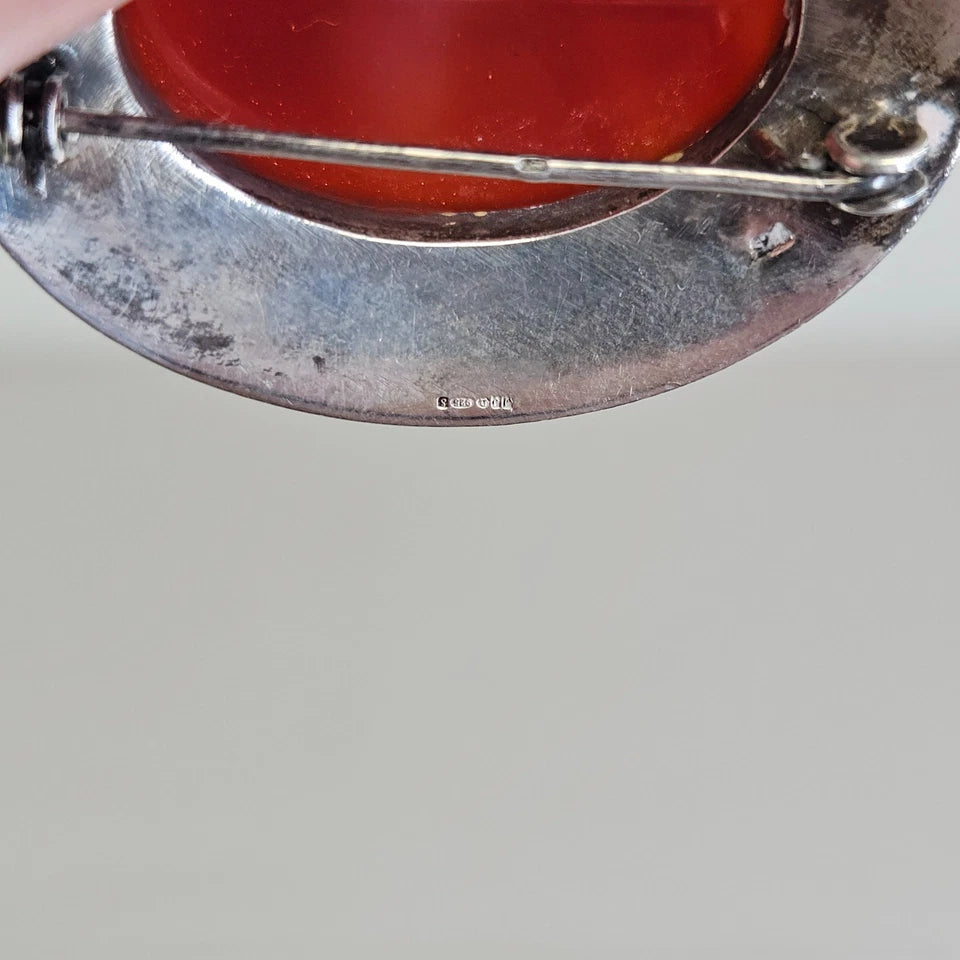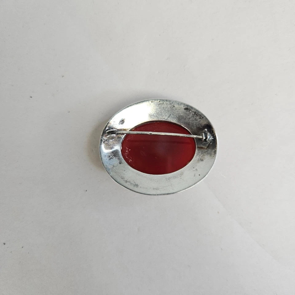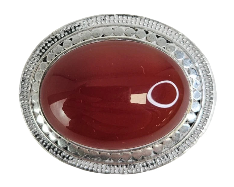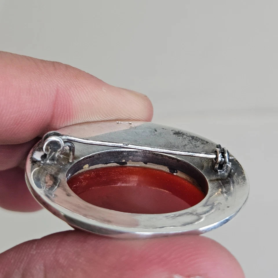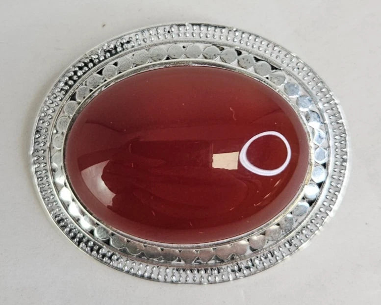 Vintage 925 Sterling Silver Red Large Stone Broach / Pin