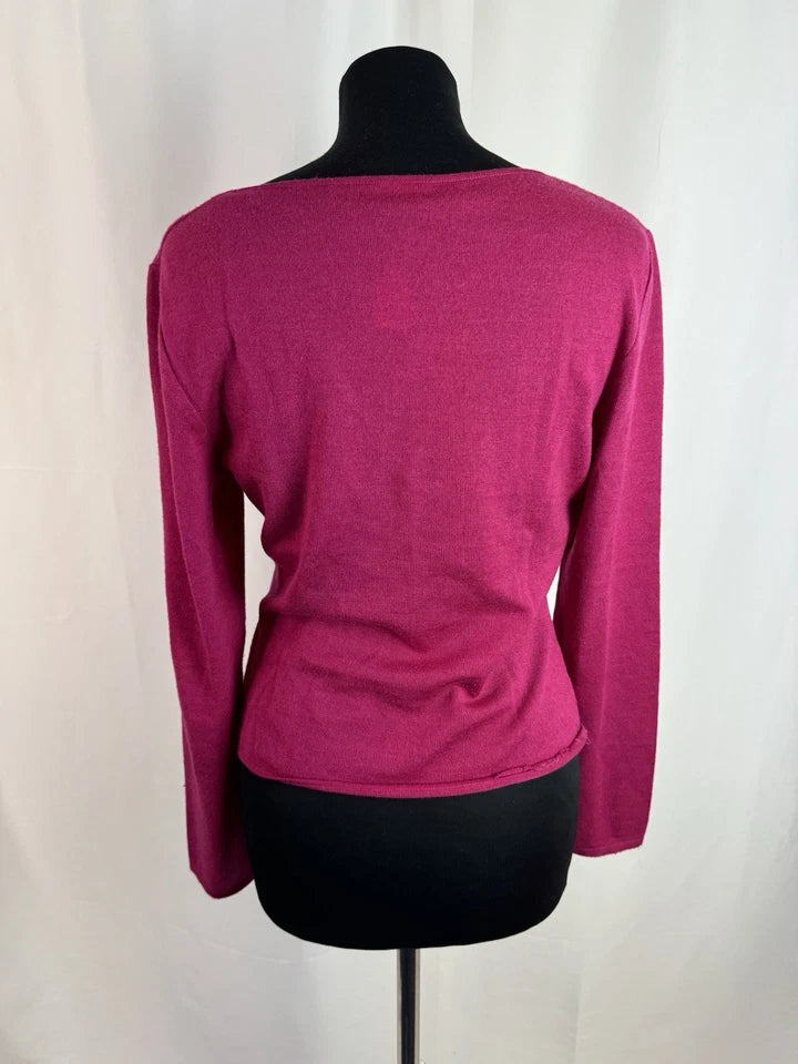 Emanuel Ungaro Silk Wool Blend Fuschia Women’s Knitted Ruched Top Size Large