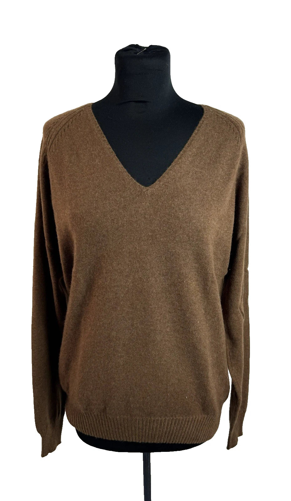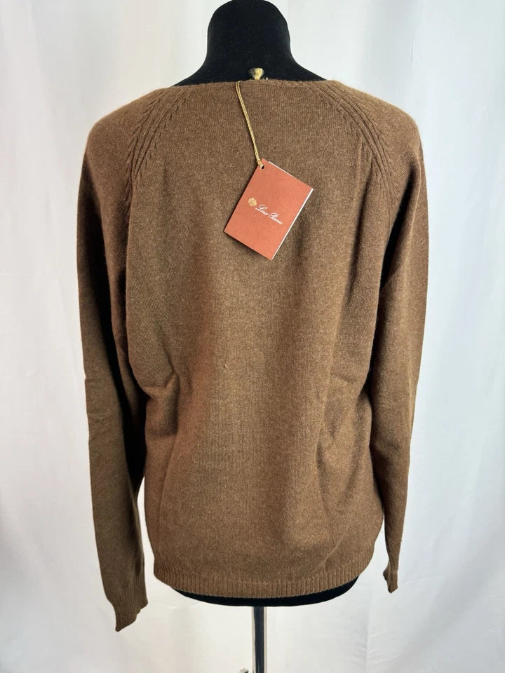 Loro Piana Brown Cashmere Women’s V Neck Sweater Size Large-NEW