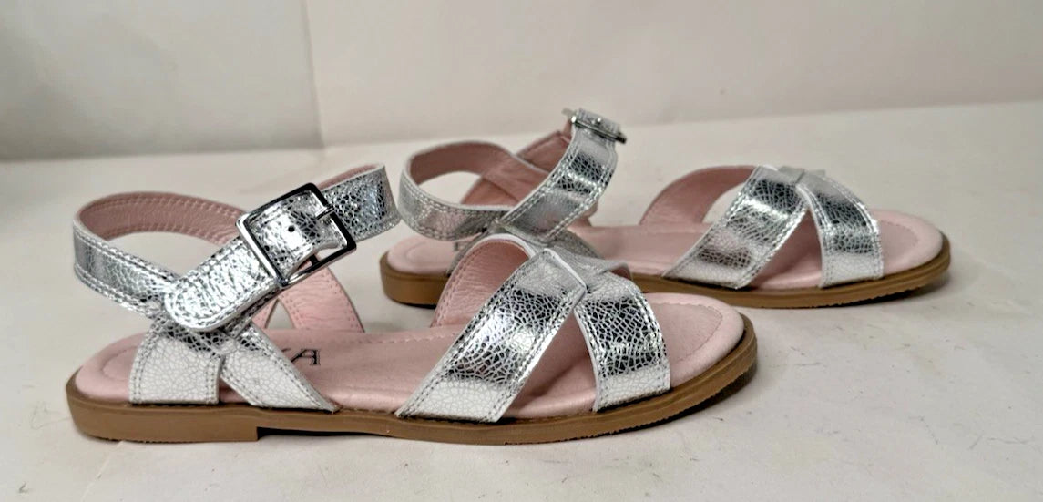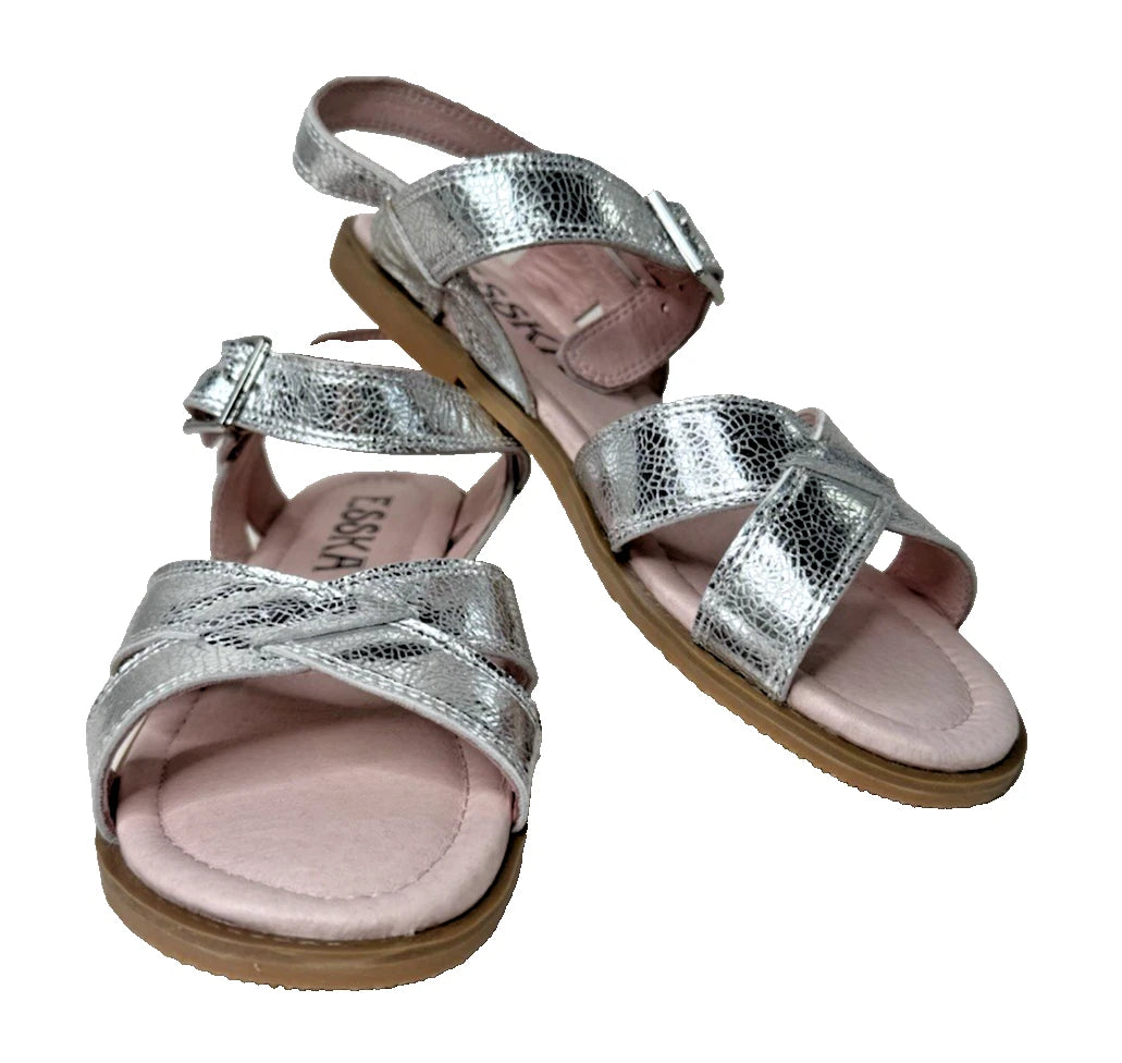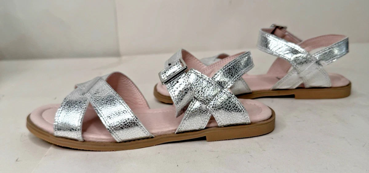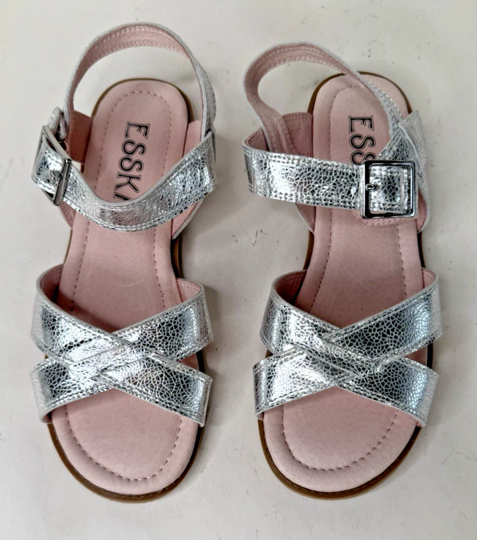Esska Women's Criss-Cross Strap Flat Sandals Silver Size 2.5 - NEW