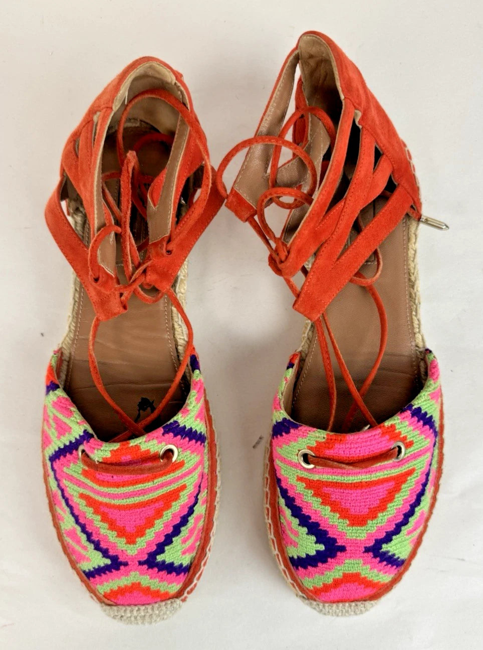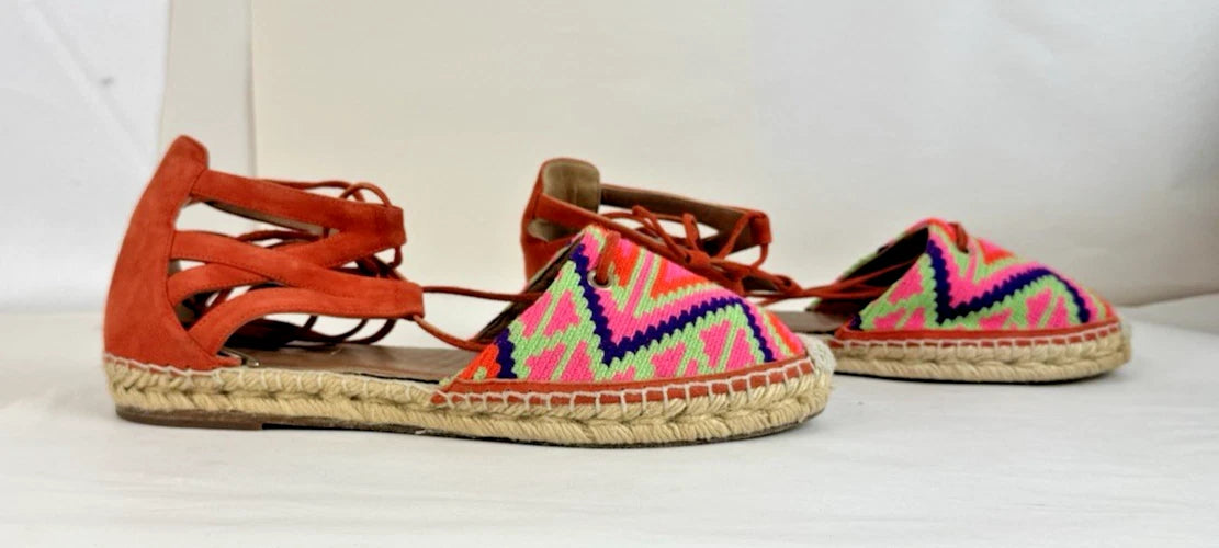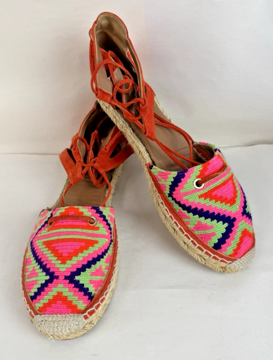 Aquazzura Women’s Firenze Woven Suede Lace-Up Espadrilles Multicoloured Size 4