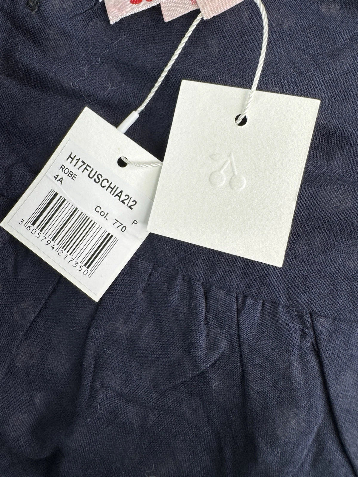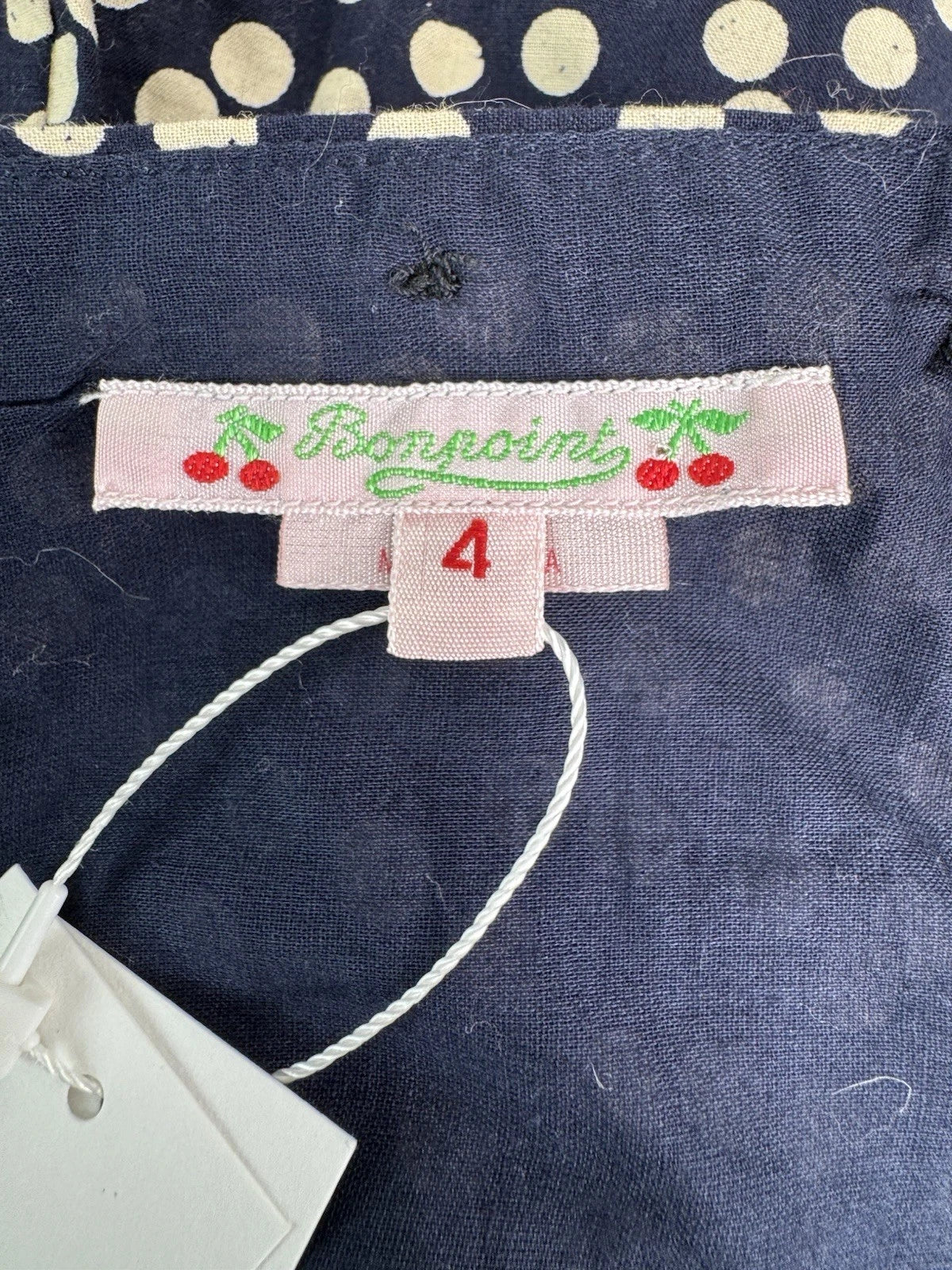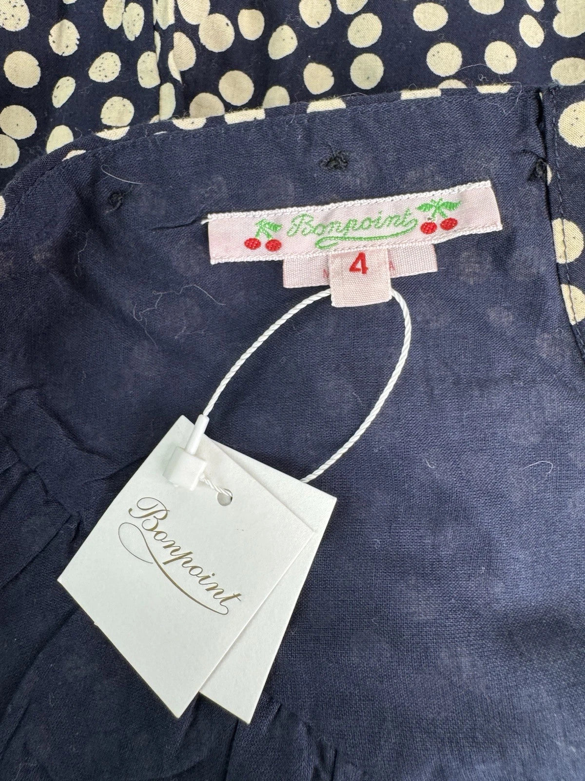 Bonpoint Girls Navy/Cream Polka Dot A-Line Dress 100% Cotton Size 4 Years – NEW