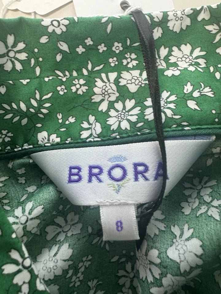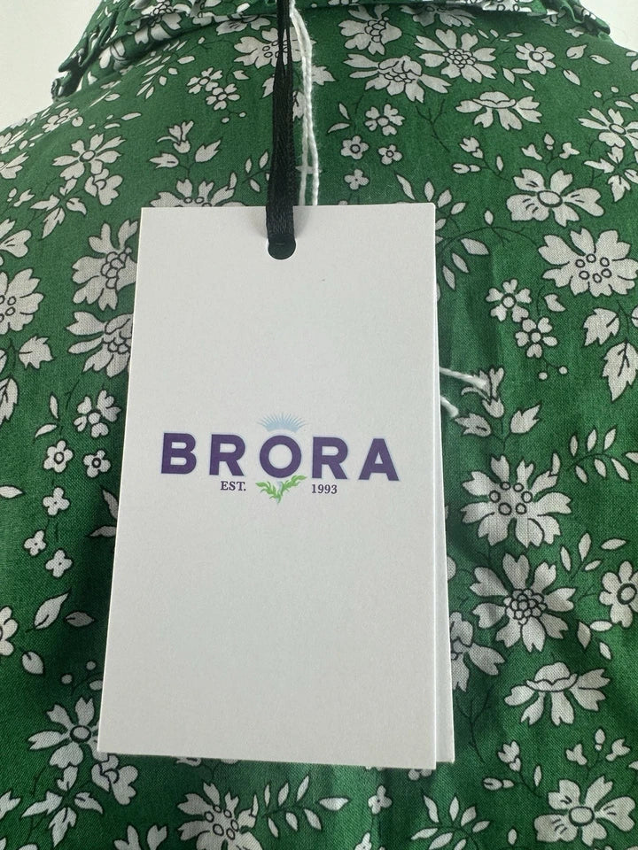 Brora Green & White Cotton Floral Women’s Blouse Size UK 8-NEW