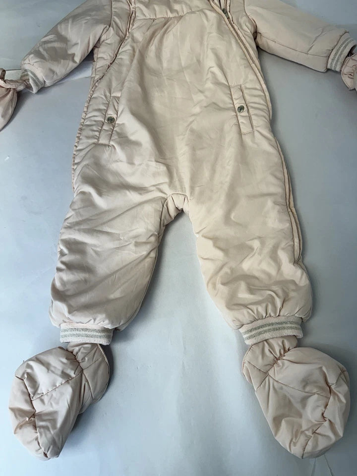 Chloe Kids Light Pink Baby Snow Suit Outerwear W/ Detachable Mittens Size 18mo