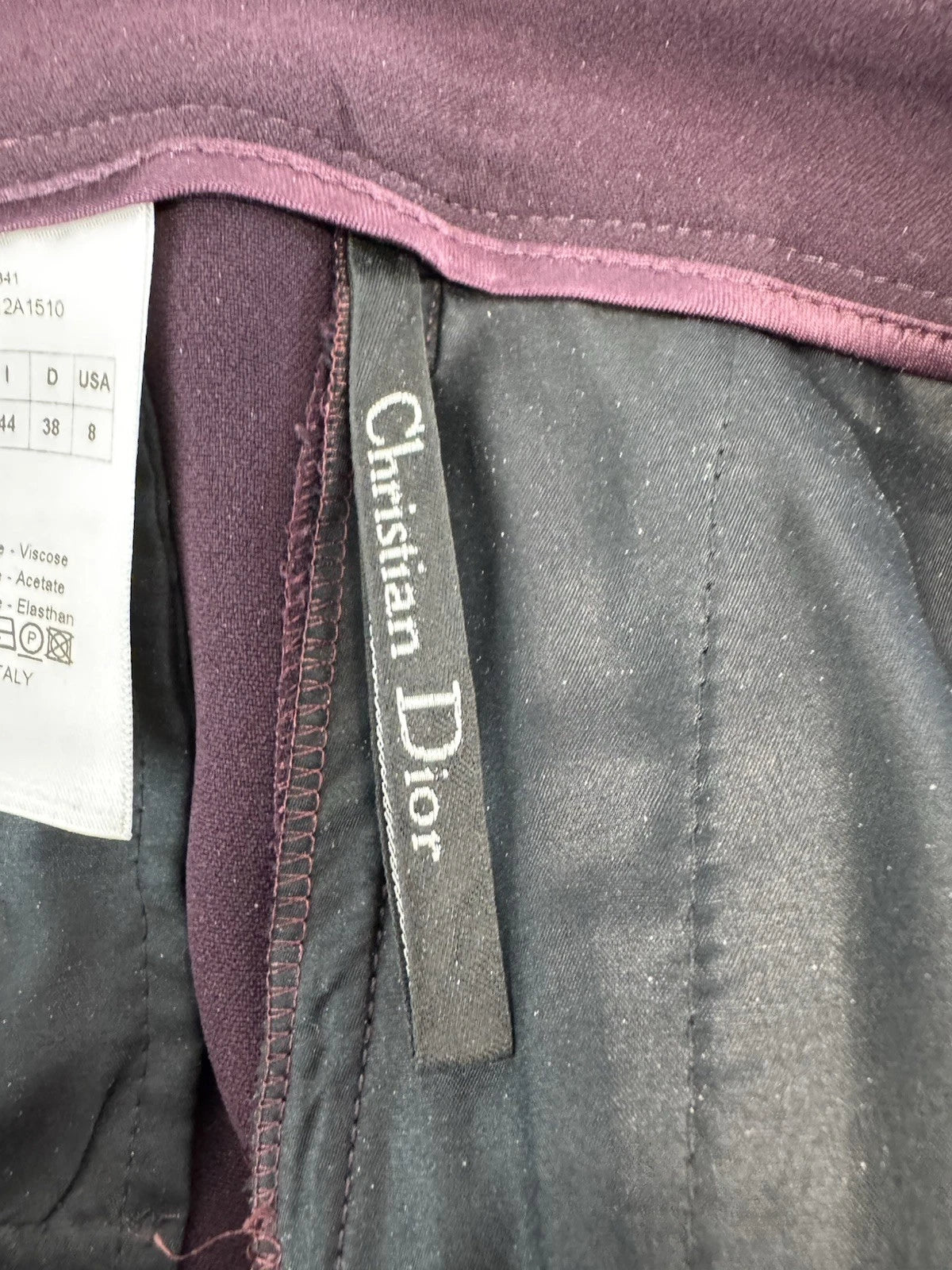 Christian Dior Women’s Burgundy High Waisted Pleated Tapered Leg Trousers Sz 12
