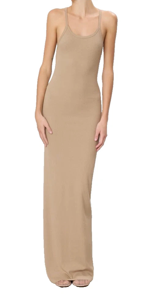 Eterne Women's Sleeveless Racerback Tank Maxi Dress Taupe Size S - NEW