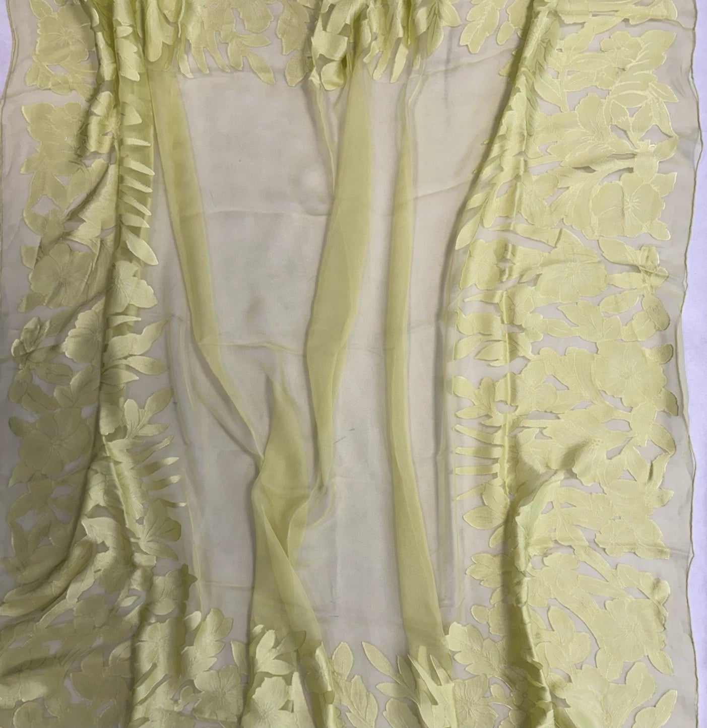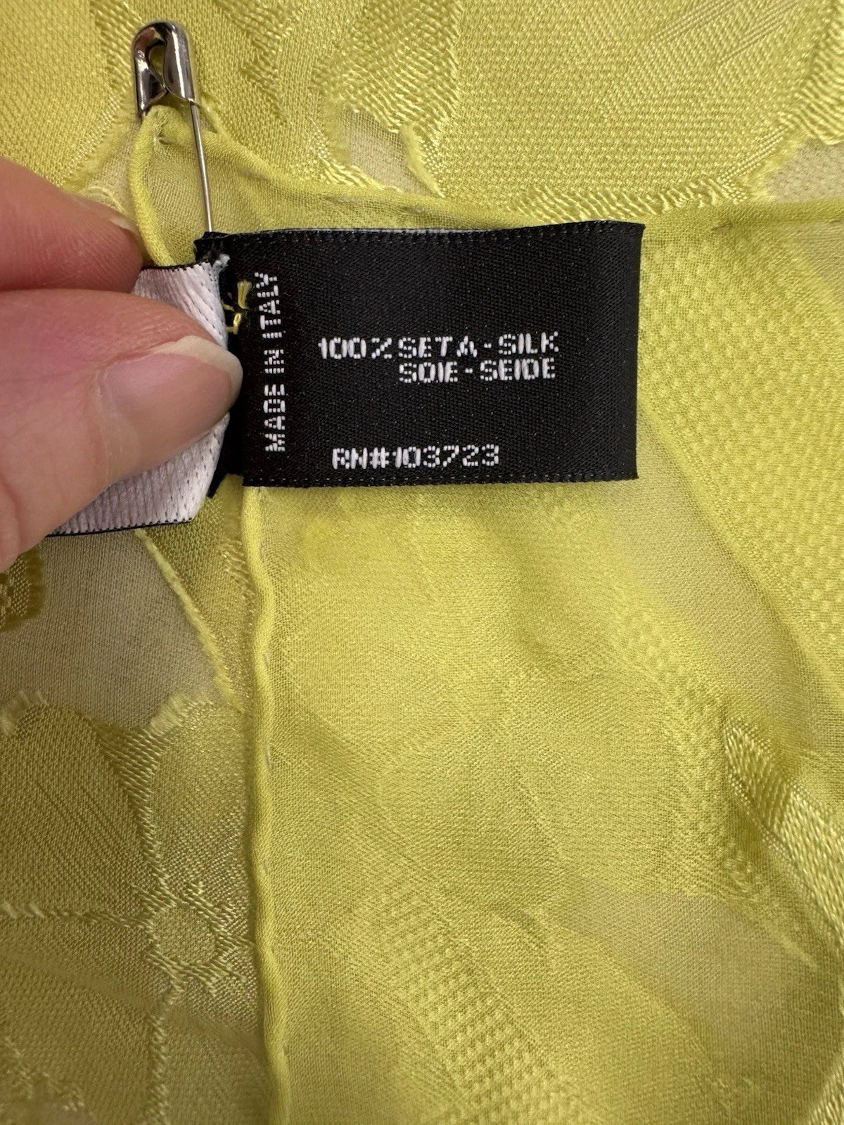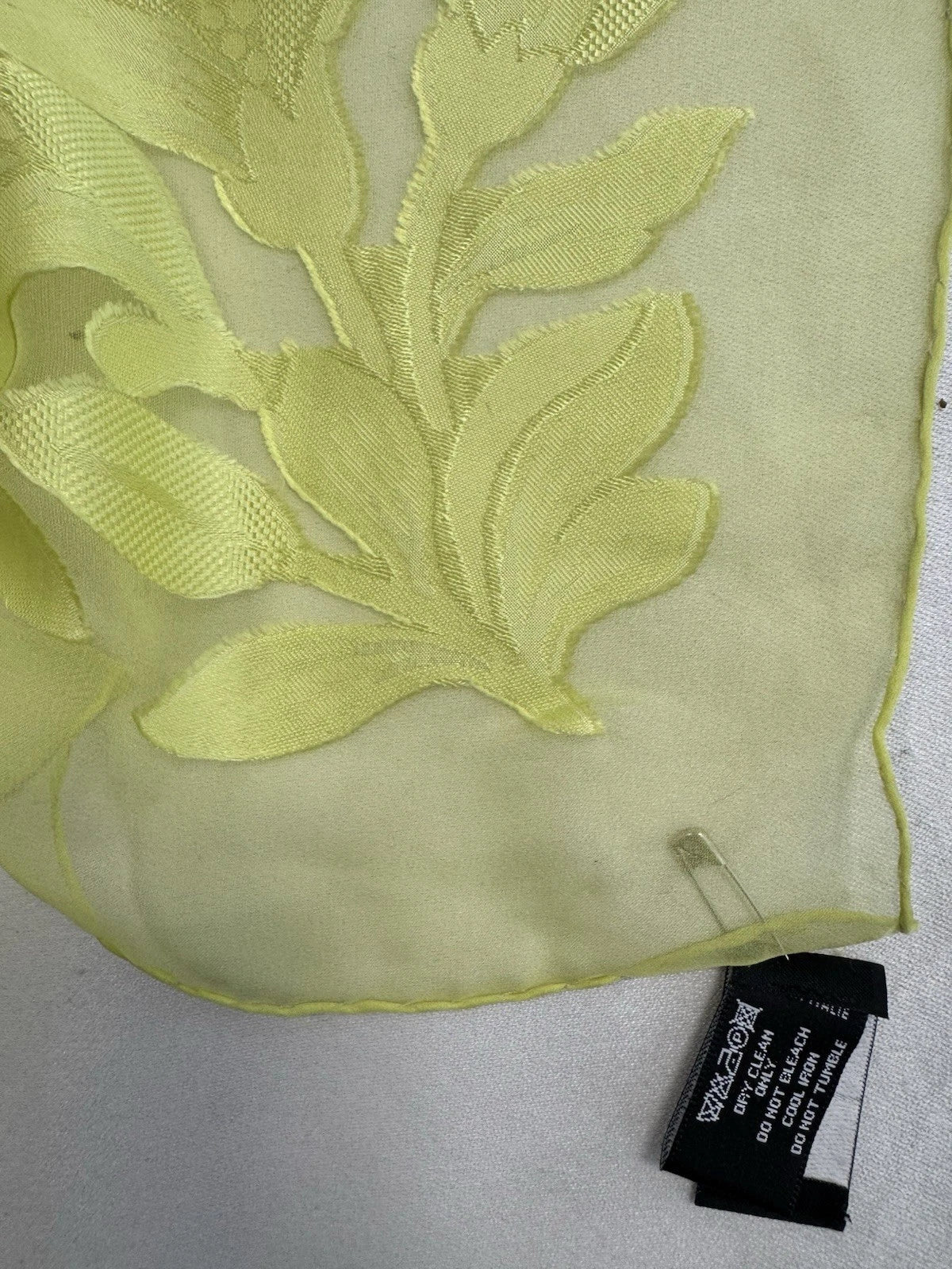 Giorgio Armani Women’s Lime Green Sheer Silk Square Scarf Wrap Botanical Leaf