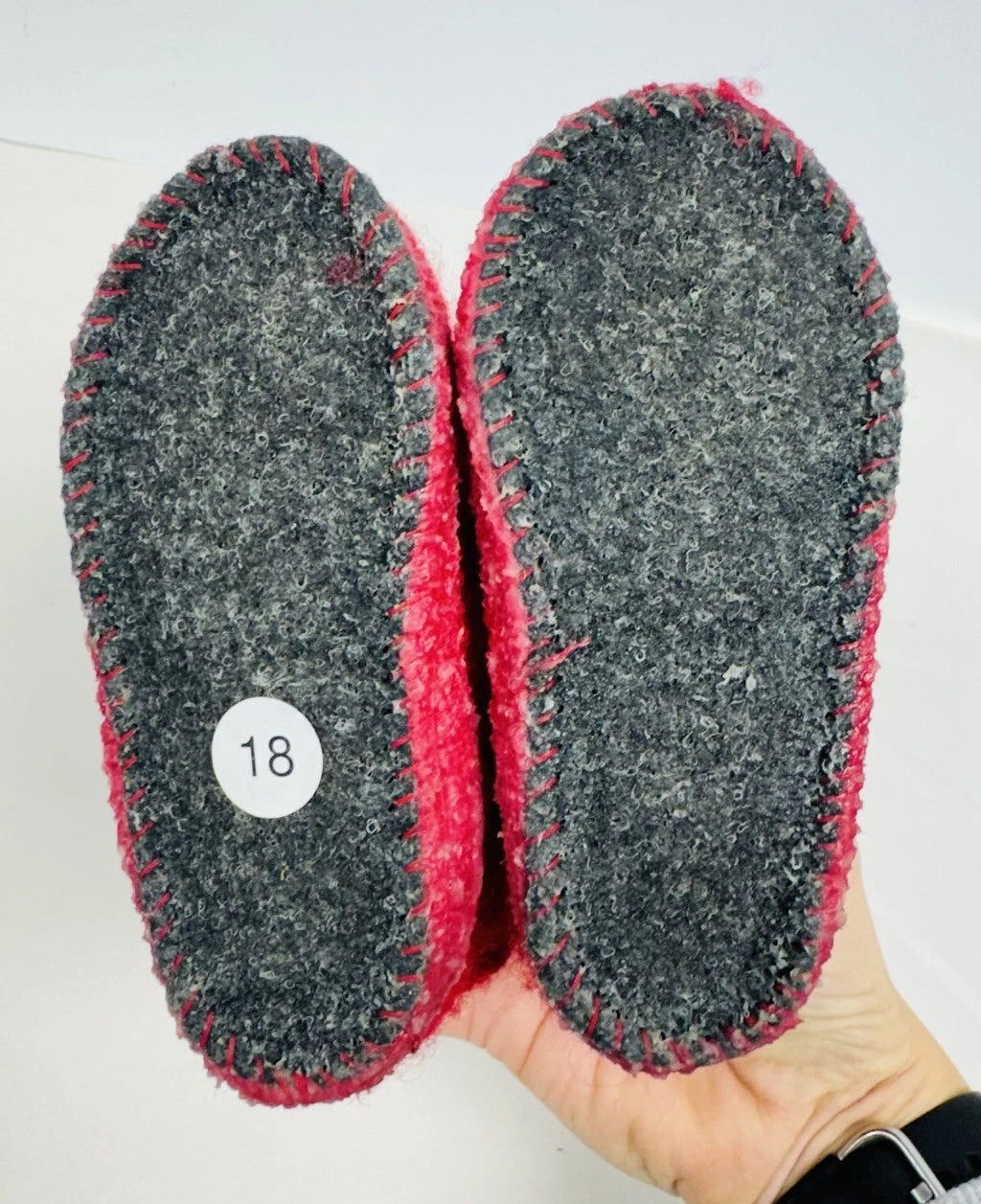 The felt soles are dipped in latex to provide a non-slip sole