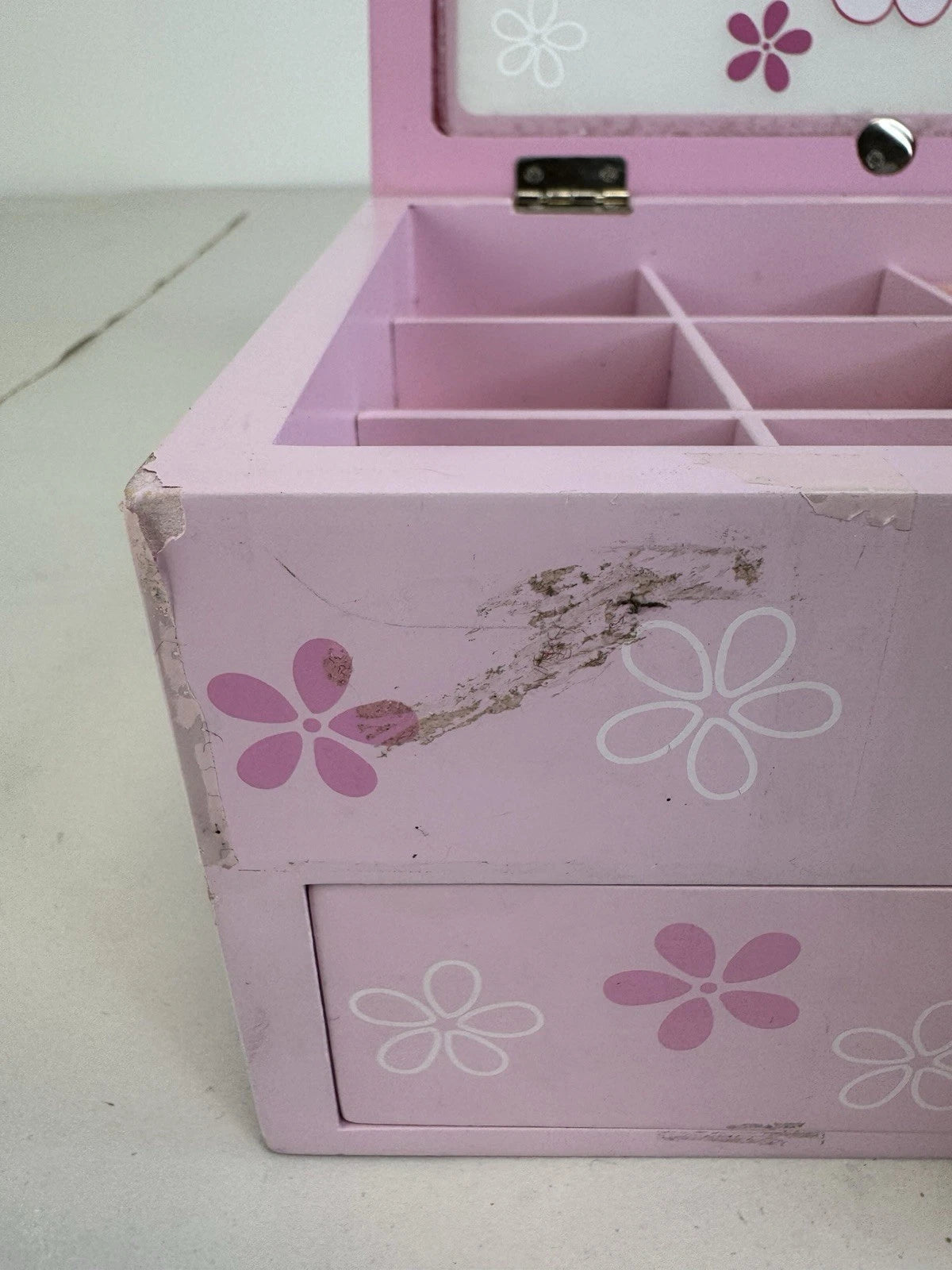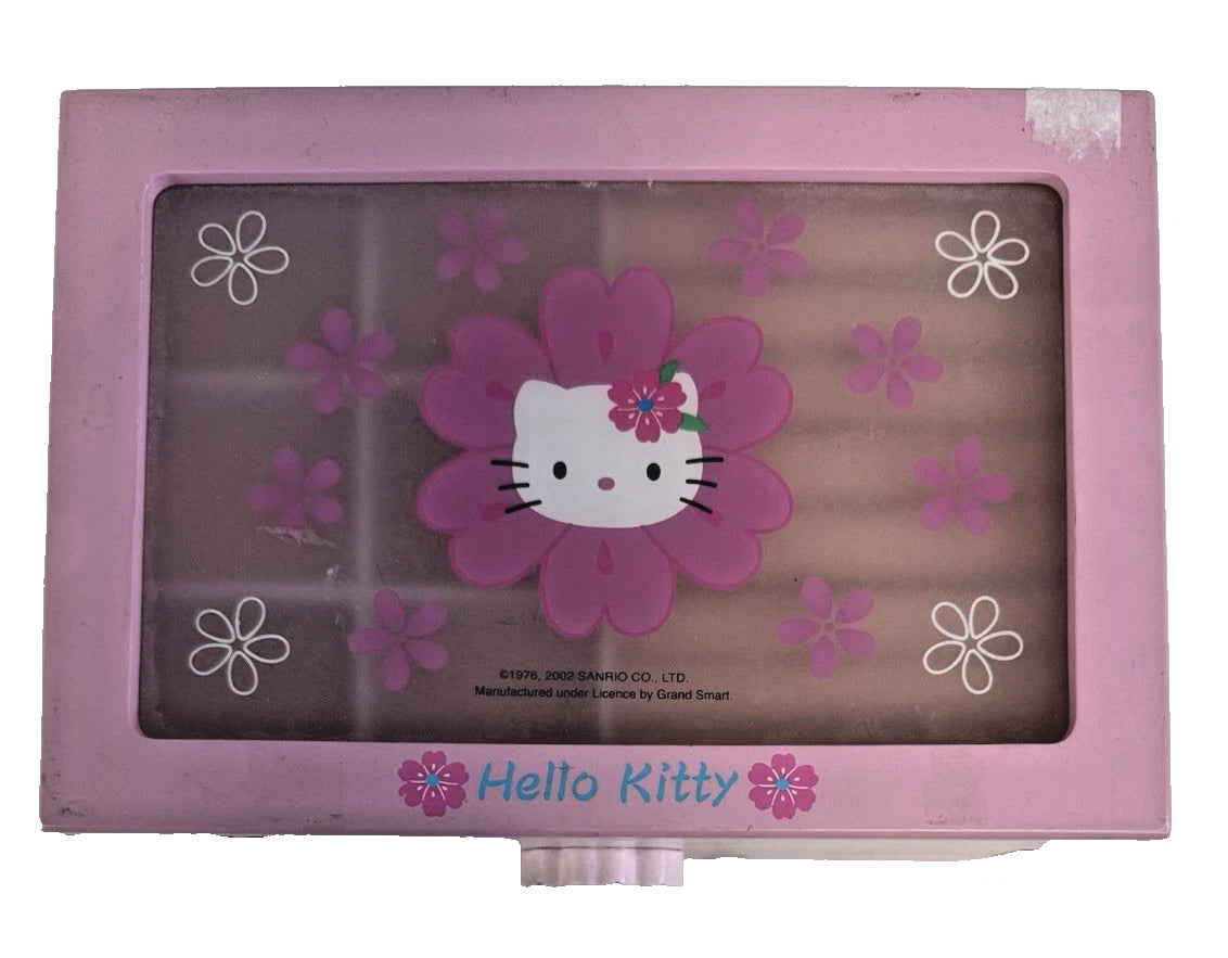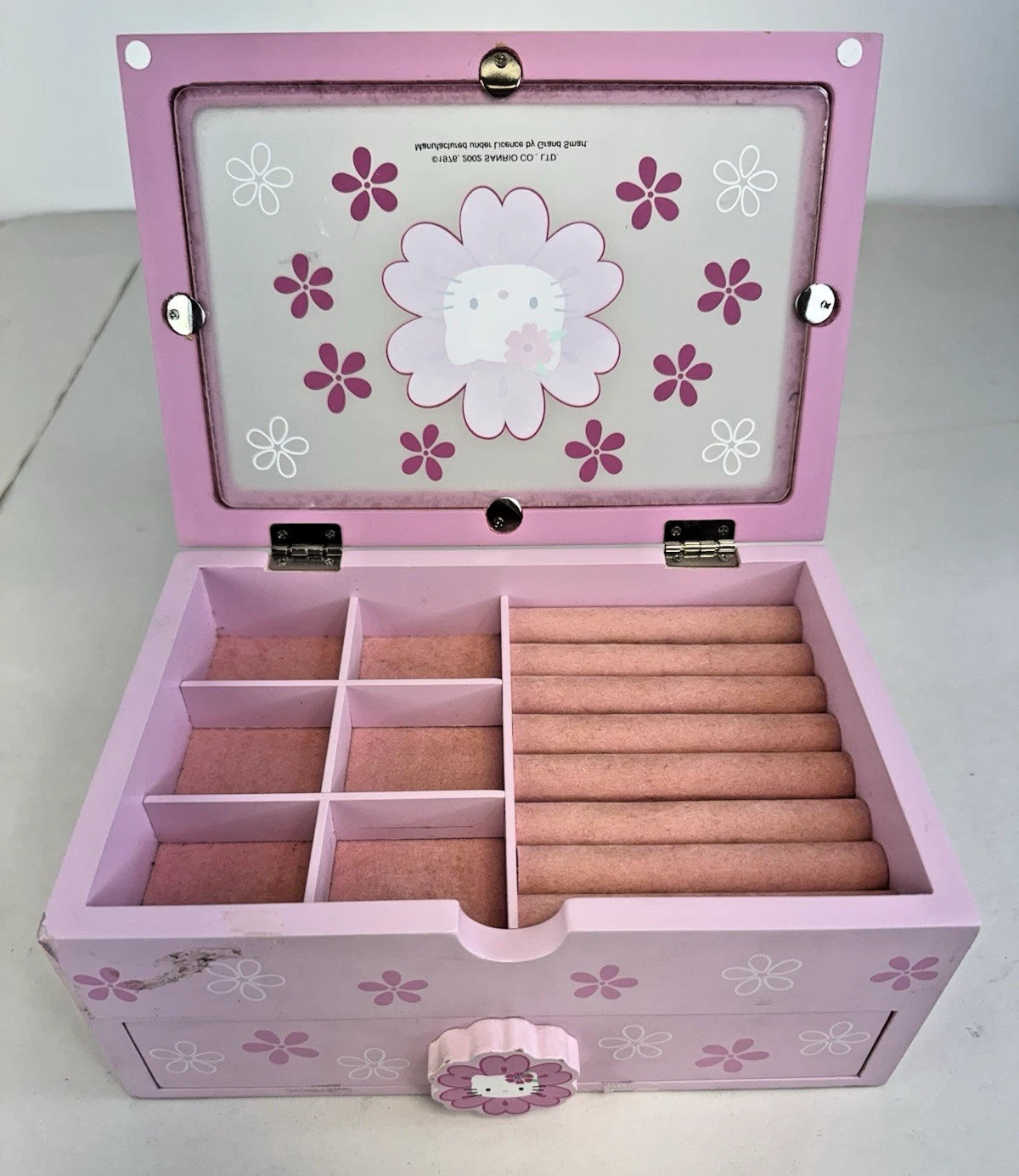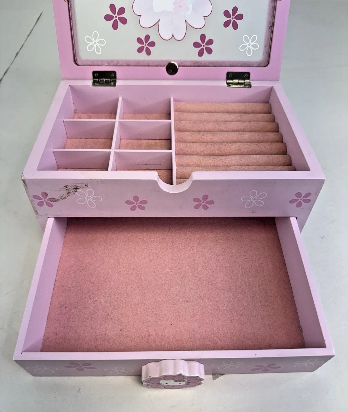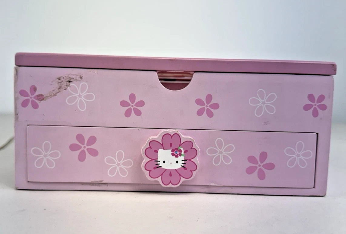 Hello Kitty Sanrio Jewellery Box Pale Pink 2002 Wood Drawer Floral