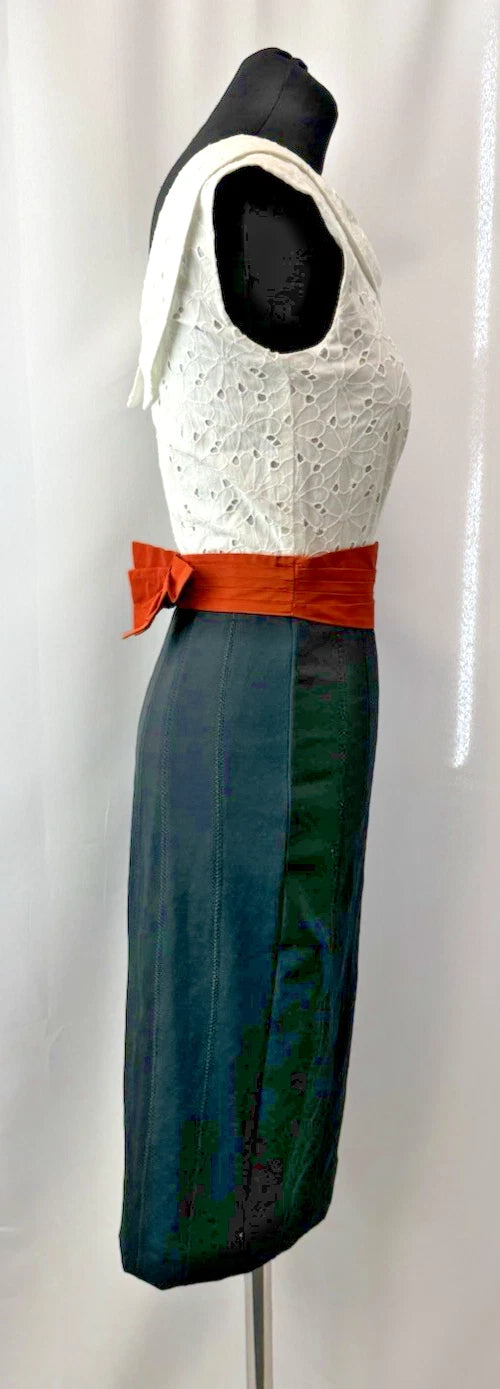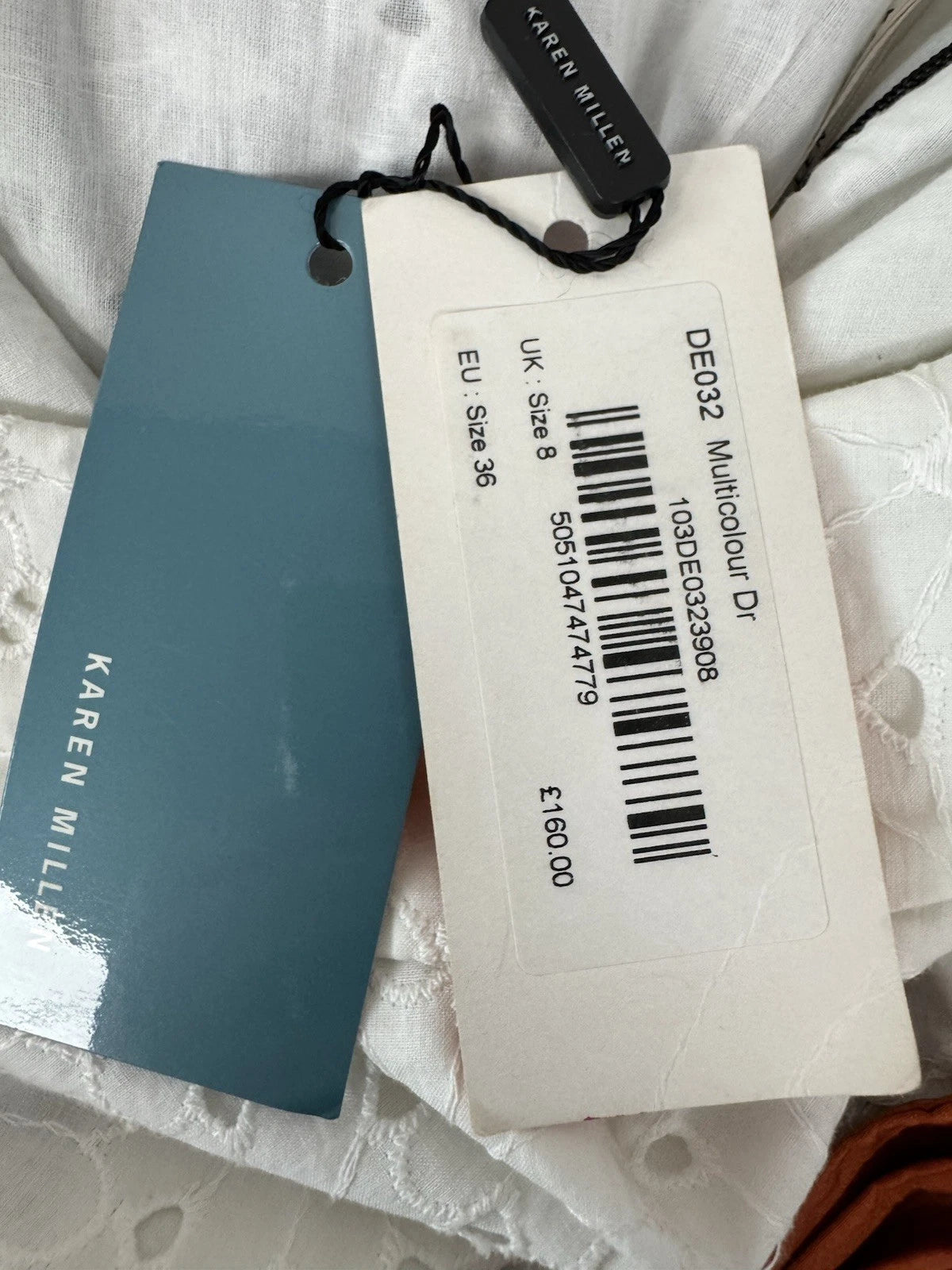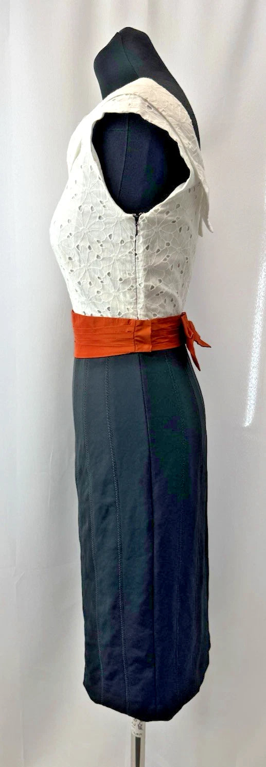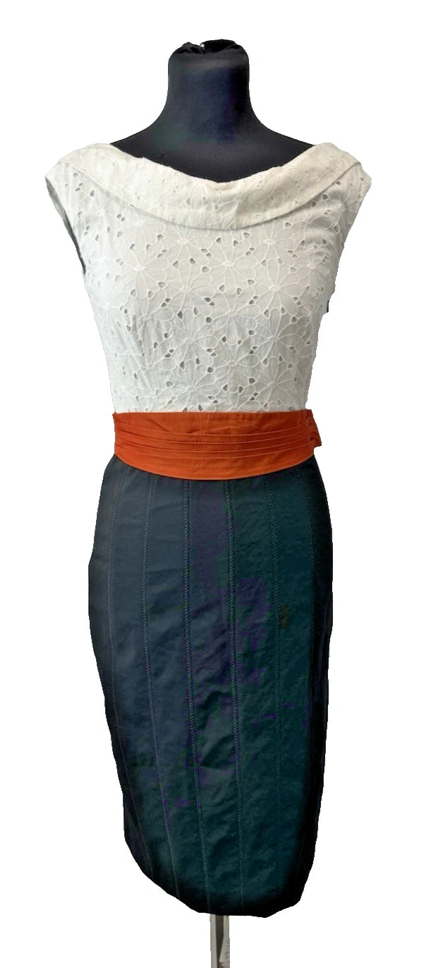 Karen Millen Women’s Cowl Neck Eyelet Embroidery Pencil Dress Multicoloured Size 8 - NEW