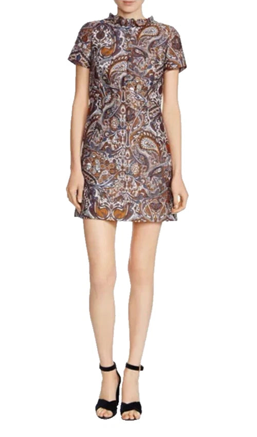 Maje Women's Jacquard Paisley Print Short Sleeve Mini Dress Multicoloured Size S