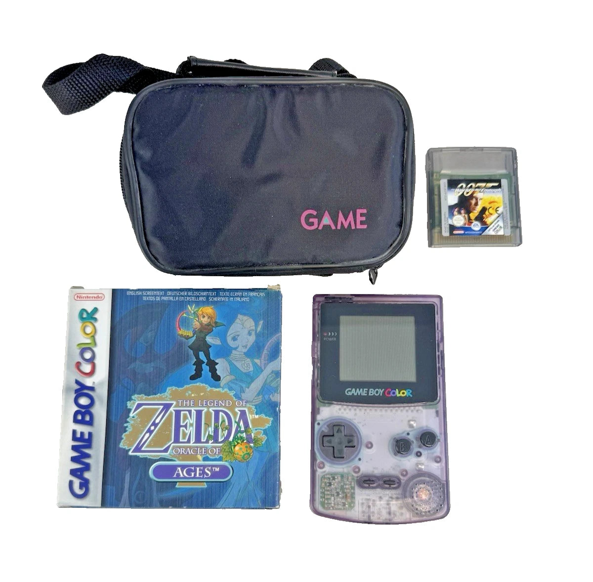 Nintendo Game Boy Color Clear Console w/ Zelda Oracle & 007 Games - WORKING