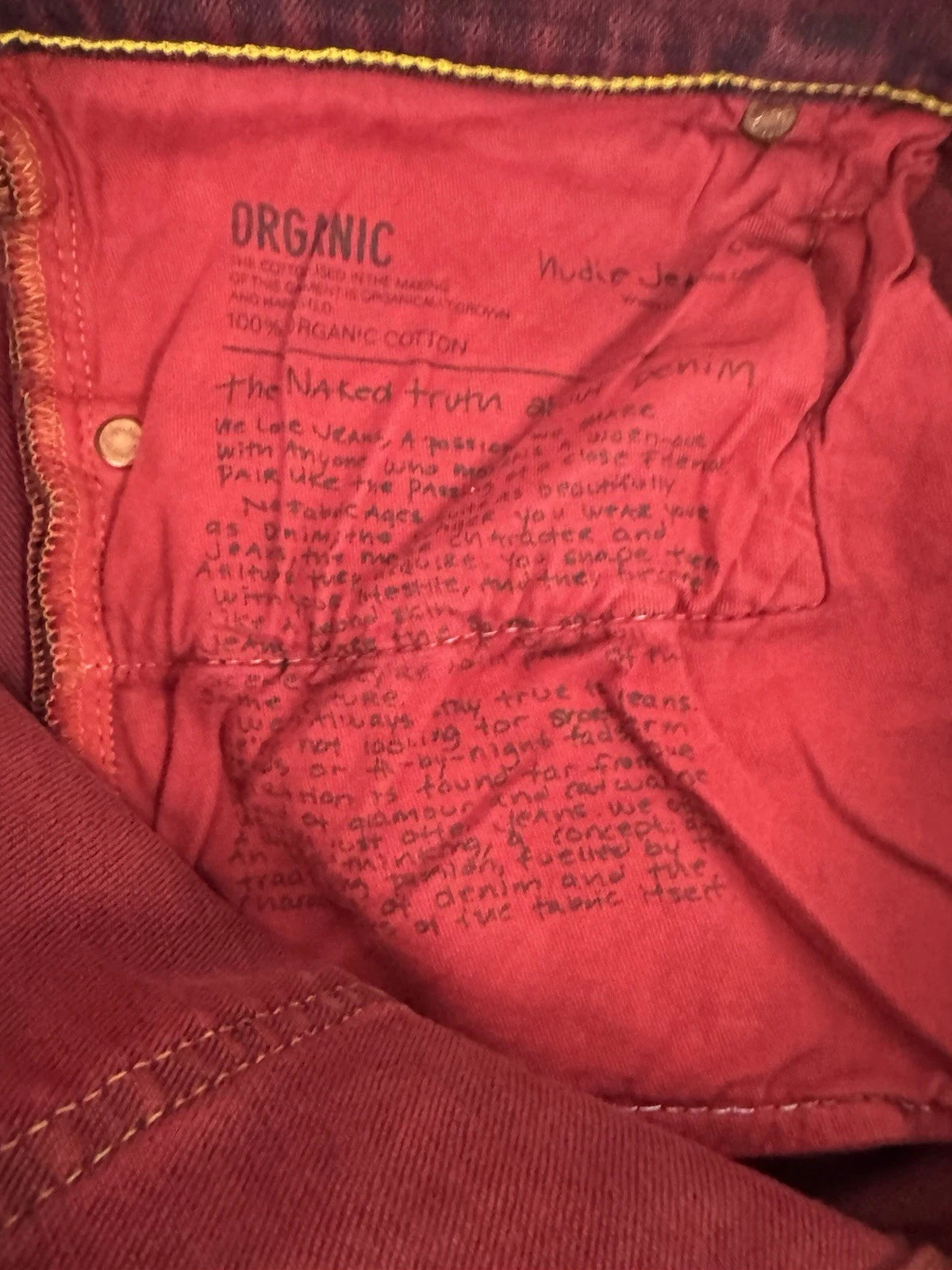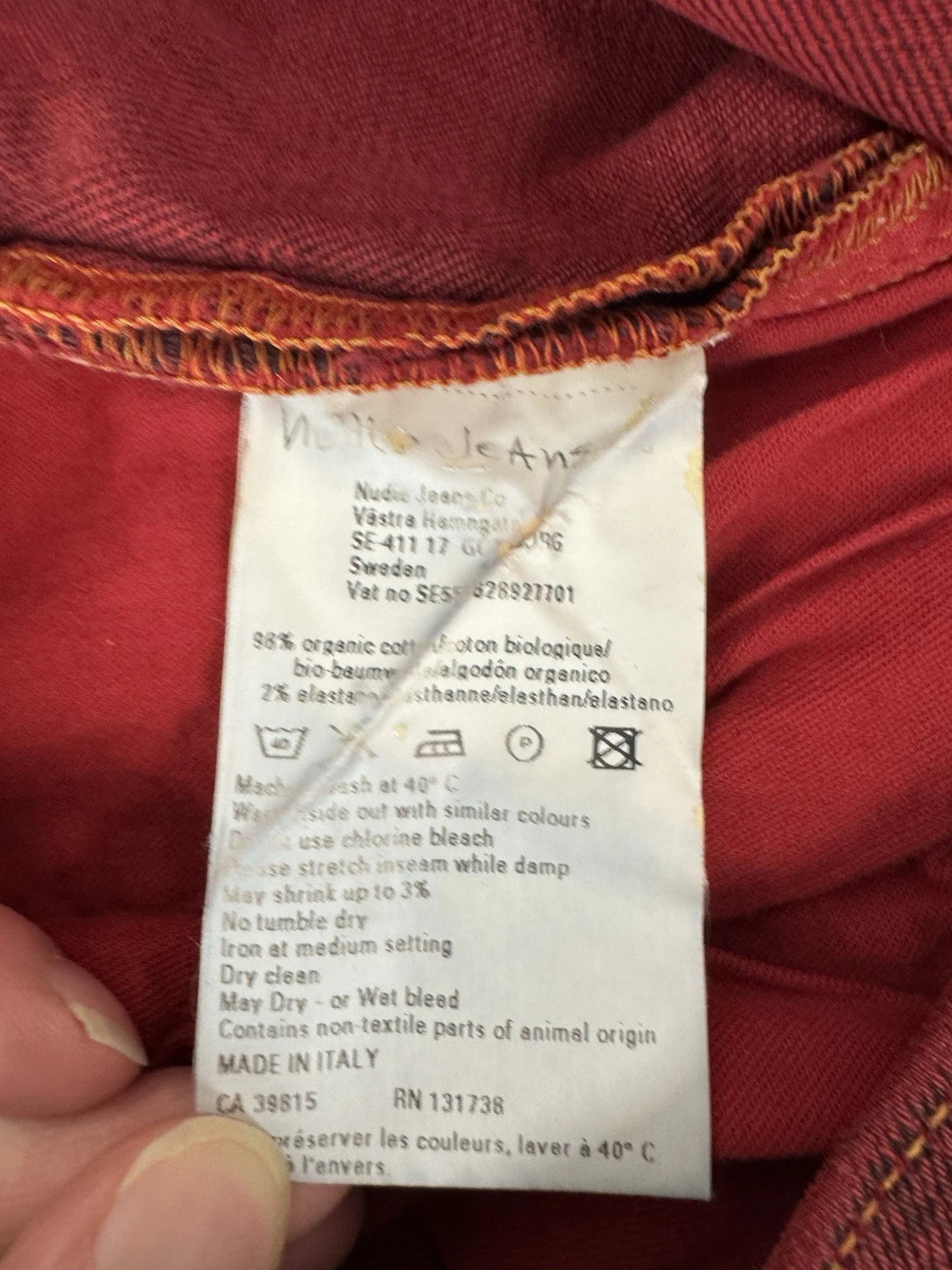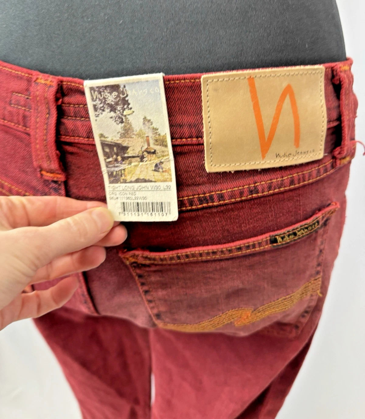 Nudie Jeans Co Women’s Slim Fit Corduroy Tight Long John Jeans Red Size 30” - NEW