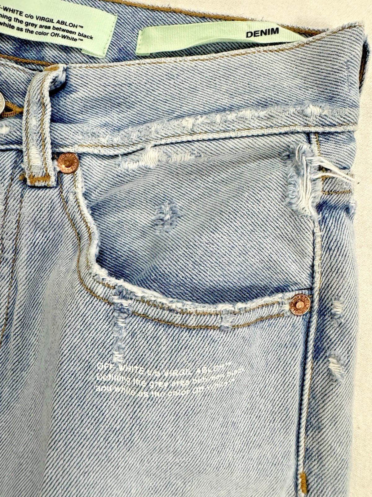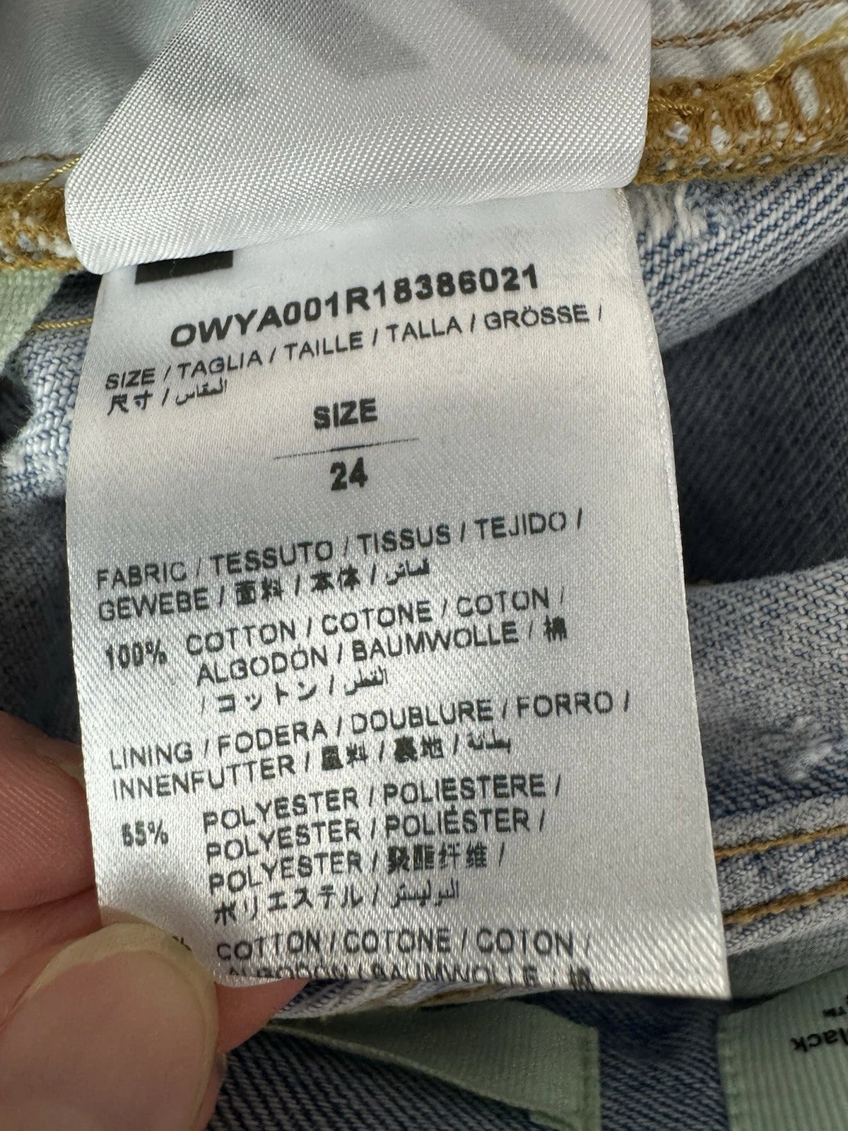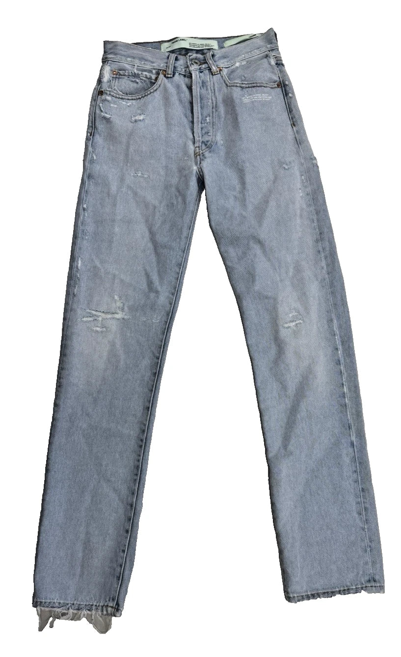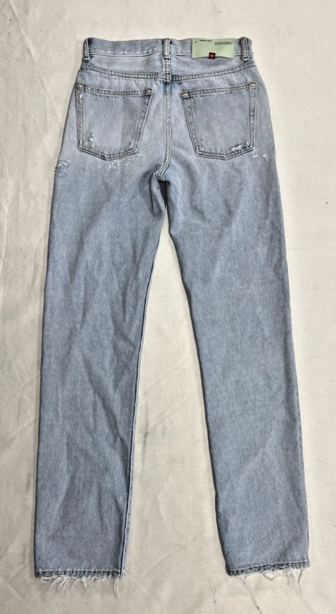 Off-White Women’s Distressed Straight Leg Button Up Jeans Light Blue Size 24