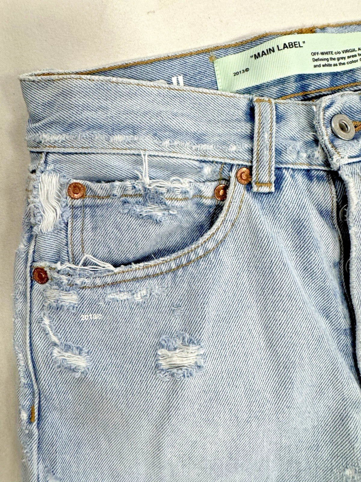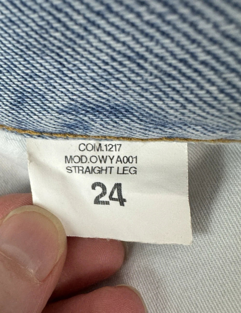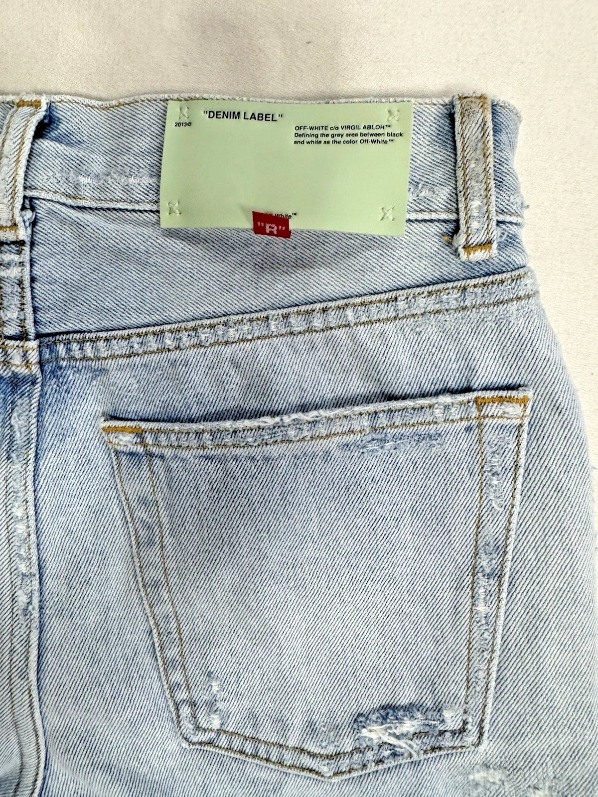 Off-White Women’s Distressed Straight Leg Button Up Jeans Light Blue Size 24
