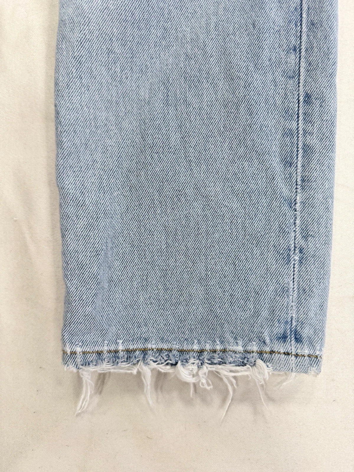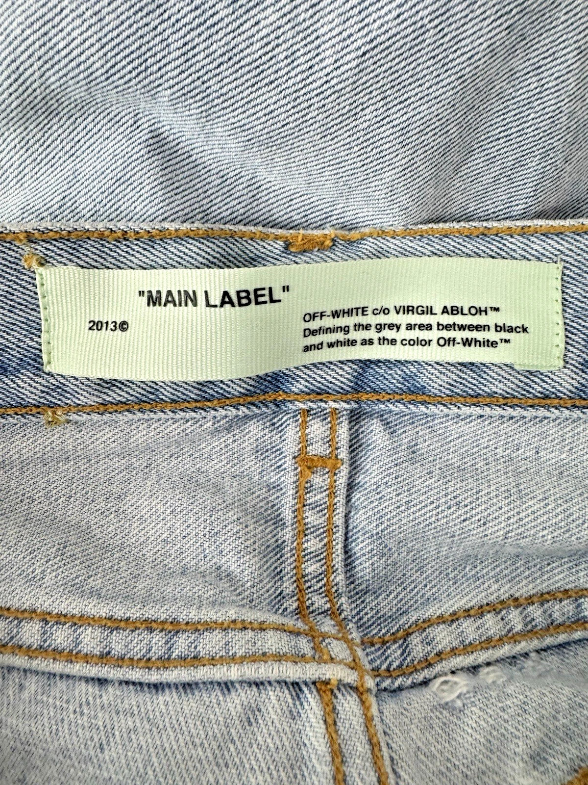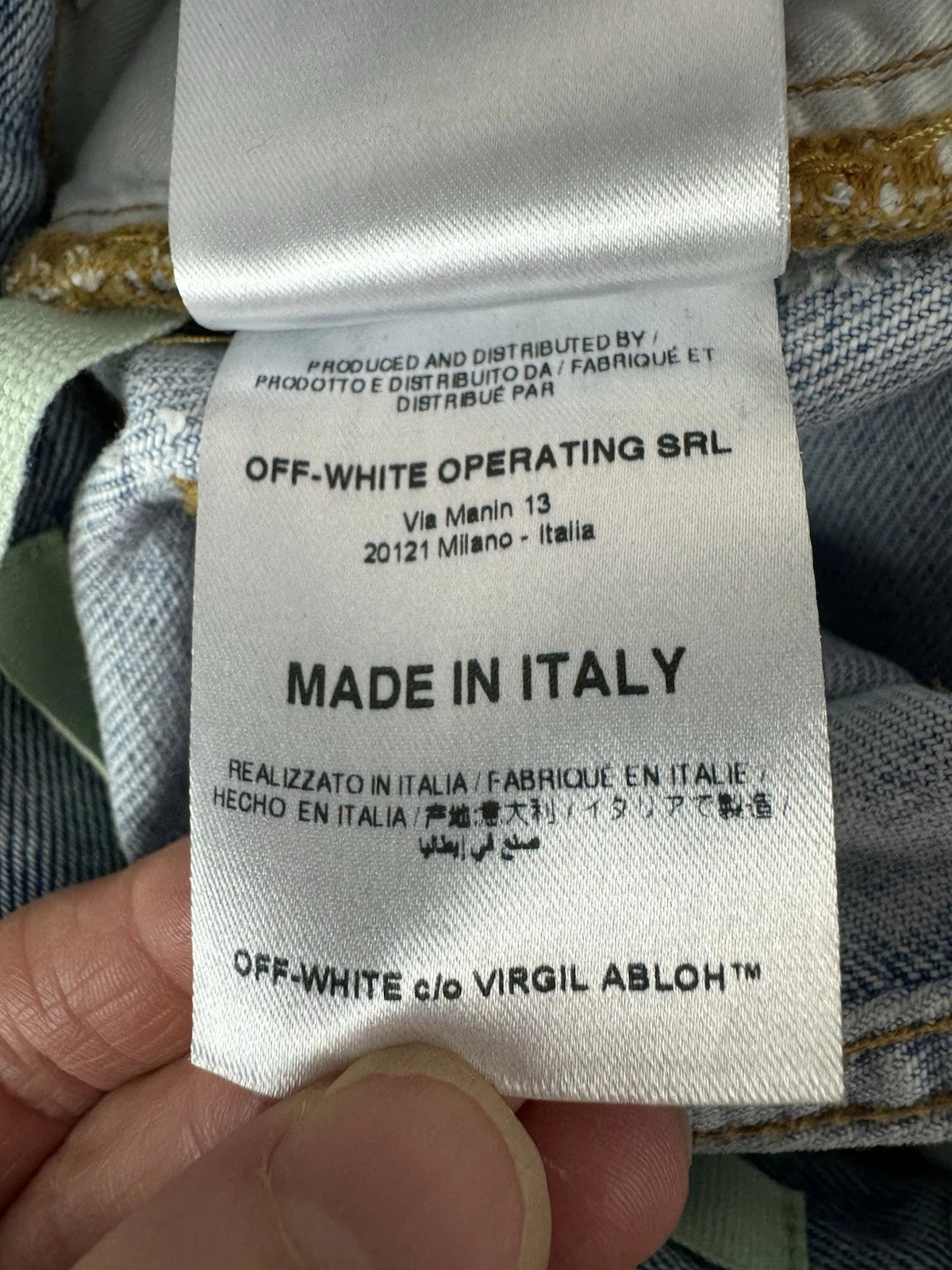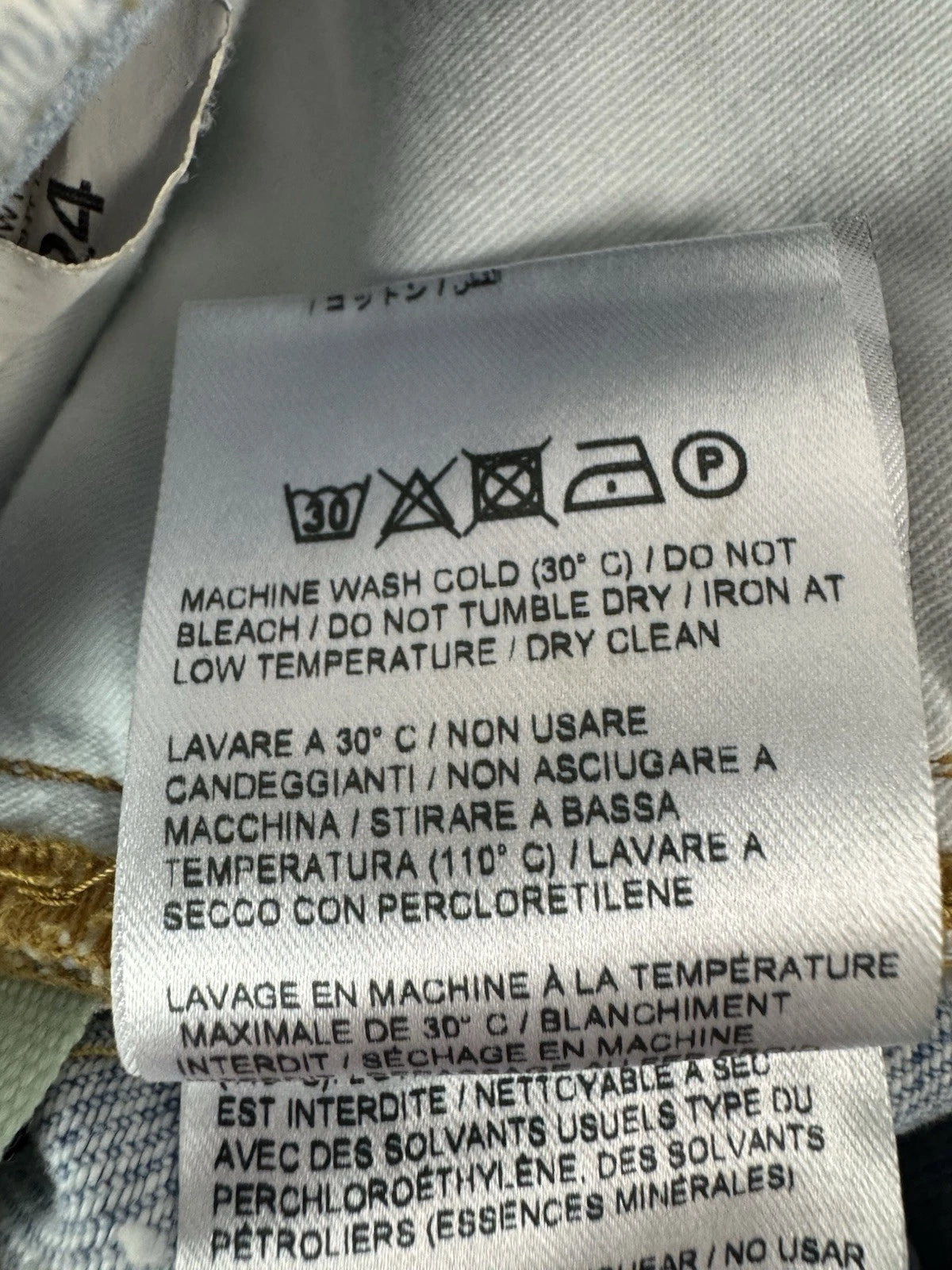 Off-White Women’s Distressed Straight Leg Button Up Jeans Light Blue Size 24