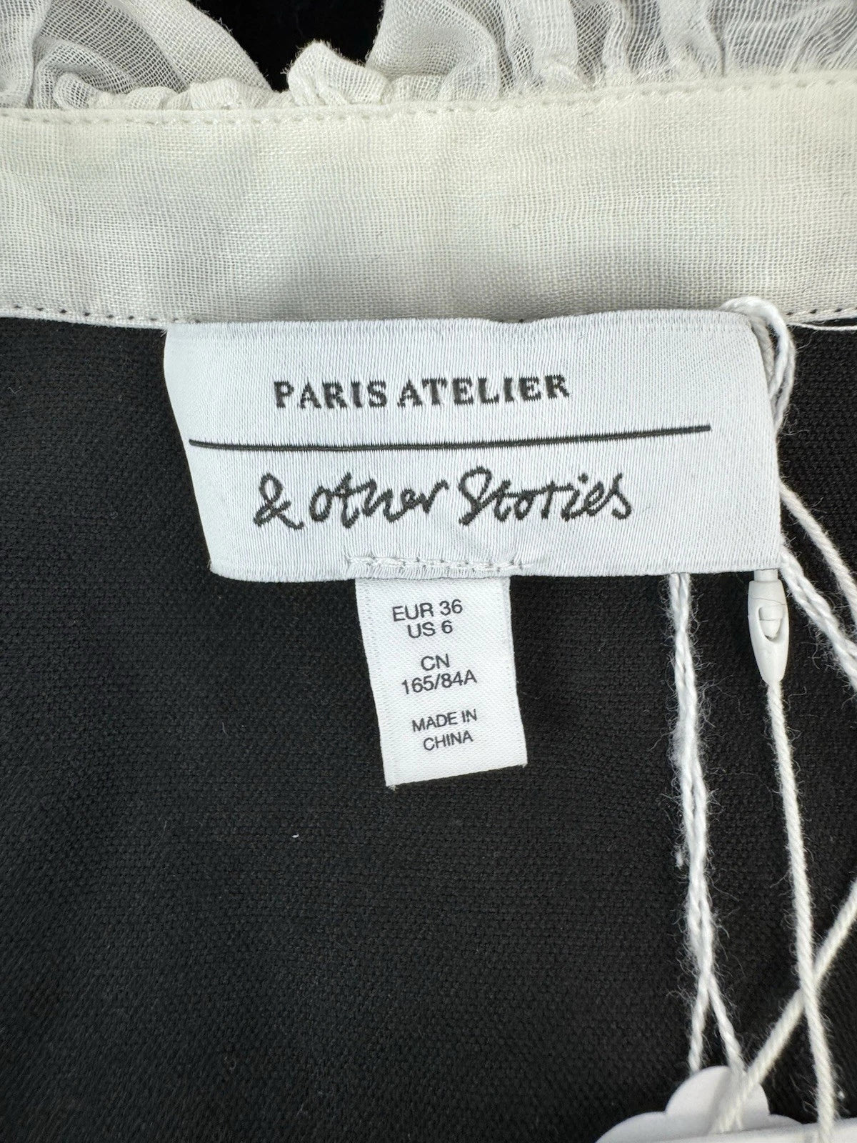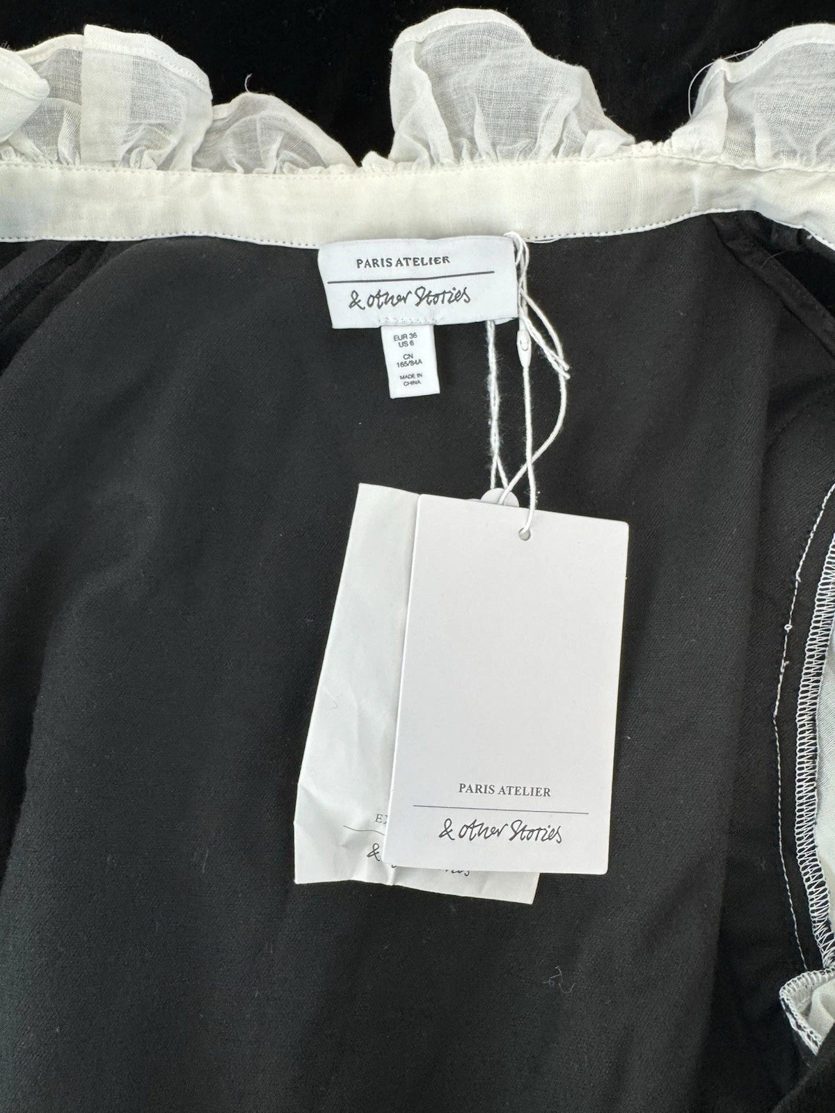 & Other Stories Women’s Black Velvet Mini Dress & White Ruffle High Neck Blouse Size 8-NEW