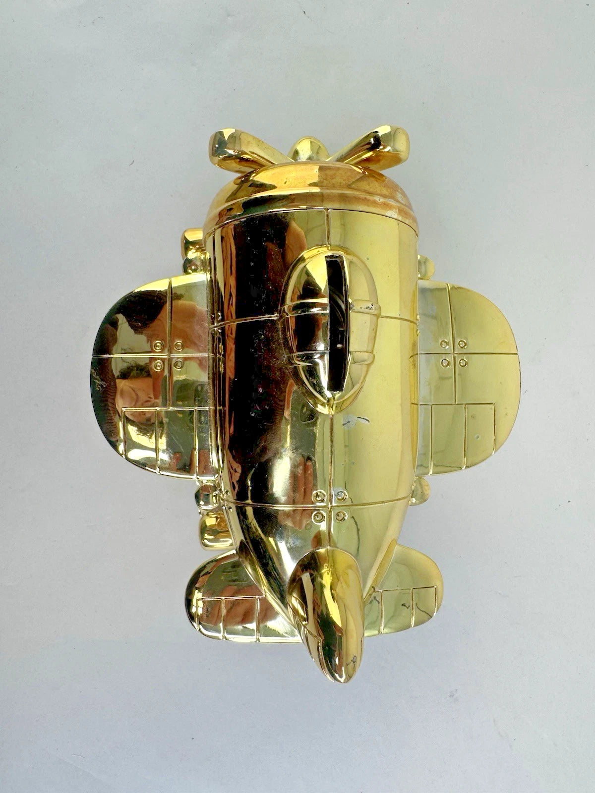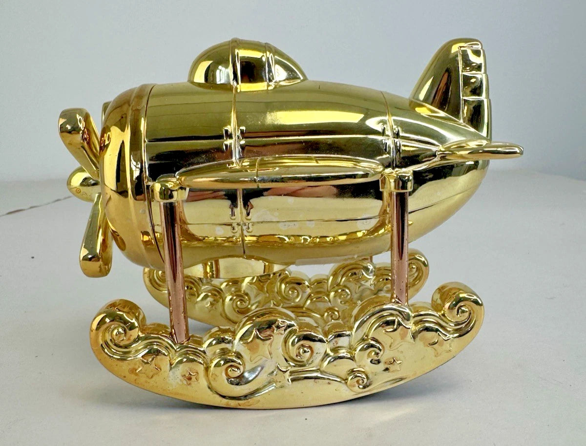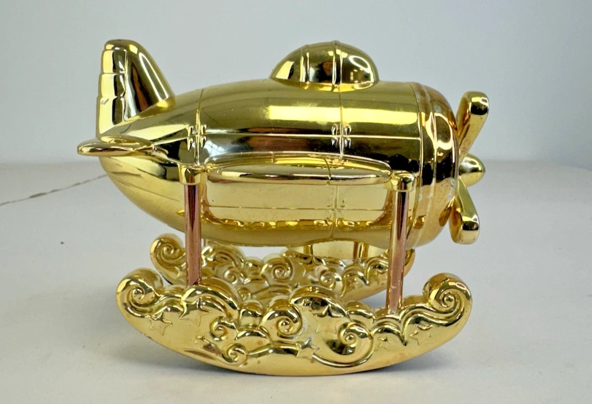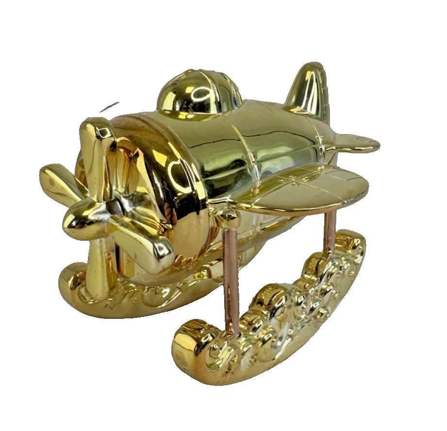 Reed & Barton Zoom Zoom Airplane Coin Bank Gold-Tone Rocking Plane